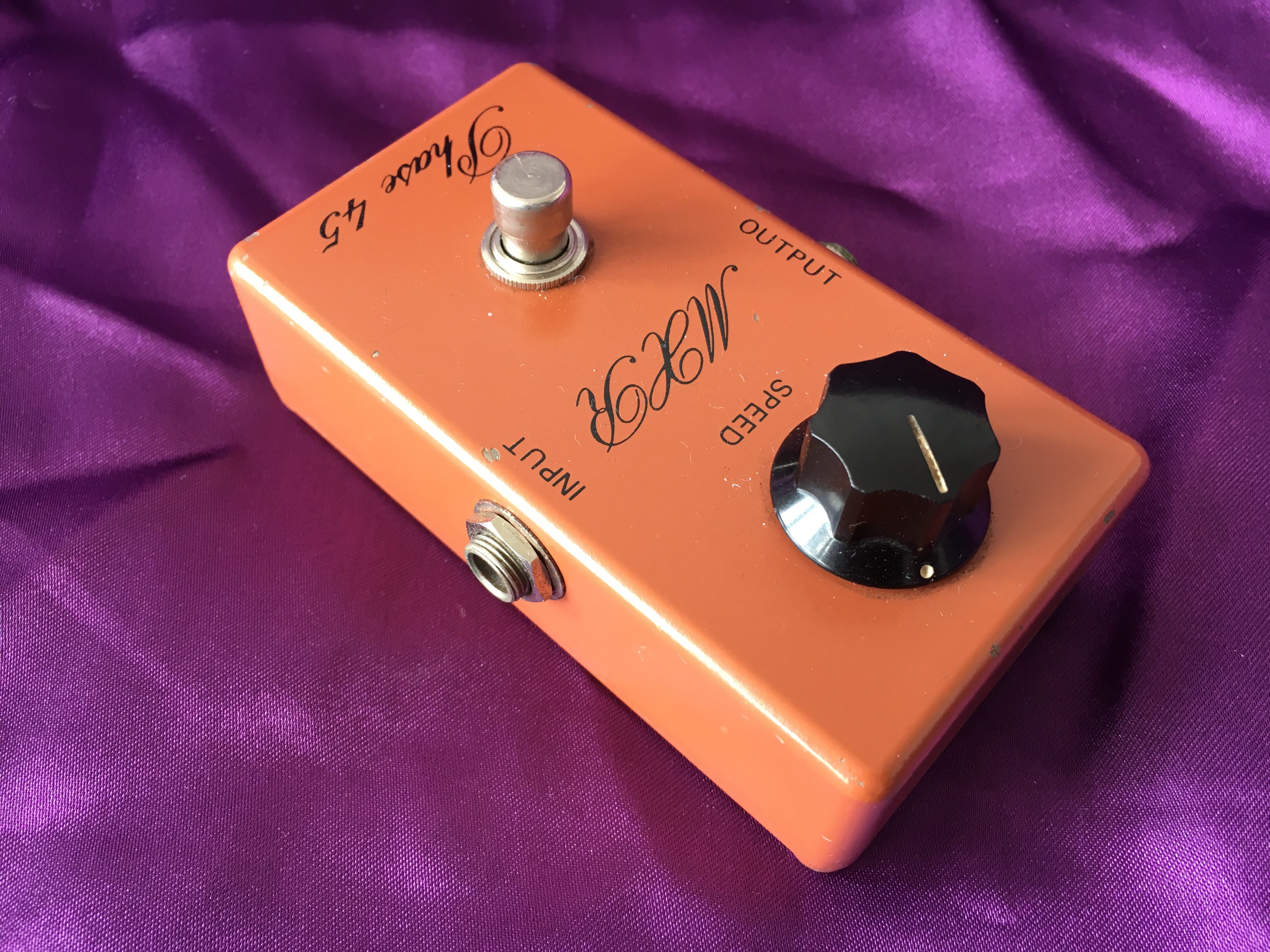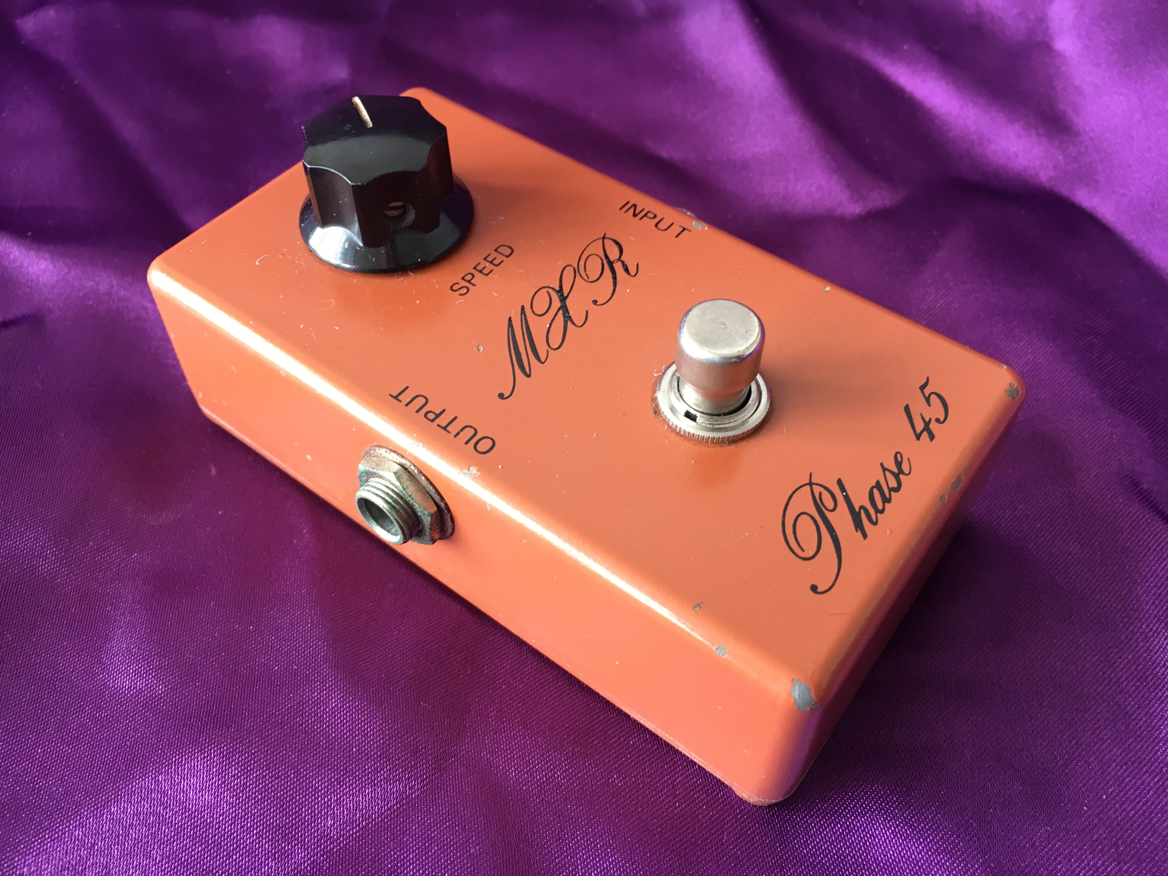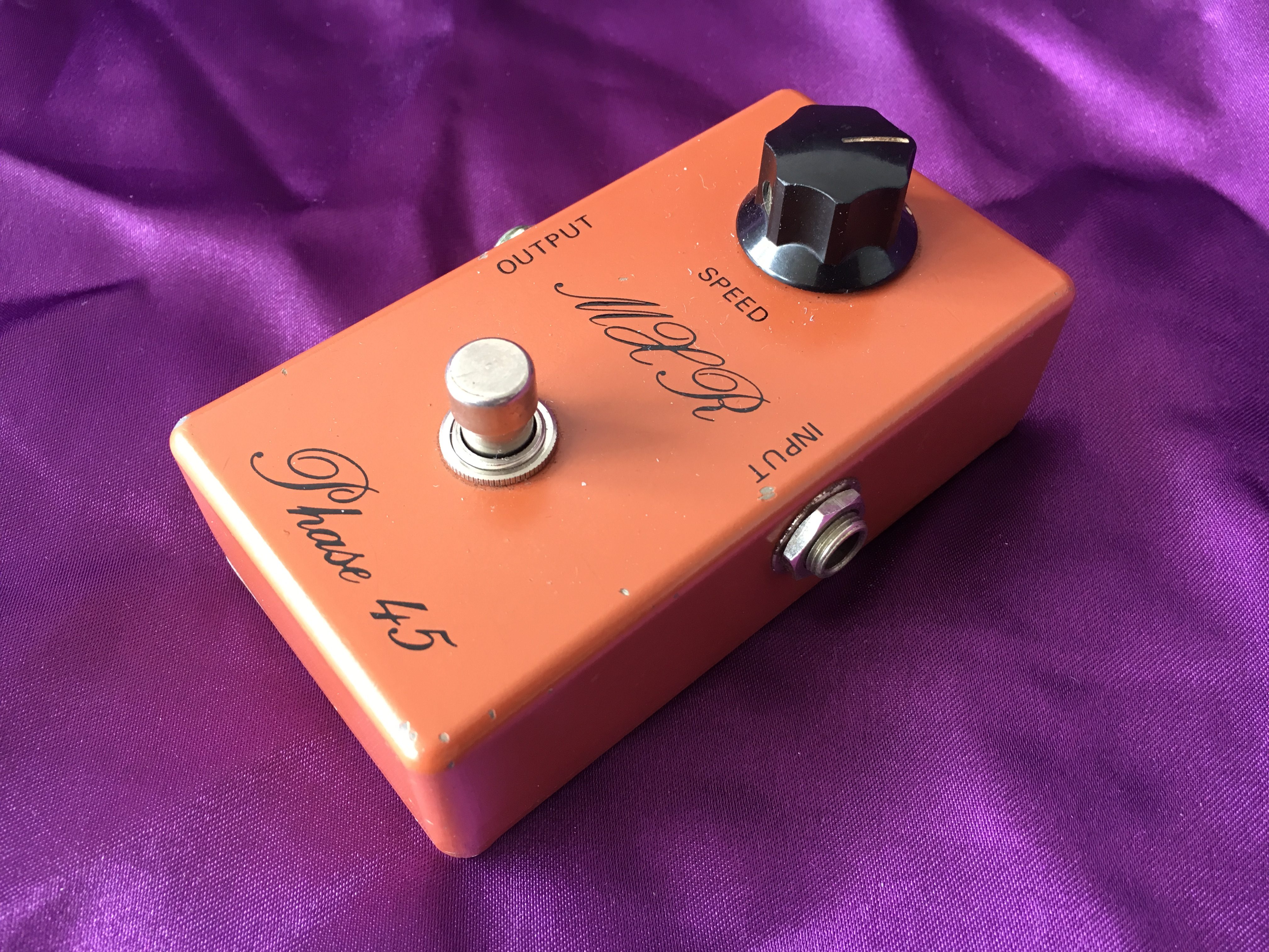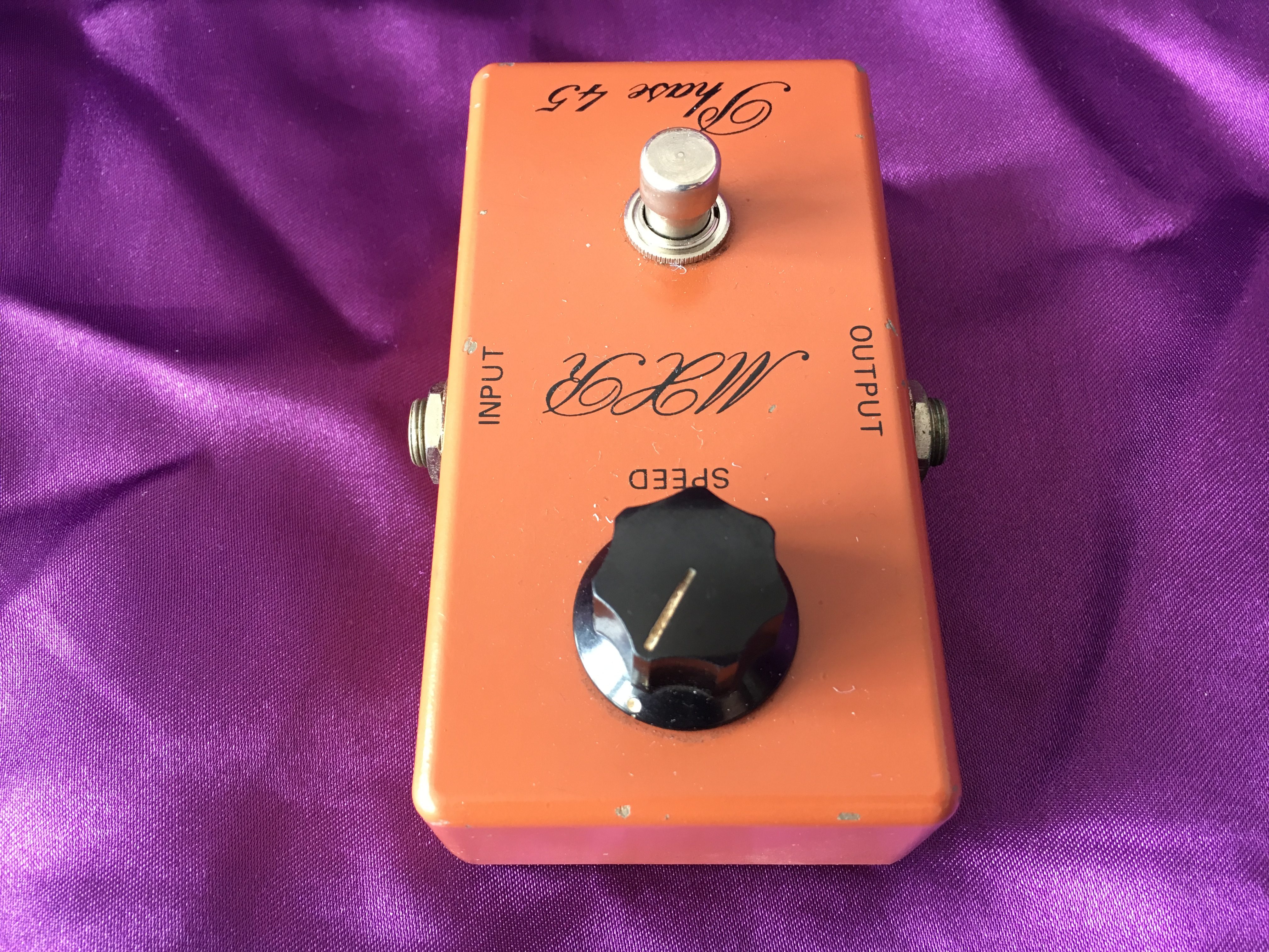 American effect manufacturer, MXR Innovations was formed in 1972, based in Rochester, New York by high‑school friends Terry Sherwood and Keith Barr. MXR’s first compact pedal was the famous and iconic Phase 90. During the 1970s, the Phase 90 was joined by two siblings, the Phase 45 and Phase 100. The Phase 45 was a 2‑stage phaser producing a mild, subtle vibe‑like sound whereas the Phase 90 was a 4‑stage phaser capable of generating a more intense, pronounced phase sweep. The larger Phase 100 comprised 6‑stage phase shifting and provided users with 4 selectable waveforms. The phaser family is recognisable by the distinctive burnt orange enclosures with either early ‘script’ logos or later ‘block’ logo from 1977. From 1981, usability was improved further when MXR added an LED status indicator and a power supply input jack. The Phase 90 is by far the most popular, recognisable and desirable of MXR’s phasers, which has somewhat overshadowing its brethren. After just 12 years, the original MXR company ceased production in 1984. The brand was bought and resurrected by Jim Dunlop in 1987 and the ever‑popular MXR effects remain in production today. MXRs’ phaser reputation was boosted further by Eddie Van Halen who used the Phase 90 on the band’s early albums. In recognition, MXR now offer the EVH90 signature pedal alongside standard and custom shop reissues of the pedal. While the Phase 45 may be the simplest and cheapest of MXR’s phasers, it has its own distinct voice, much admired by its many advocates. On the vintage collectable market, the early ‘script’ Phase 90 is widely recognised as THE one to have, although other members of the MXR clan are definitely worth looking out for, including the relatively cool and rare Phase 45.