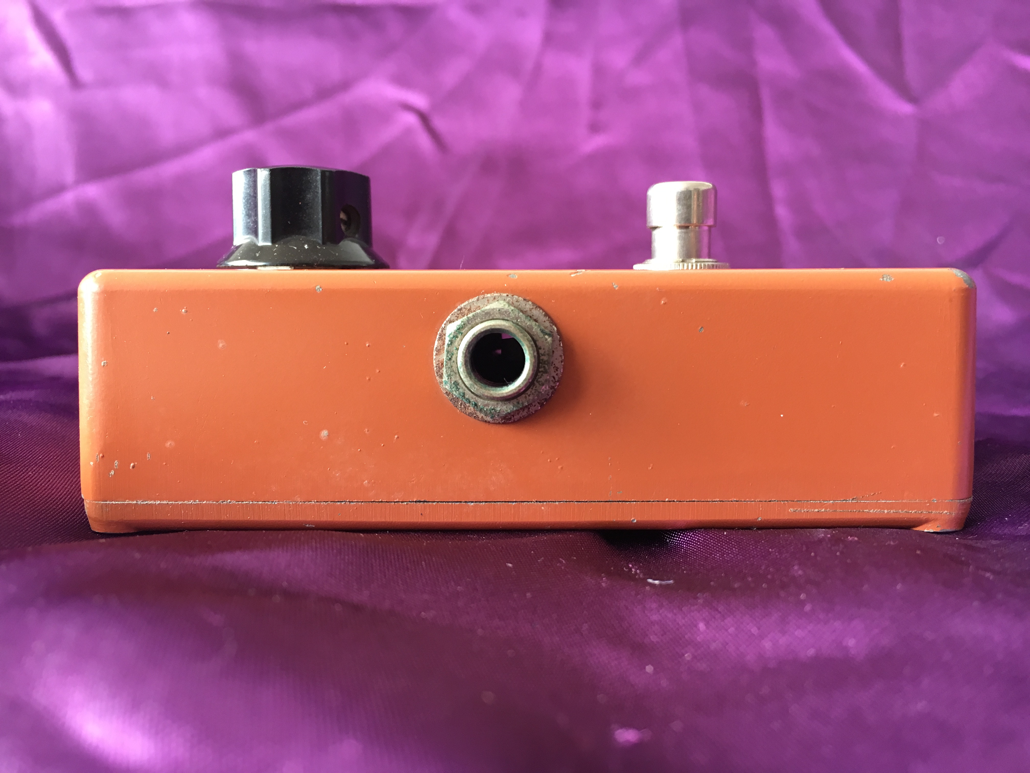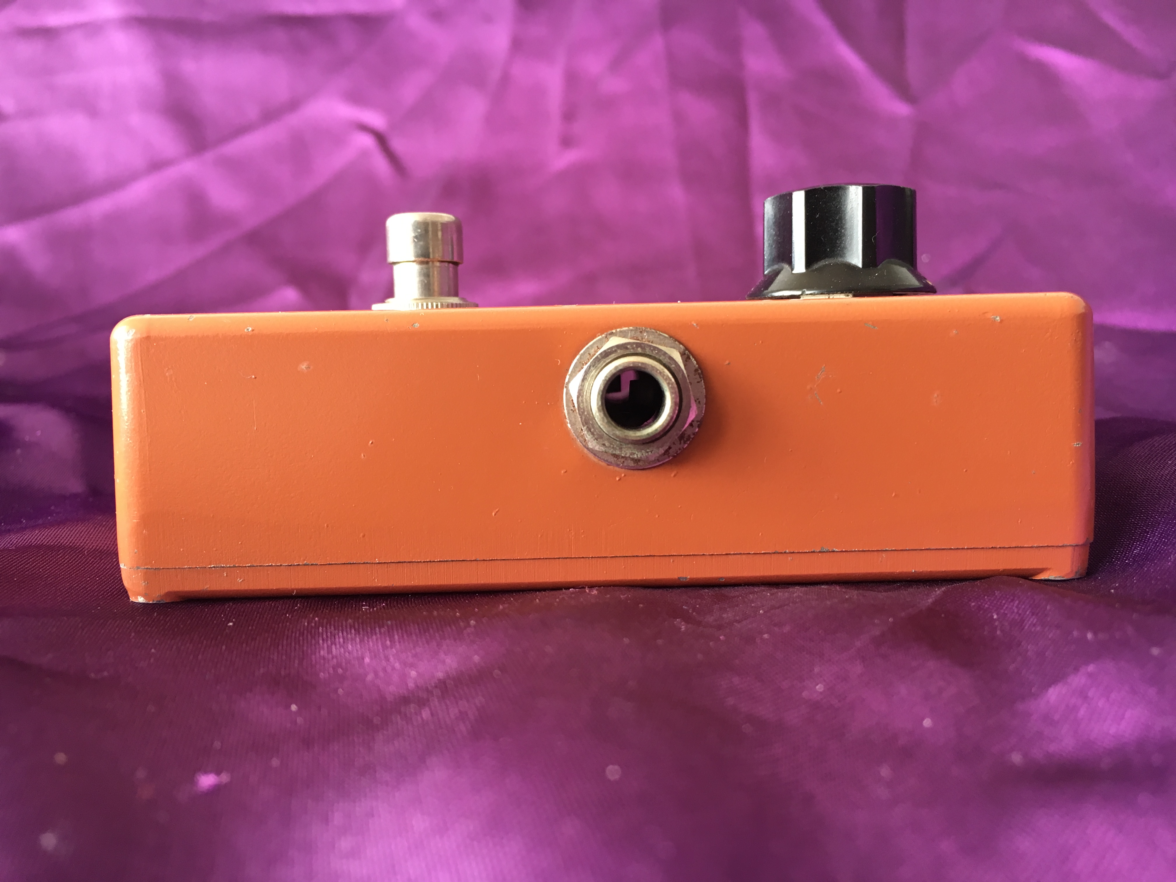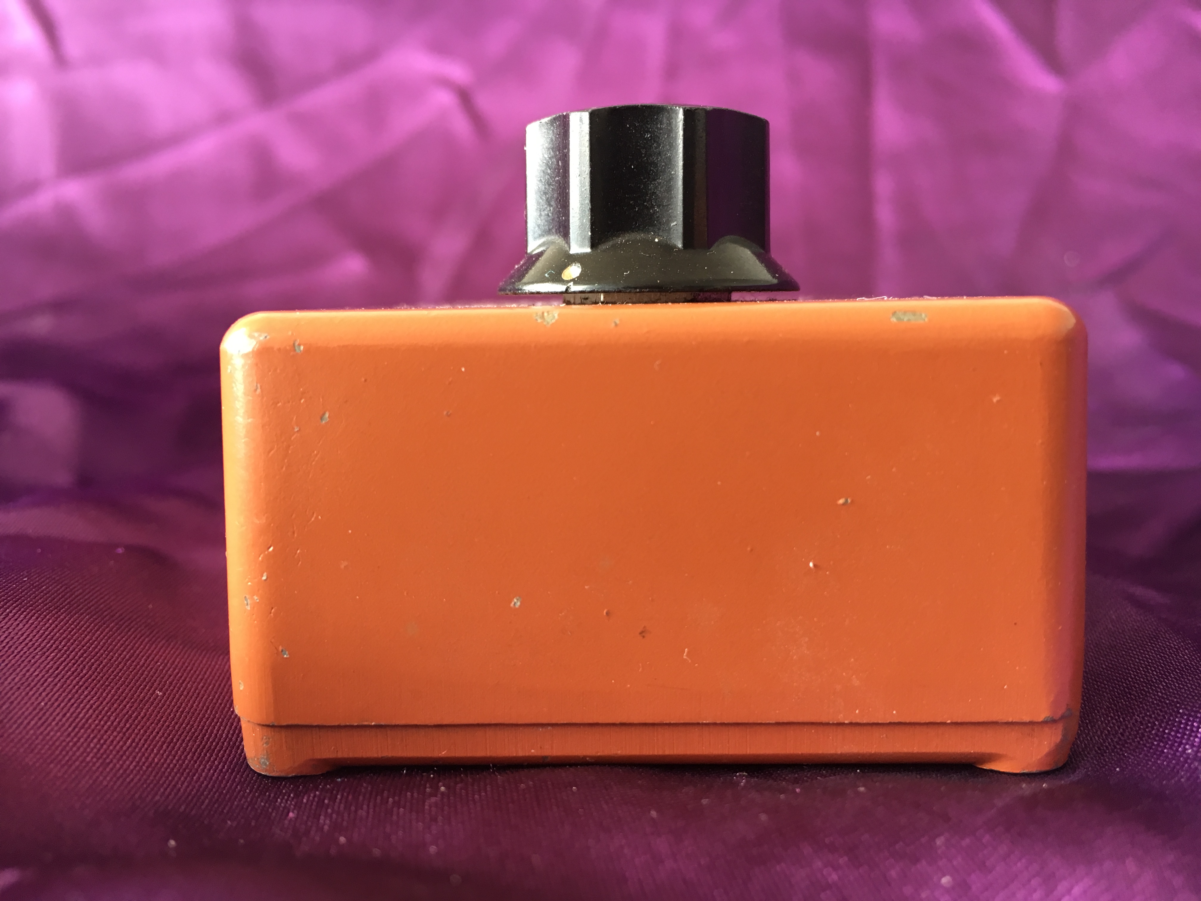OK, so this solid little stomp box isn’t a Phase 90 but it is a fabulous all‑original ‘script’ logo MXR Phase 45 (MX‑105) – the pot actually dates to late 1975, so most likely it was built in 1976. The distinctive orange colour is apparently ‘Ditzler PPG M5148 Bold Orange’, as used by truck maker Ford in 1974. The dull tint is very characteristic of the early MXR pedals – later ones were presented in a much brighter hue. Compare this Phase 45 with CRAVE Guitars’ 1977 MXR Phase 90. Superficially, the only difference between the ‘45’ and the ‘90’ is the screen‑printed model number on the front. Internally and sonically, however, there are definitely some audible differences. The Phase 45 is more restrained while retaining the lovely subtle, sweet swirling analogue sounds for which the models are rightly renowned. The relatively shallow analogue phase sweep enhances the guitar’s tone and has superb chiming string definition without overpowering the original signal. The only control is the ‘speed’ knob to alter the rate of phase sweep and the pot works perfectly, nicely progressive with no sign of scratchiness. The Phase 45’s simplicity is also its strength and it is almost impossible to dial in a bad sound from it, even at extreme settings. It is easy to see why these effects have been seen on many discerning players’ pedalboards over the years. On the other hand, if you like tweaking and knob fiddling, this may not be the pedal for you. This particular example has been very well cared for and is in amazing unmolested original condition for its age, complete with all its original baseplate, screws and battery snap. It has only a few very minor surface marks to indicate that it has been around for more than four decades. Unusually, this one is also accompanied by its original box (albeit with the lid taped up) and documentation. To sum it up in one word… outstanding.