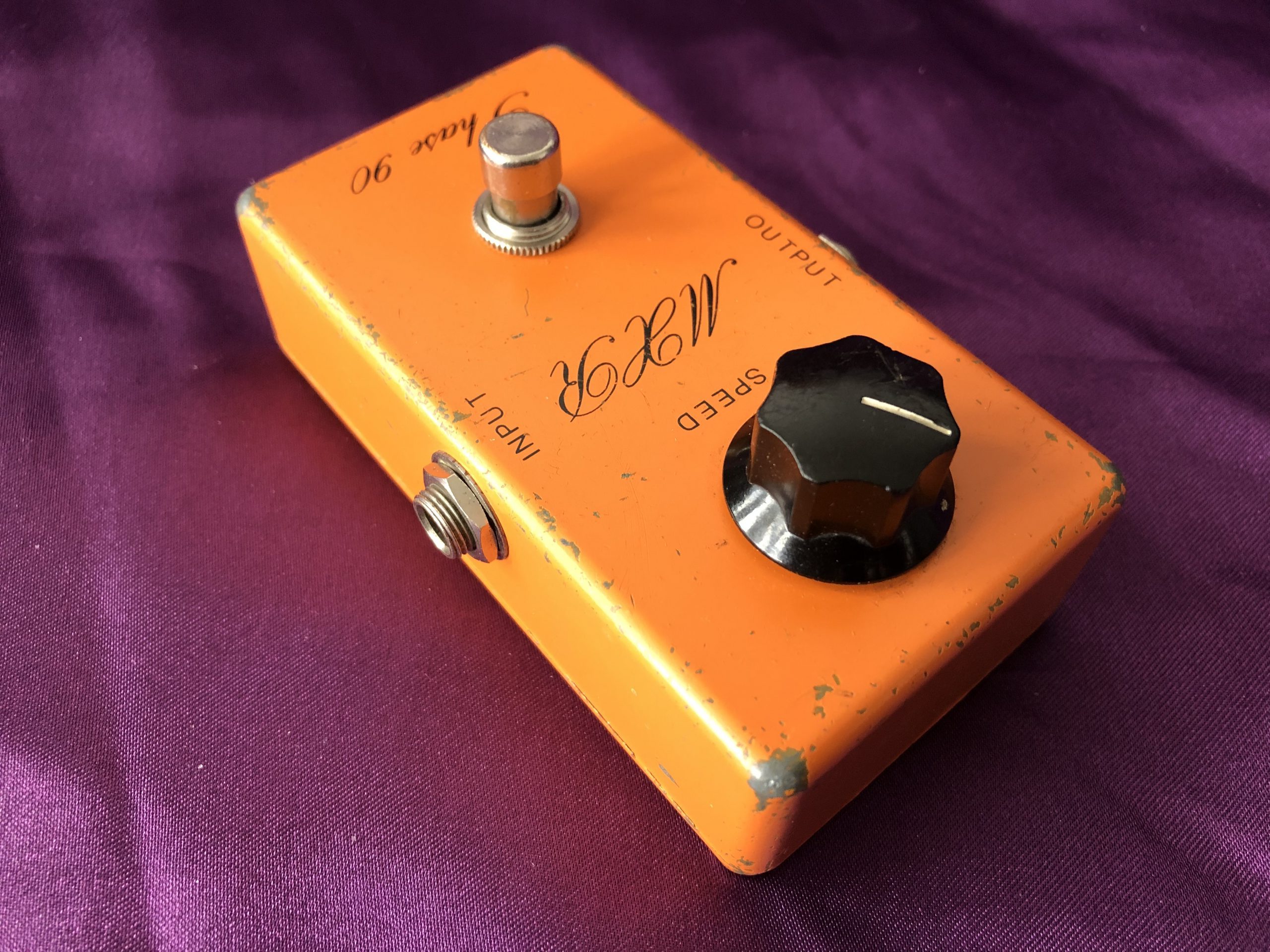 Witness a true legend. If there is one product for which the American company MXR Innovations is famous, it is this iconic but otherwise unassuming little orange block of an effect pedal, the fabled ‘script’ logo Phase 90. The 100% analogue 4‑stage Phase 90, designed by co‑founder Mike Barr in 1974, was the first pedal from the fledgling company. It was a remarkably successful debut for MXR. The early ‘script’ logo models have achieved hallowed status, principally for the exquisitely lush phase sounds. The Phase 90 is often used as a reference point for phaser pedals. Not long after launch, the Phase 90 had been joined by the subtler 2‑stage Phase 45 and the much more versatile 6‑stage Phase 100. The Phase 90’s reputation is all the more surprising given that the only knob governs the speed of the effect with no sign of a depth control. Perhaps the rule that ‘less is more’ applies to the Phase 90. Around 1976/1977, MXR introduced the 2nd generation pedals updating the design. The most visible difference was the change in aesthetics from the spidery script logo to a bolder block one. Importantly, it retained its electronic circuitry, so it sounded just like its predecessor. In the early 1980s, MXR changed the modulation circuit, so took the opportunity to add a factory power supply input and an LED to alert the user when it’s switched on. MXR ceased production in 1984 until Jim Dunlop revived it in 1987. Despite much effort, more recent reissues from the new owner are just not the same, even the Custom Shop models. Capturing the original magic means that the old pre‑Dunlop MXR pedals are much sought after on the vintage market with disproportionately high prices to match, particularly for the script logo versions of the iconic Phase 90.