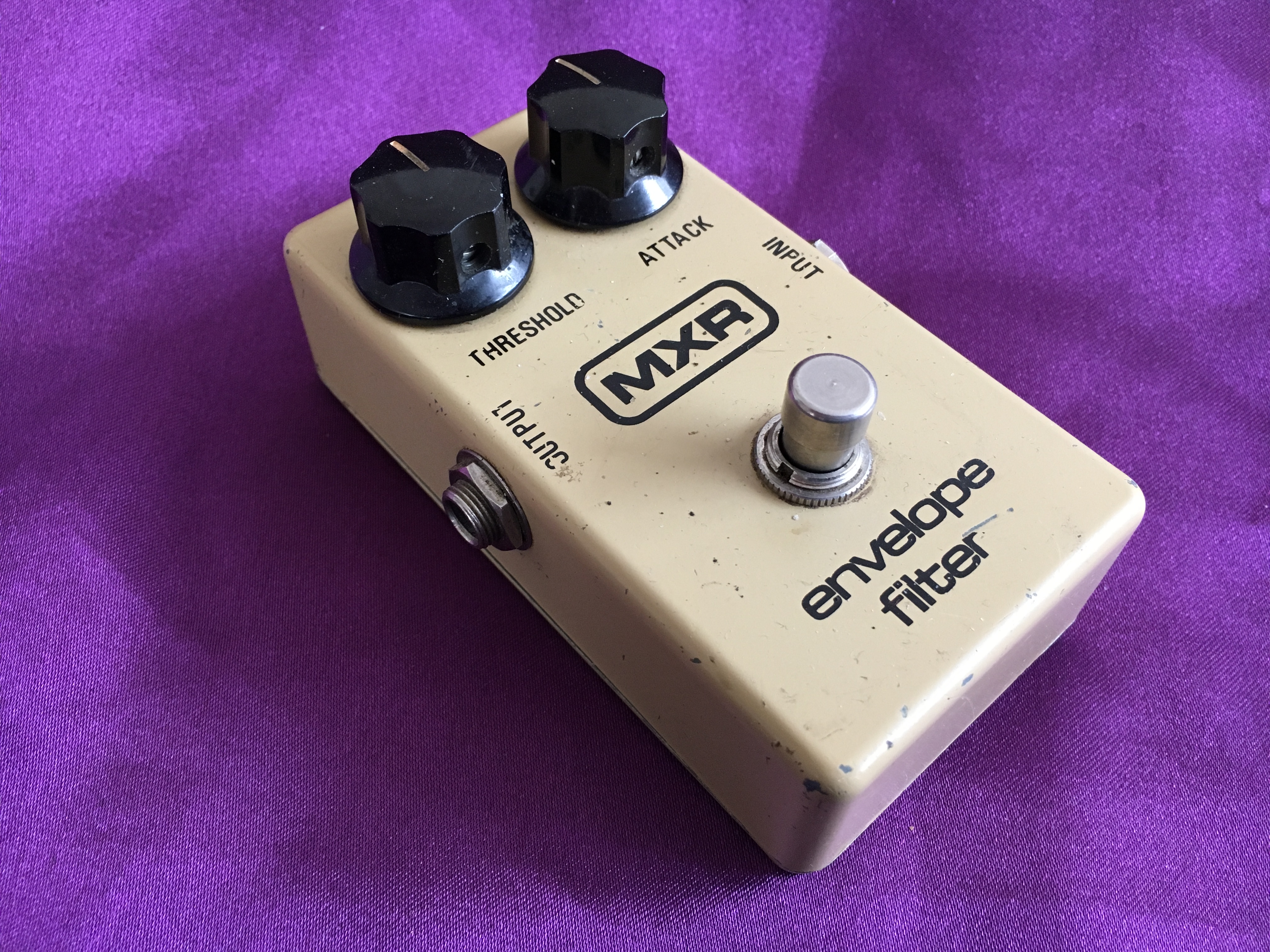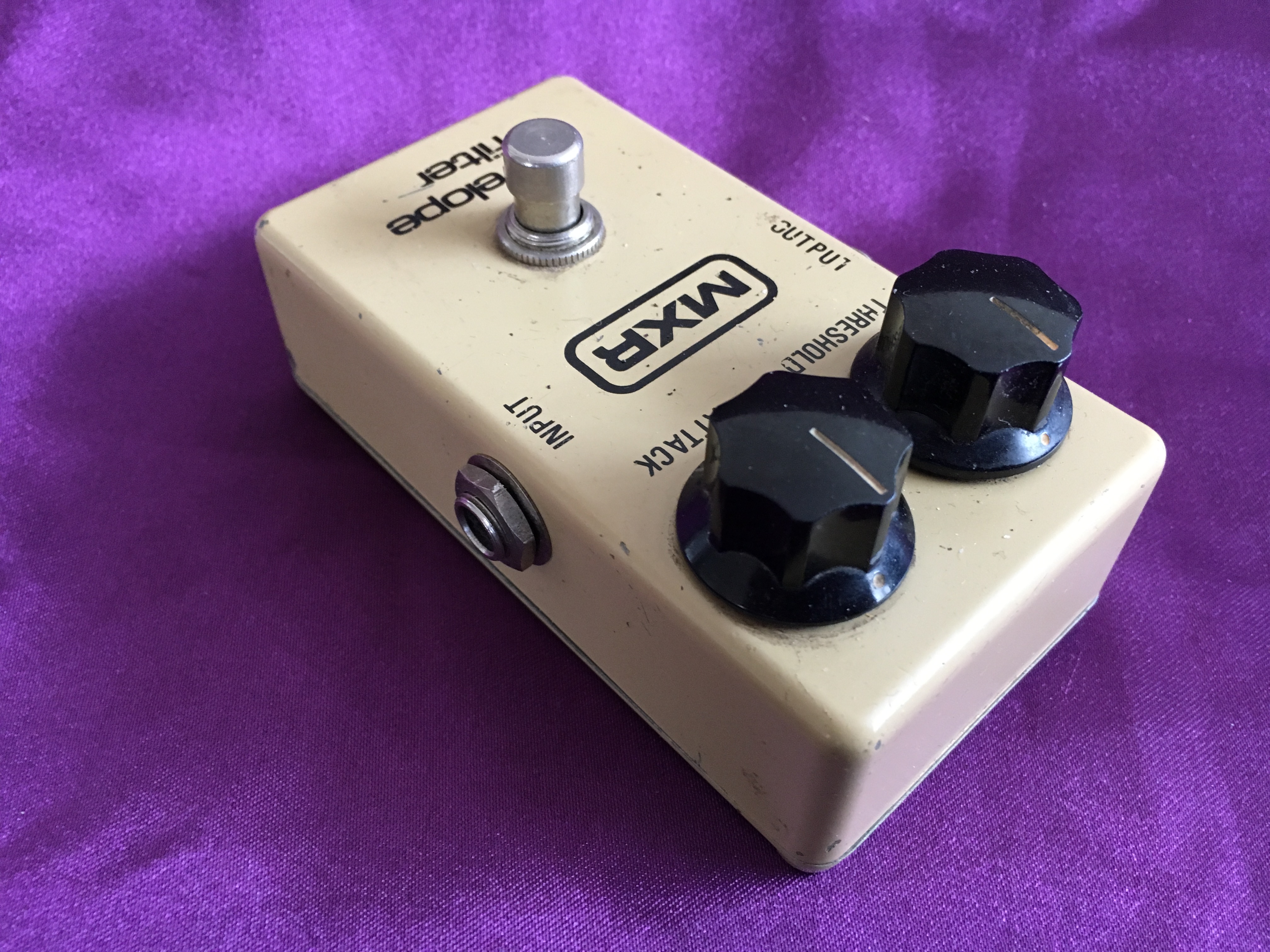 During the late 1970s and early 1980s, New York‑based pedal maker MXR Innovations was turning out some very credible effect pedals such as the iconic Phase 90 and the classic Dyna Comp. A lesser‑known model in the MXR range was the Envelope Filter, which uses the dynamics of the input signal to trigger an analogue filter sweep, resulting in an auto wah‑type effect, much favoured by funk, soul and disco artists at the time. The early first generation MXR pedals featured a ‘script’ logo and model name until about 1975/6, when they changed the design to the more common, modern ‘block’ font. What is it with auto‑wahs and the colour beige? It seemed to be the de facto colour for some envelope filters at the time, including the BOSS TW‑1 Touch Wah.