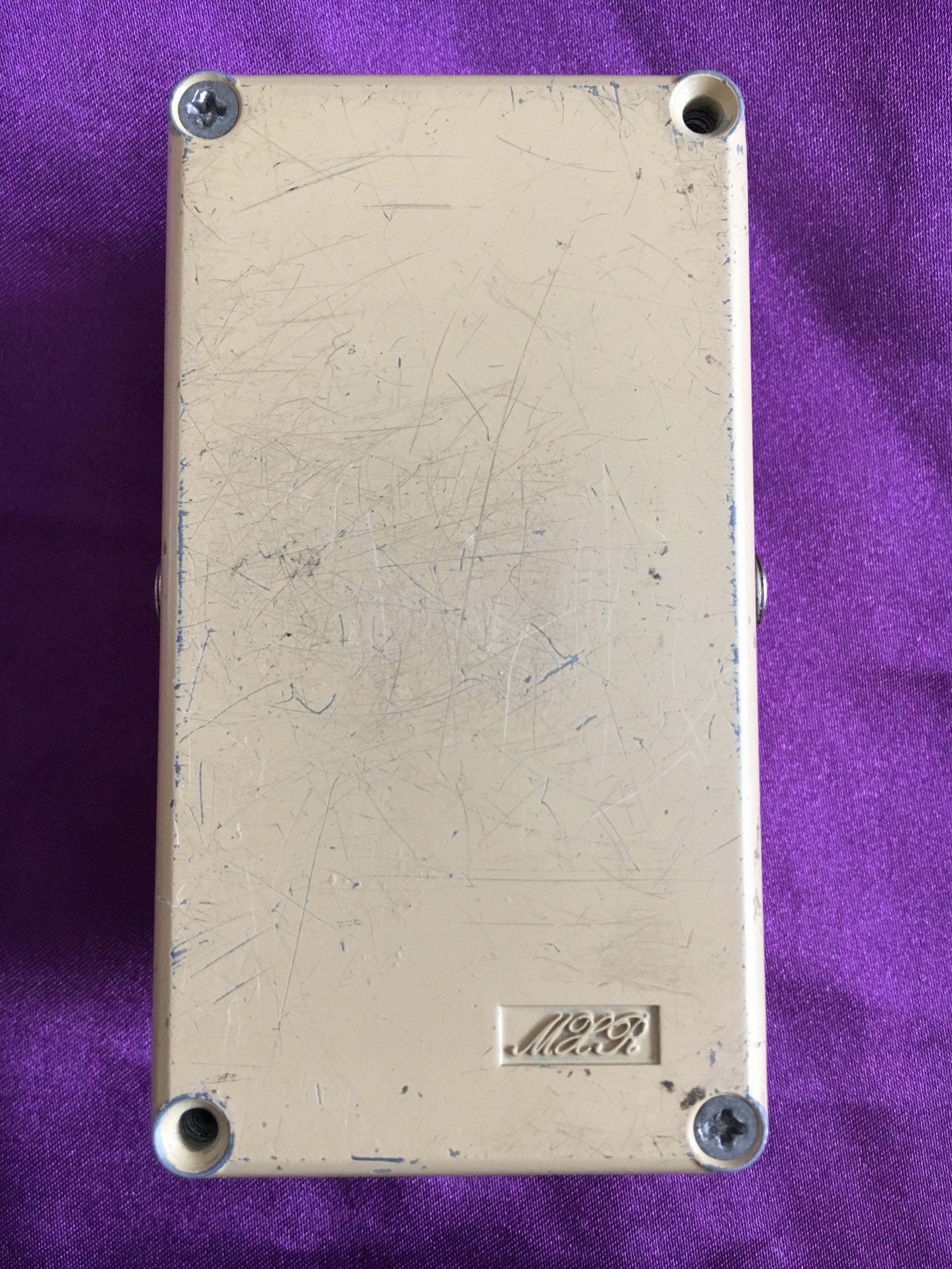 This is a real hidden gem of an effect and is very possibly my favourites of its type. This inconspicuous little dirt‑coloured stomp box was made in the USA in 1978, according to the pot codes. It is in very good all‑original condition. While the 2nd generation main box exhibits the typical block logo, the baseplate has the earlier script logo. This transition combination was quite common, as MXR worked its way through surplus components. In use, the Envelope Filer is responsive, sumptuous and well‑balanced, producing a very effective touch sensitive triggered sound. In my naïve view, although simple to use, it may even be up with the very best of the breed. The analogue circuit can be a bit noisy but, hey, used judiciously the results are well worth it. Overall, it is a much underrated and very cool little pedal. Original vintage MXR Envelope Filters are relatively rare and good condition ones are becoming increasingly sought after for those looking beyond the brand’s more familiar signature pedals.