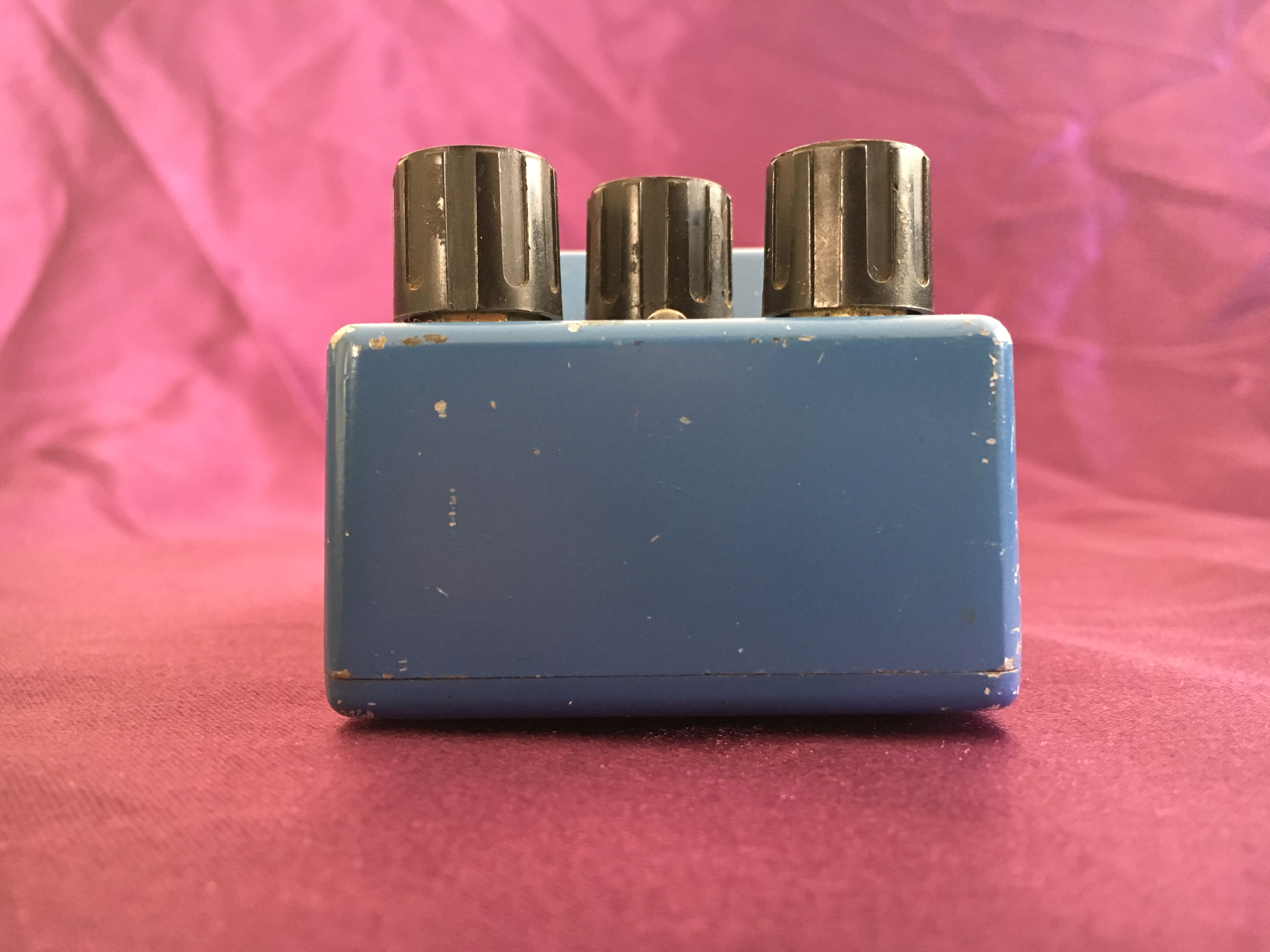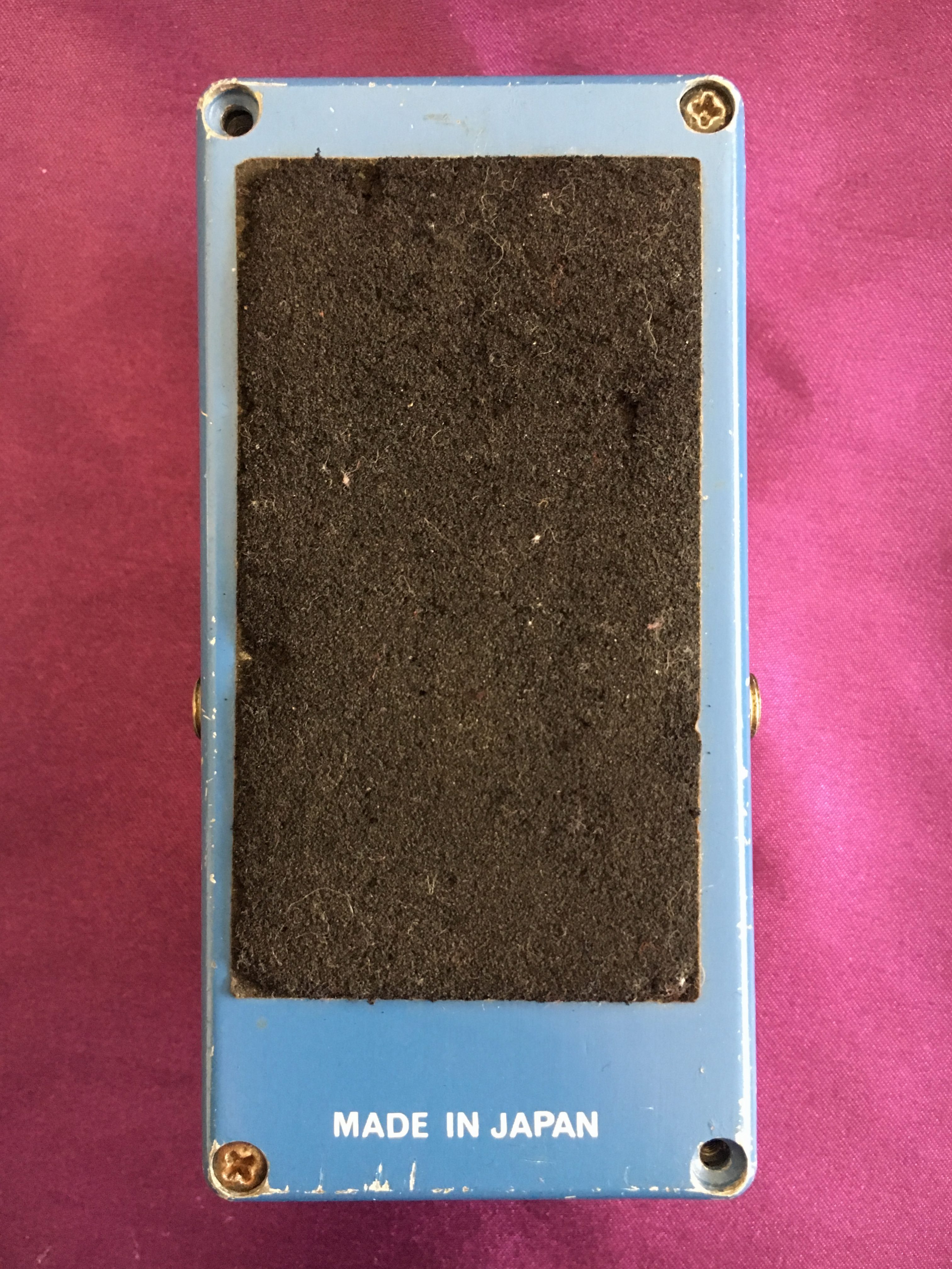 This small and particularly lightweight pedal is a first version ‘narrow box’ Ibanez PT‑909 Phase Tone. The details of the pedal include the round footswitch, ‘Flying Fingers’ graphic (a nice touch) and no power jack, which therefore dates it either to 1978 or early 1979. Although produced in large numbers, each pedal version only lasted about a year, so each of them is relatively rare and therefore collectable, although still reasonably priced. This particular stomp box is in pretty good condition for its age with just a few cosmetic scuffs, nicks and bumps to the paintwork. It is all‑original, bar a couple of missing baseplate screws, which is pretty normal, as removing them is the only way to access the battery. It functions perfectly and the sound is pretty much what you’d expect from a 1970s 4‑stage analogue phaser, perhaps a little thin sounding to my ears compared with the best of breed. The 3 controls add flexibility missing from some of the competition. If you want to get away from the mainstream ‘usual suspects’, the dainty little Ibanez Phase Tone may make an interesting alternative choice.