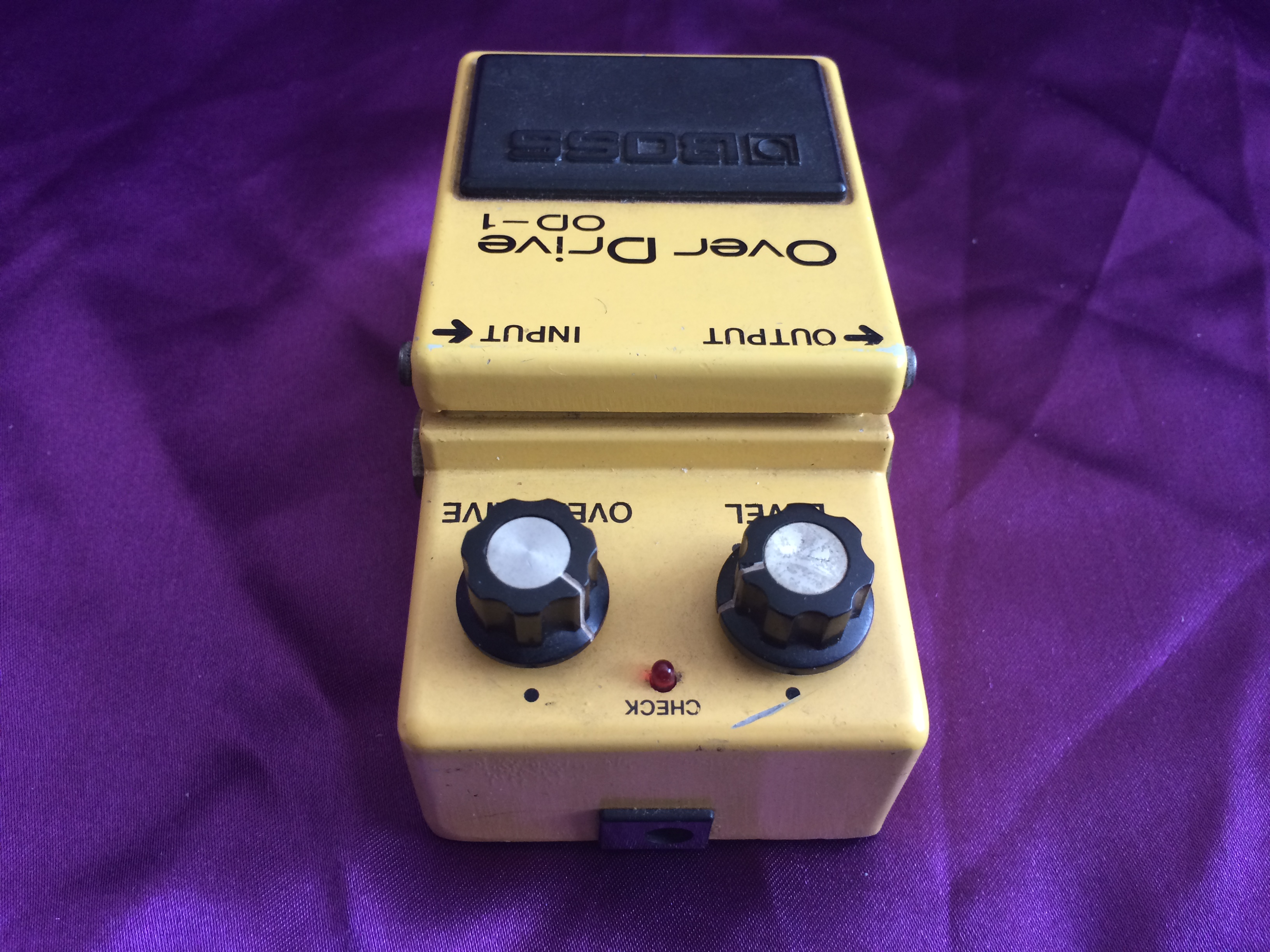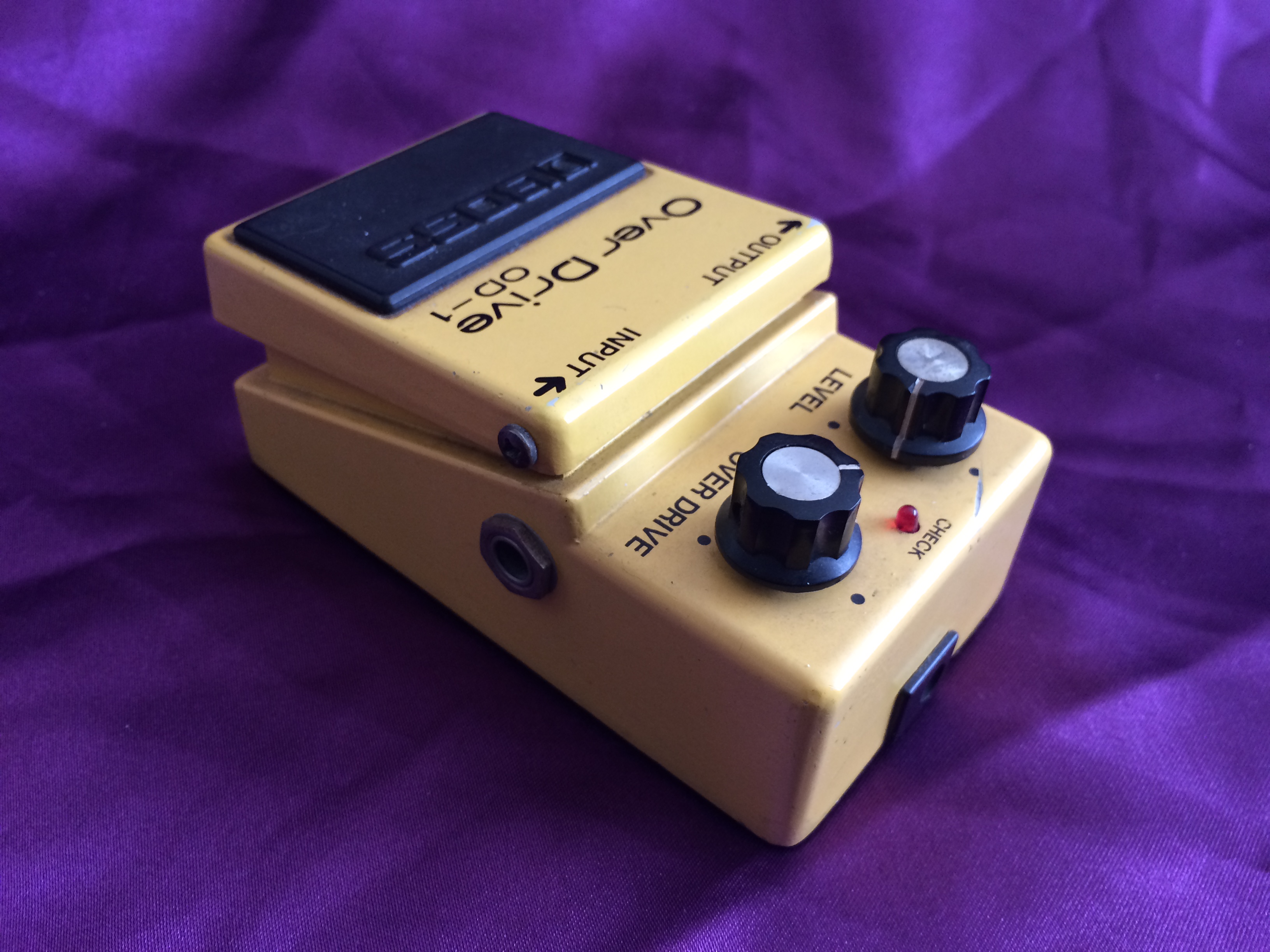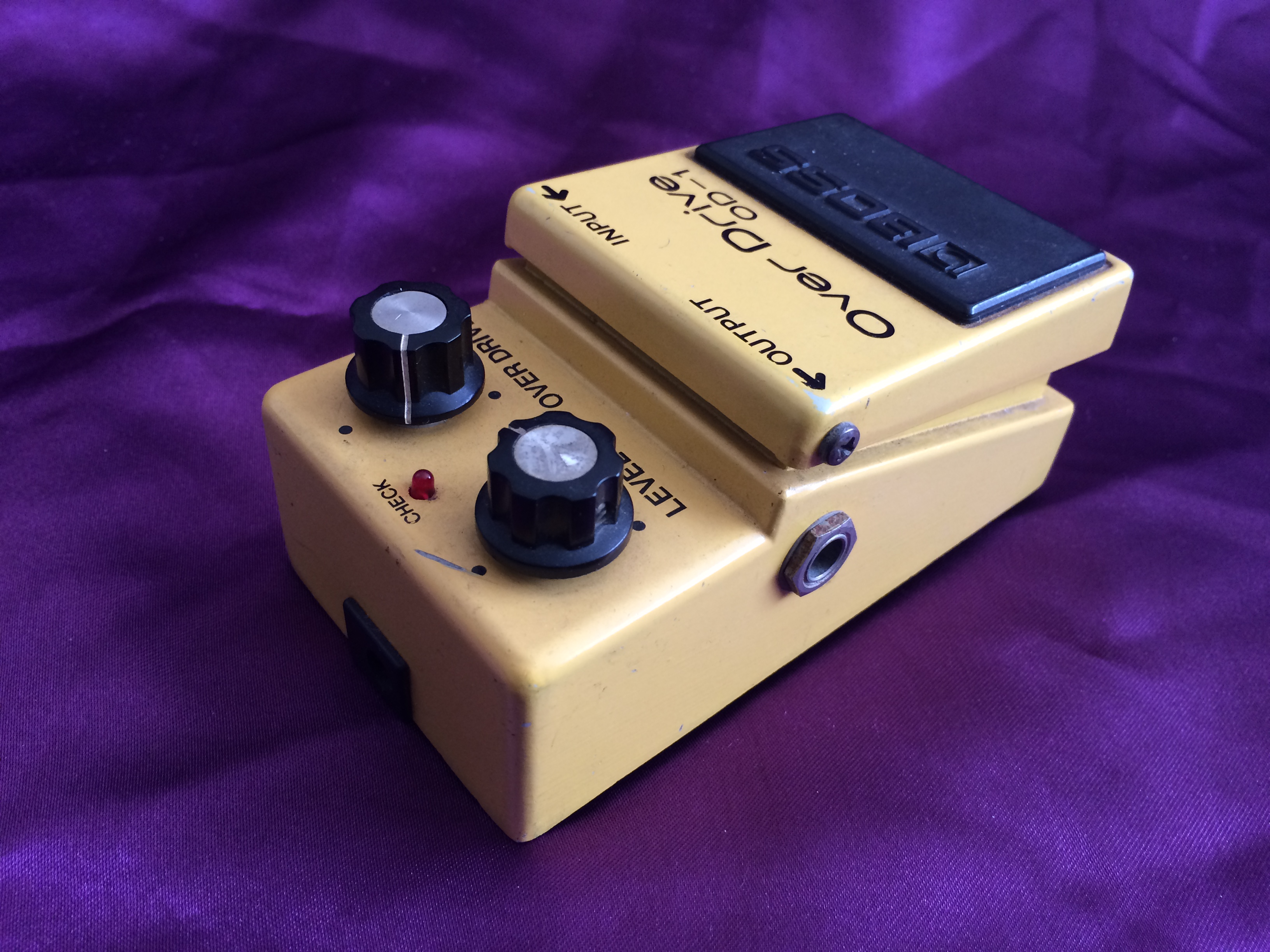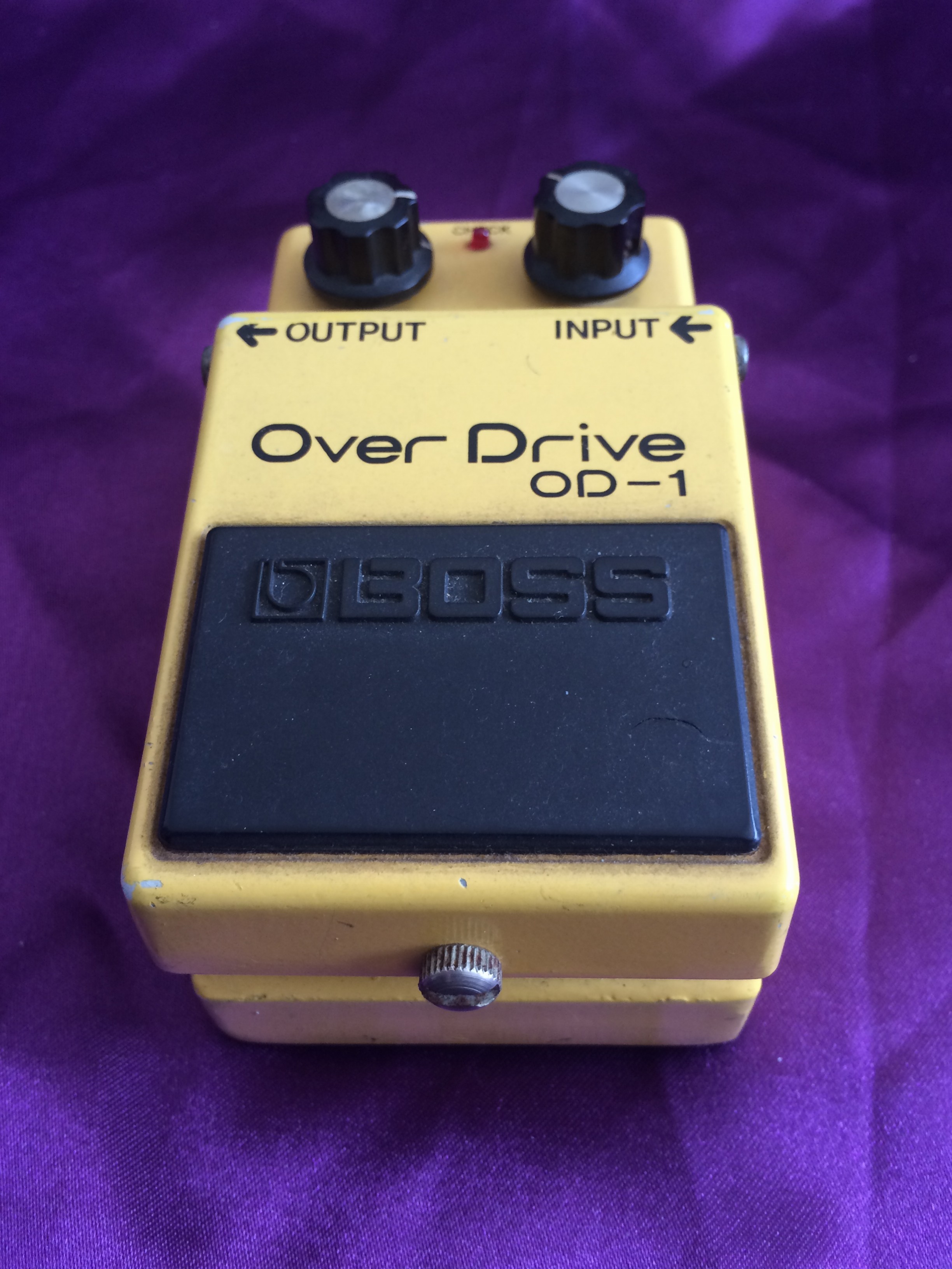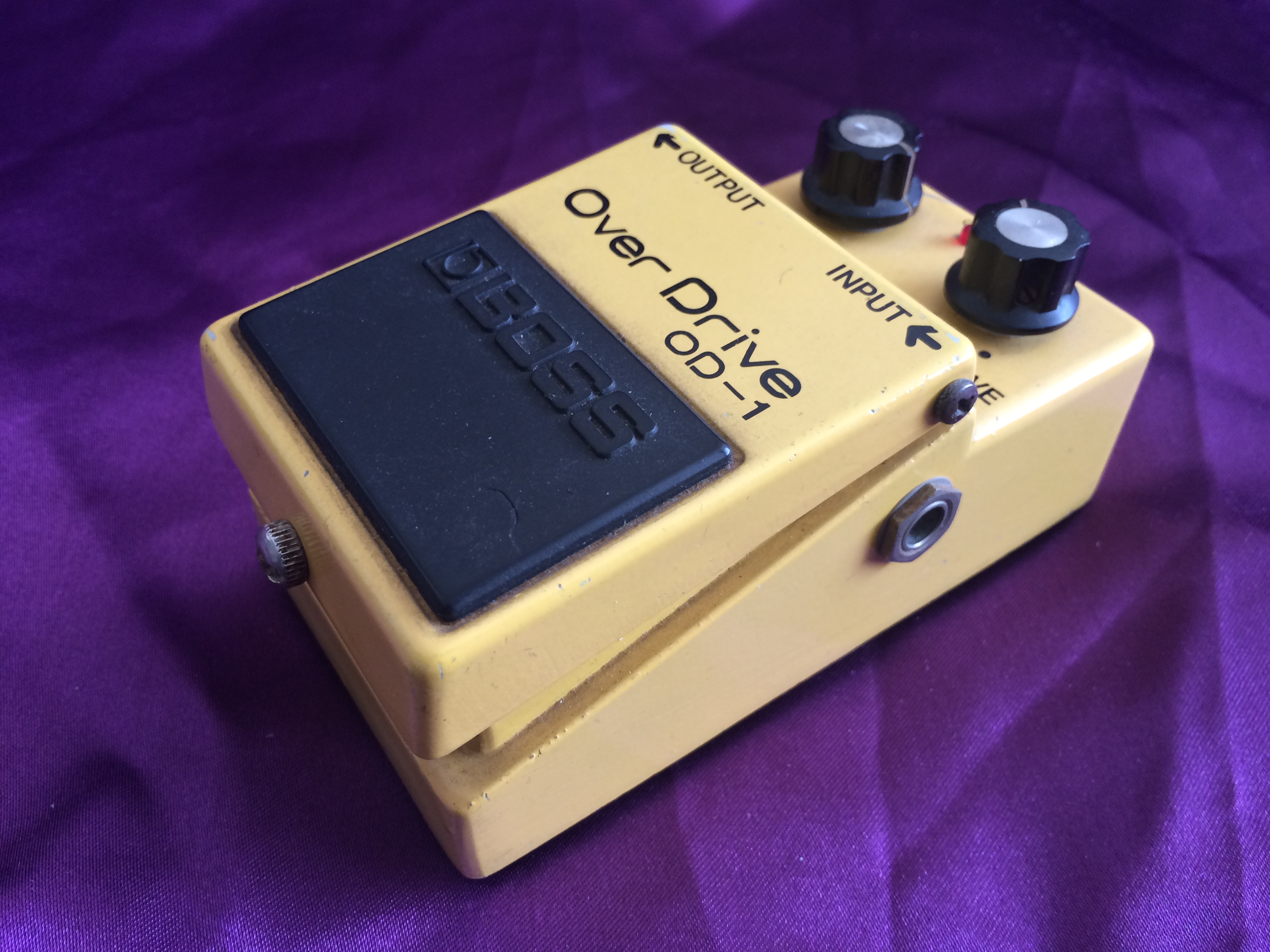 At first sight, the BOSS OD‑1 Over Drive seems like a normal Japanese effect pedal. However, looks can be deceiving. The demure little yellow stomp box is one of the original now‑vintage incarnations of the ubiquitous and massively popular overdrive pedals from the late 1970s and early 1980s. If ever there was a classic BOSS overdrive pedal, this may well be it. The Boss OD‑1 Over Drive was the first Boss compact pedal as well as one of the very first overdrive pedals ever made. The OD‑1 was in production from 1977 to 1985 and set the industry standard for valve‑like overdriven guitar sounds emanating from a compact pedal. The OD‑1 even beat its major competitor, the classic Ibanez TS‑808 Tube Screamer Overdrive Pro by almost a year. The original BOSS OD‑1 shares much DNA with the much‑lauded Tube Screamer, including the use of the same JRC 4558D integrated circuit (although early OD‑1s featured an RC3403 op amp chip). For the tech‑heads out there, the BOSS OD‑1 pedal uses asymmetric clipping whereas the TS‑808 affects the positive and negative halves of the waveform equally, reportedly giving the OD‑1 a more natural sounding distortion. The modest OD‑1 provides access to the wonderful mid‑range crunchy sound, that when pushed hard verges on distortion rather than overdrive. Simplicity is key to its operation, with not even a tone control to contend with. While relatively pricey on the vintage effect market, the BOSS OD‑1 remains significantly more cost‑effective than equivalent Ibanez TS‑808s, probably due to the latter’s association with the late great Stevie Ray Vaughan.
