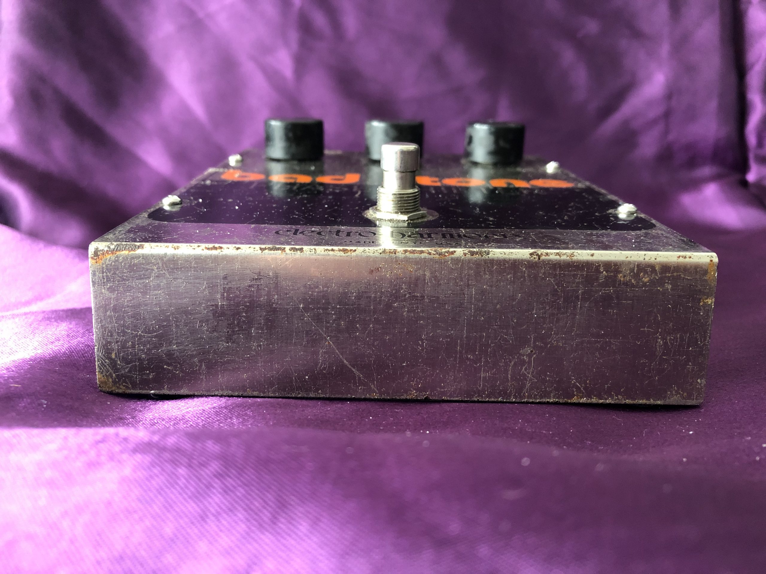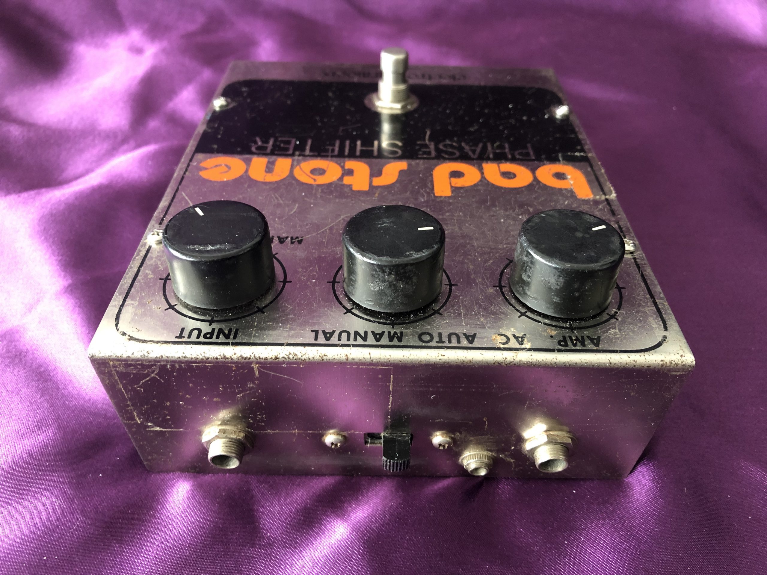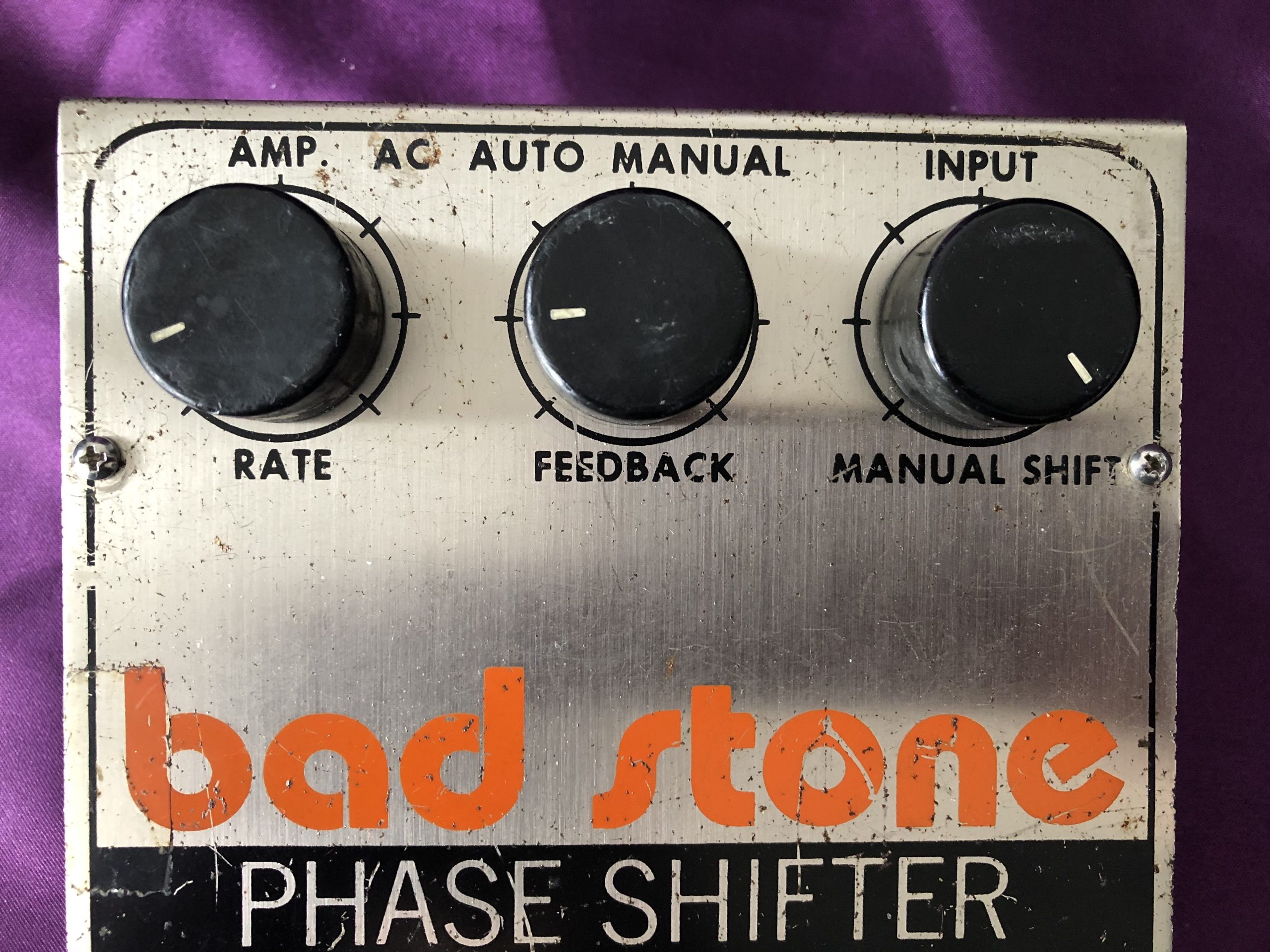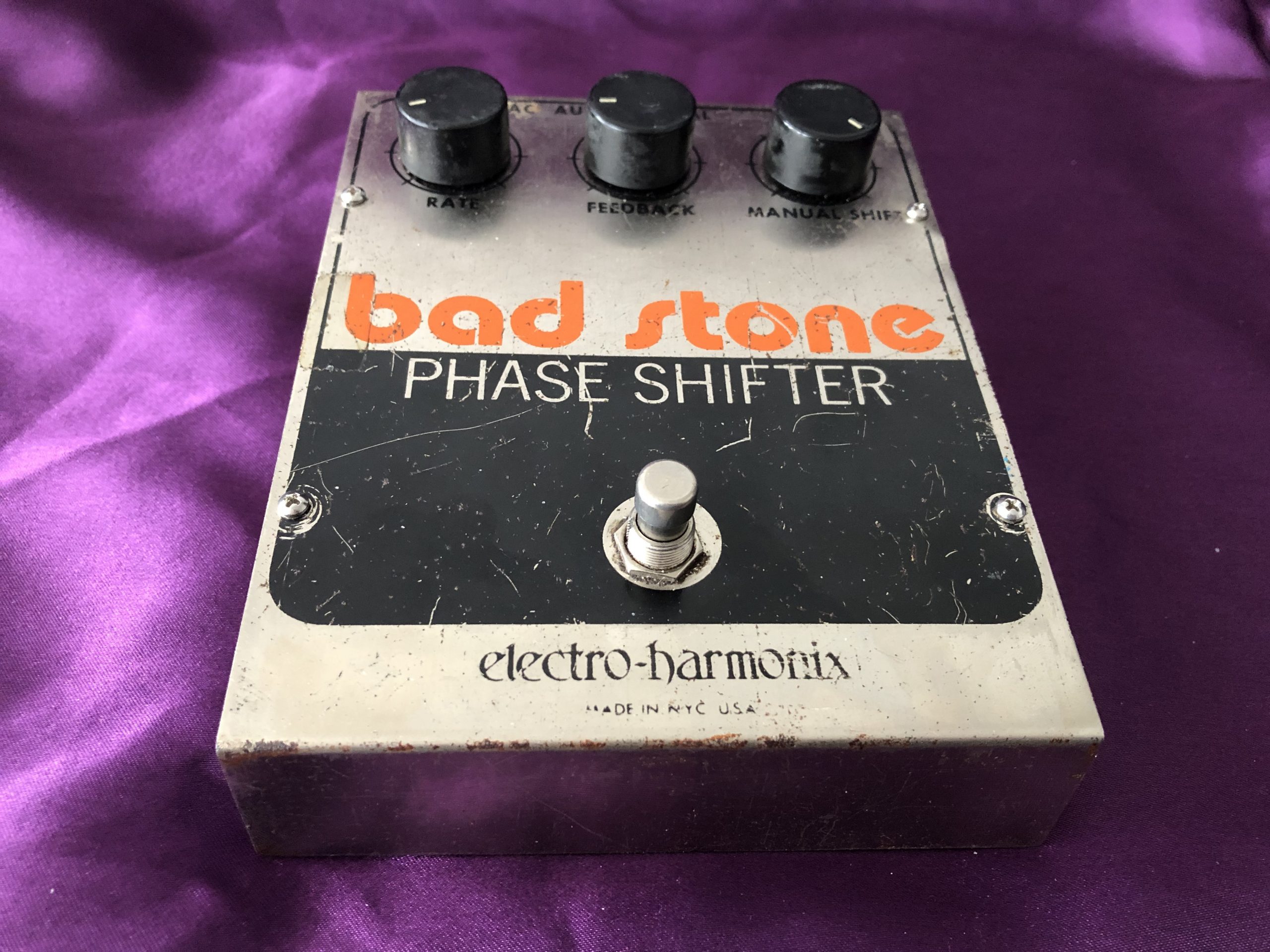 Back in the day, I used to have one of these late 1970s Electro‑Harmonix Bad Stone Phase Shifter’s, owned from new. At the time, it didn’t seem to a novice guitarist that it offered much more than the smaller and simpler Small Stone, so the latter remained and the Bad Stone went. Now, a Bad Stone is back in the family and thoroughly deserves its pride of place. As with many of the chrome plated and screen printed pressed steel enclosures of the time, they are showing signs of age and use. However, this cool scruffy aesthetic belies the underlying robustness of the Electro‑Harmonix enclosure, which has actually endured well. The battery clip is a replacement but everything else is original and working very well. The LFO tips over into continuous hum at the extreme of the ‘Rate’ control, which I don’t recall the original doing, so it may need a bit of TLC at some point. The Bad Stone is a different animal when contrasted with its Small Stone sibling or the MXR pedals. The swirly sounds are typical of 1970s analogue phase pedals which, on the surface, seems to belittle its characteristics but is actually a backhanded compliment – this really is a classic of its era and rightly so. The amount of control over the effect is significant, especially compared to the Phase 90’s single ‘Speed’ knob, or even the Small Stone’s limited feedback/depth control. Modern phase effects can sound all too clinical, while these older all‑analogue pedals just seem to get better over the years, relatively speaking. Despite the faithful reissues and copies that have appeared along the way, the originals still stand up very well, if a touch noisy at times.