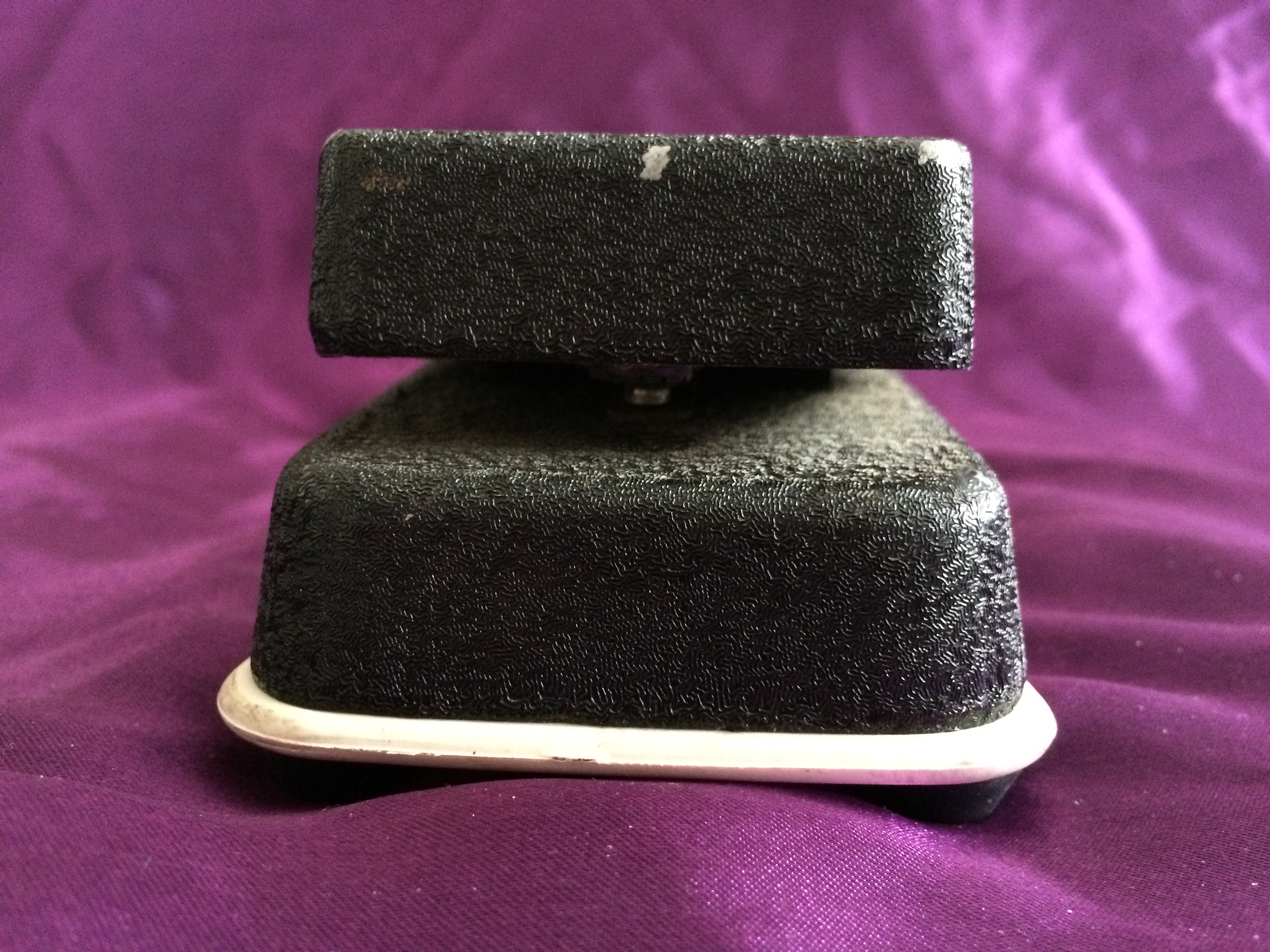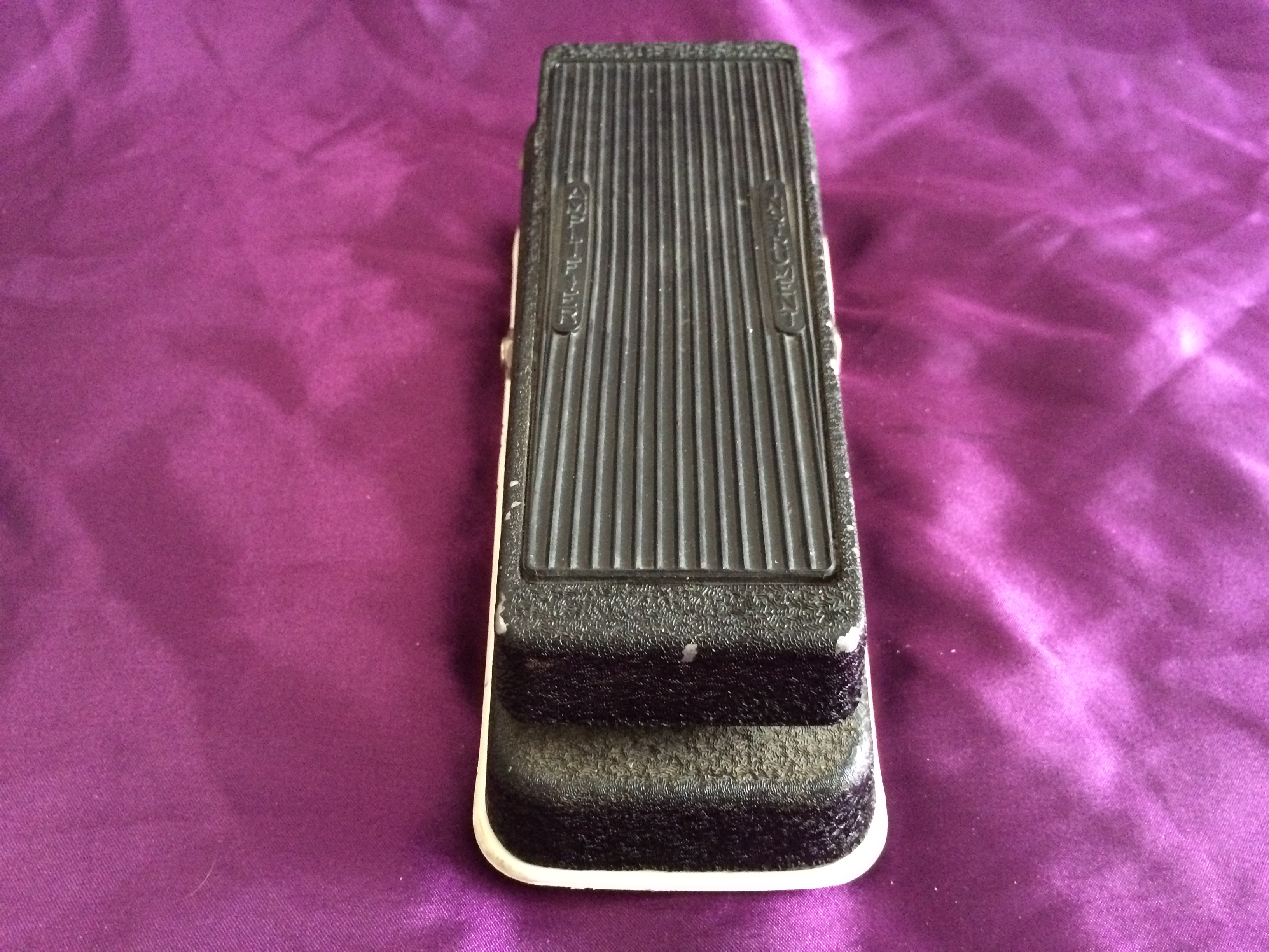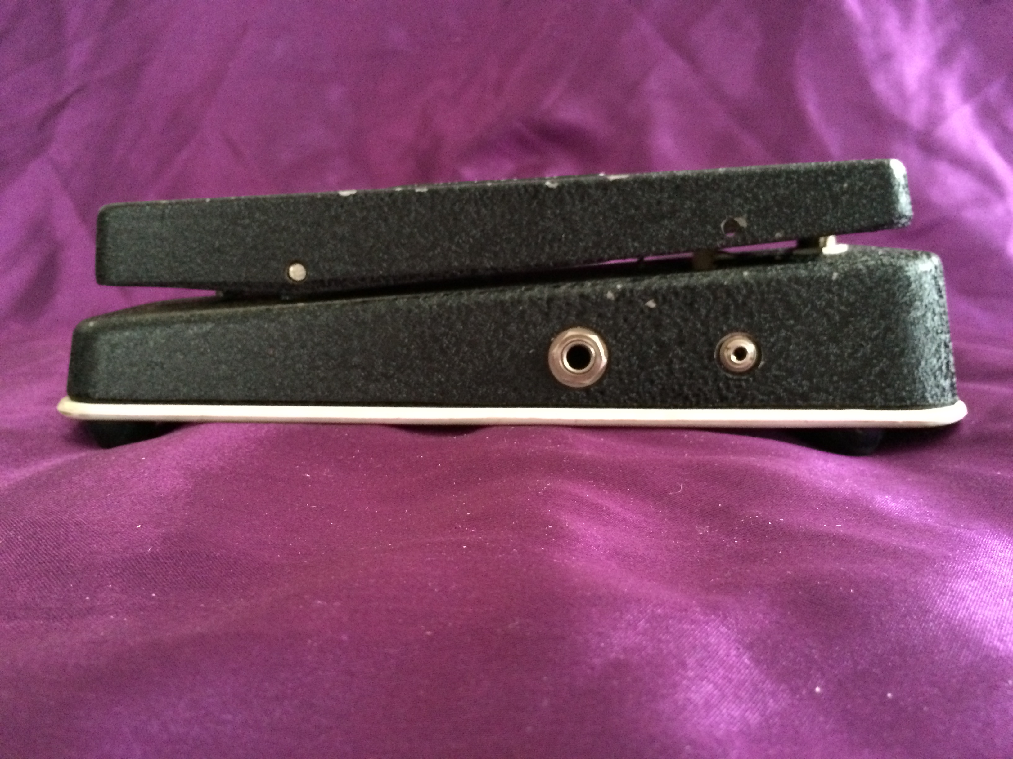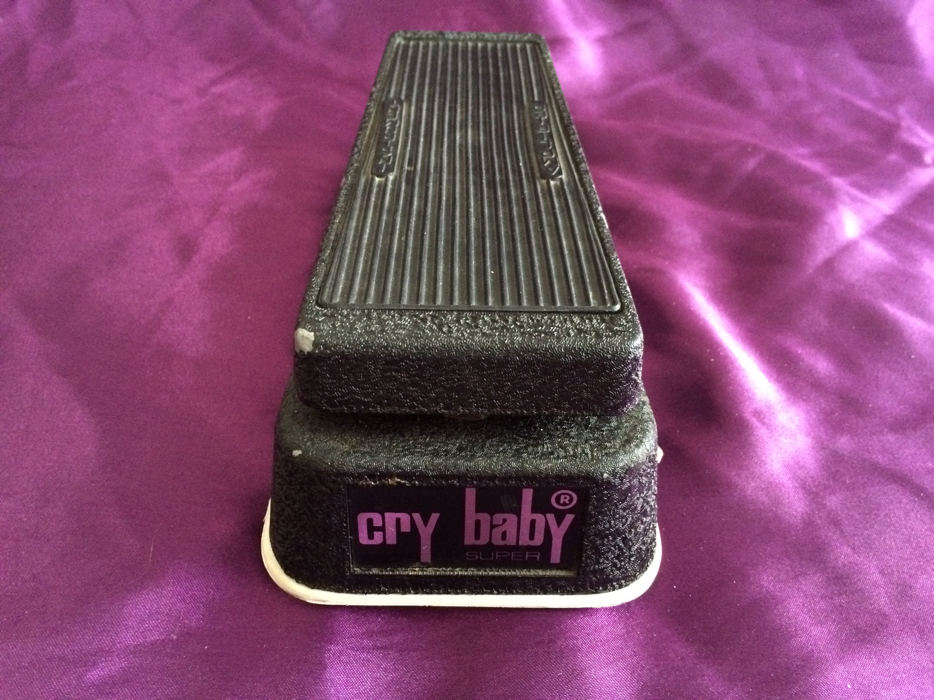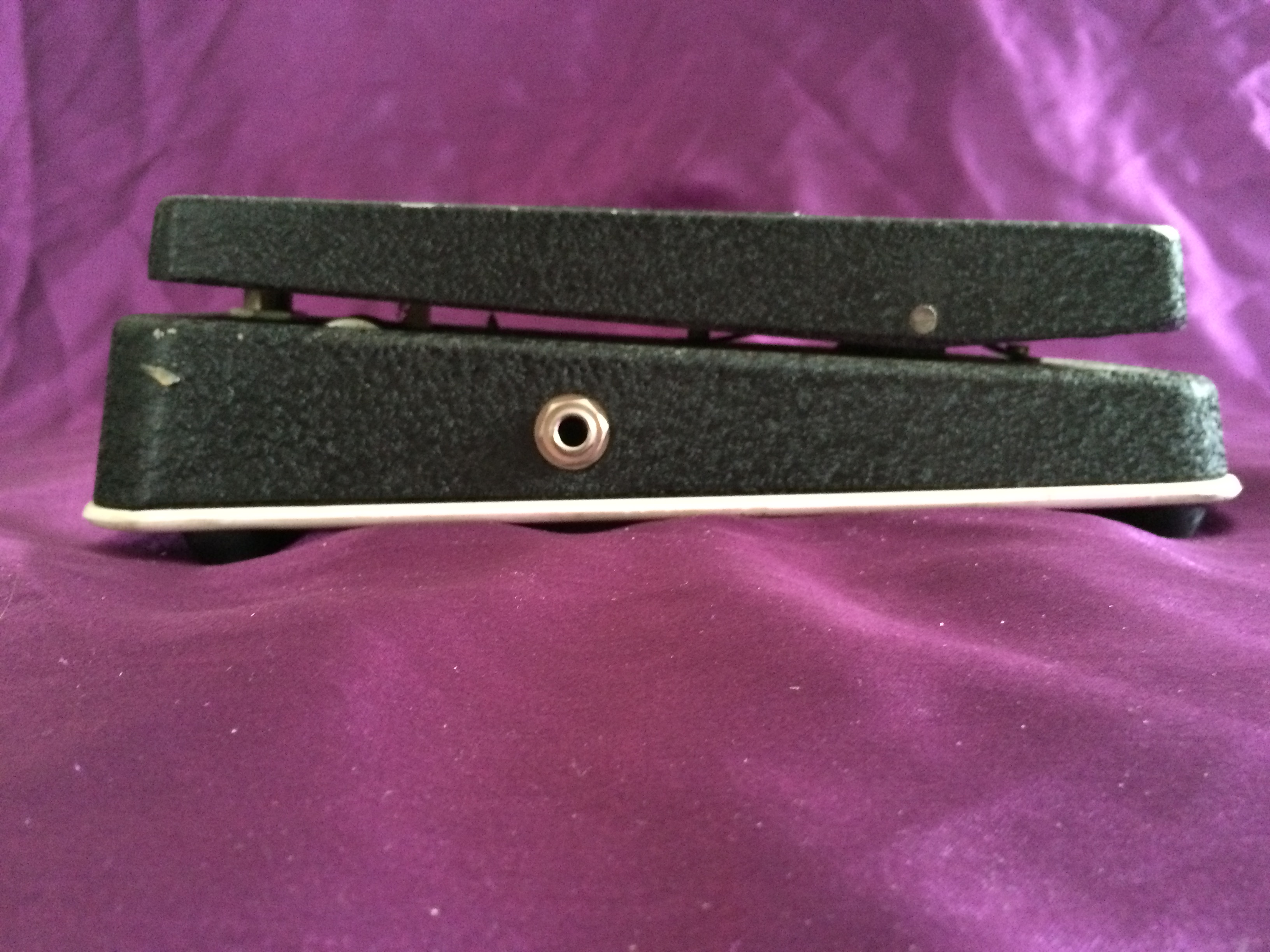 The potentiometer in this particular Cry Baby Super dates to early 1980, indicating it is probably one of the last of its ilk before Dunlop took over the brand. The pedal is in great original condition, with only a few superficial marks to the characteristic matt black crackle paintwork. The base, so often easily scuffed, is in near-perfect condition, as is the distinctive white plastic seal between the unit and the base, complete with original rubber feet held on with slotted screws. The rubber bumpers on the underside of the treadle are missing (easily replaceable) but everything else appears to be original, including the white Fasel inductor (NB. other colours include red, yellow and green, folks). Perhaps most importantly, the pot doesn’t have any signs of ‘scratchiness’ to affect the sound. Just as it should be, the Cry Baby’s evocative tonal sweep is pure 1970s rock and funk (think Isaac Hayes and the ‘Theme From Shaft’). The pedal’s classic wah sound has been oft-imitated, though rarely bettered. This is a fantastic example of vintage cool at its most elementary. Pre-Dunlop Cry Babies are the most collectable, most interesting, and remarkably still remain modestly priced. Say wah!
