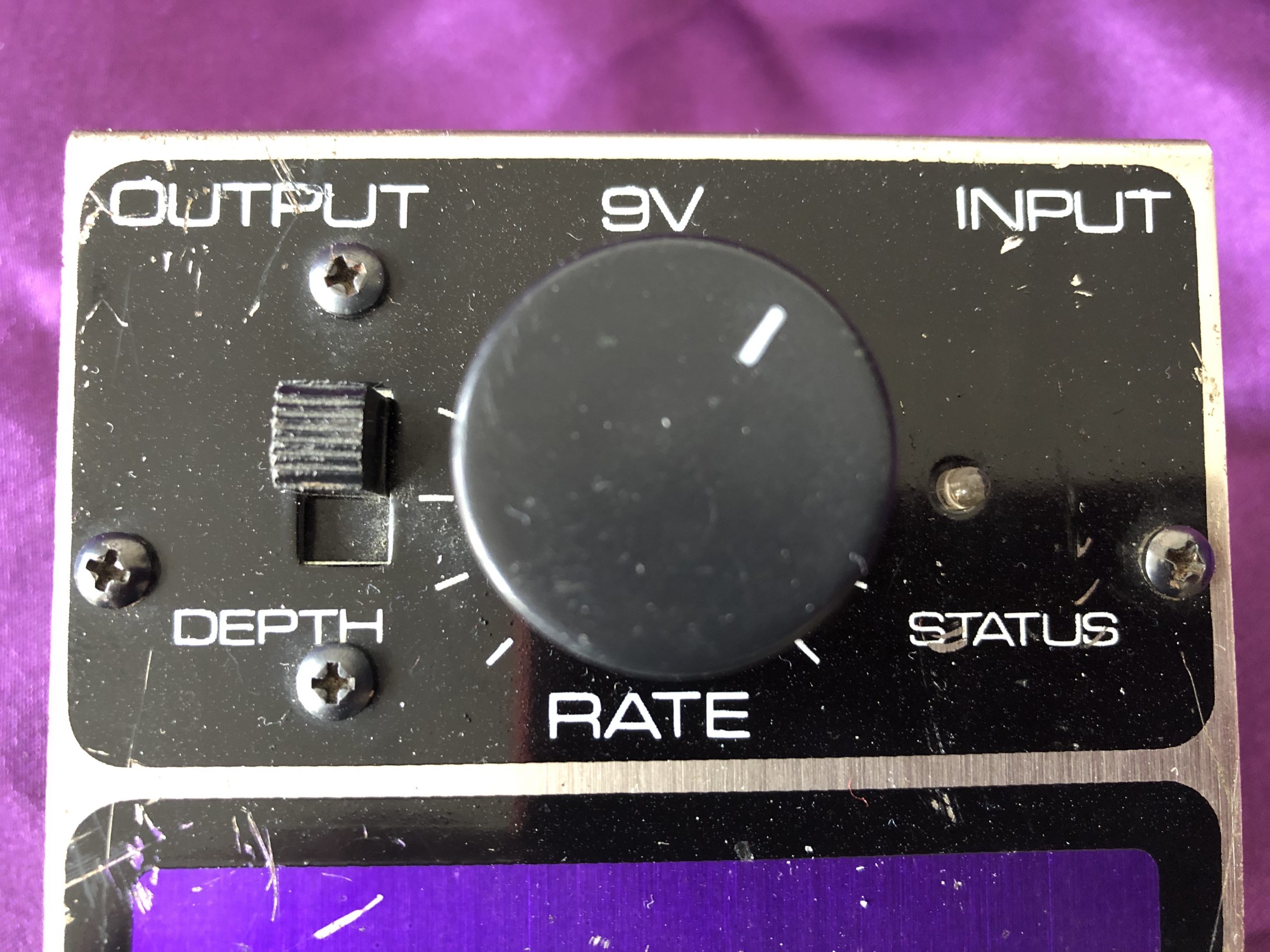 OK. Let’s get this out of the way right at the start. Yes, it is the original all‑analogue Electro‑Harmonix Small Clone that was made famous by Kurt Cobain of Nirvana. Personally, that matters not. Right, obvious artist association out of the way, now to get down to business. The Electro‑Harmonix Small Clone was manufactured from about 1979 until 1983, when the original incarnation of the New York effect manufacturer went out of business. There are a lot of myths about both the electronics and labelling, so let’s deal with that next. The ‘essential’ component of the Small Clone is the solid state ‘bucket brigade’ chip that runs the show. Original Small Clones used either the common Panasonic MN3007 or the more rarely used Reticon SAD 1024 chip. Both are well‑regarded ICs. There are supposed to be minor audible differences between the two chips but not enough to make any substantial difference. The labelling on the front can state either ‘Mini‑Chorus’, ‘Full‑Chorus’ or Full Chorus’ (minus the hyphen). Even more so, it makes no difference whatsoever and is a collector’s foible, often used to escalate prices. The differences are marked compared to the reissues, which sound appreciably different, all use the MN3007 chip and ‘Full‑Chorus’ label. A chorus pedal is simply a delay line that has a short delay and subtle frequency shift that is fed back into itself to give a swirly sort of effect. Chorus pedals went out of fashion in the 2000s and 2010s but their popularity has been rejuvenated in recent times with the rise of the boutique pedal market. There is a high proportion of bashed and battered examples out there. Cobain’s name and the relative scarcity of good condition early Small Clones make then highly desirable on the vintage effect market, with frankly silly prices to match!