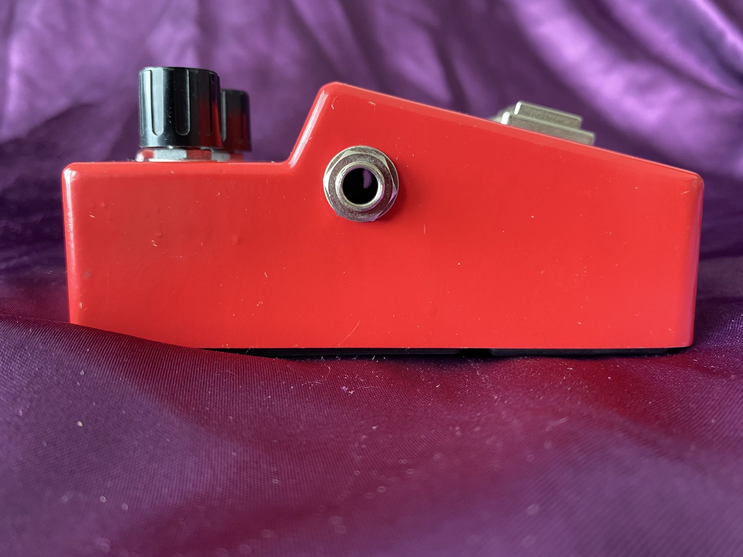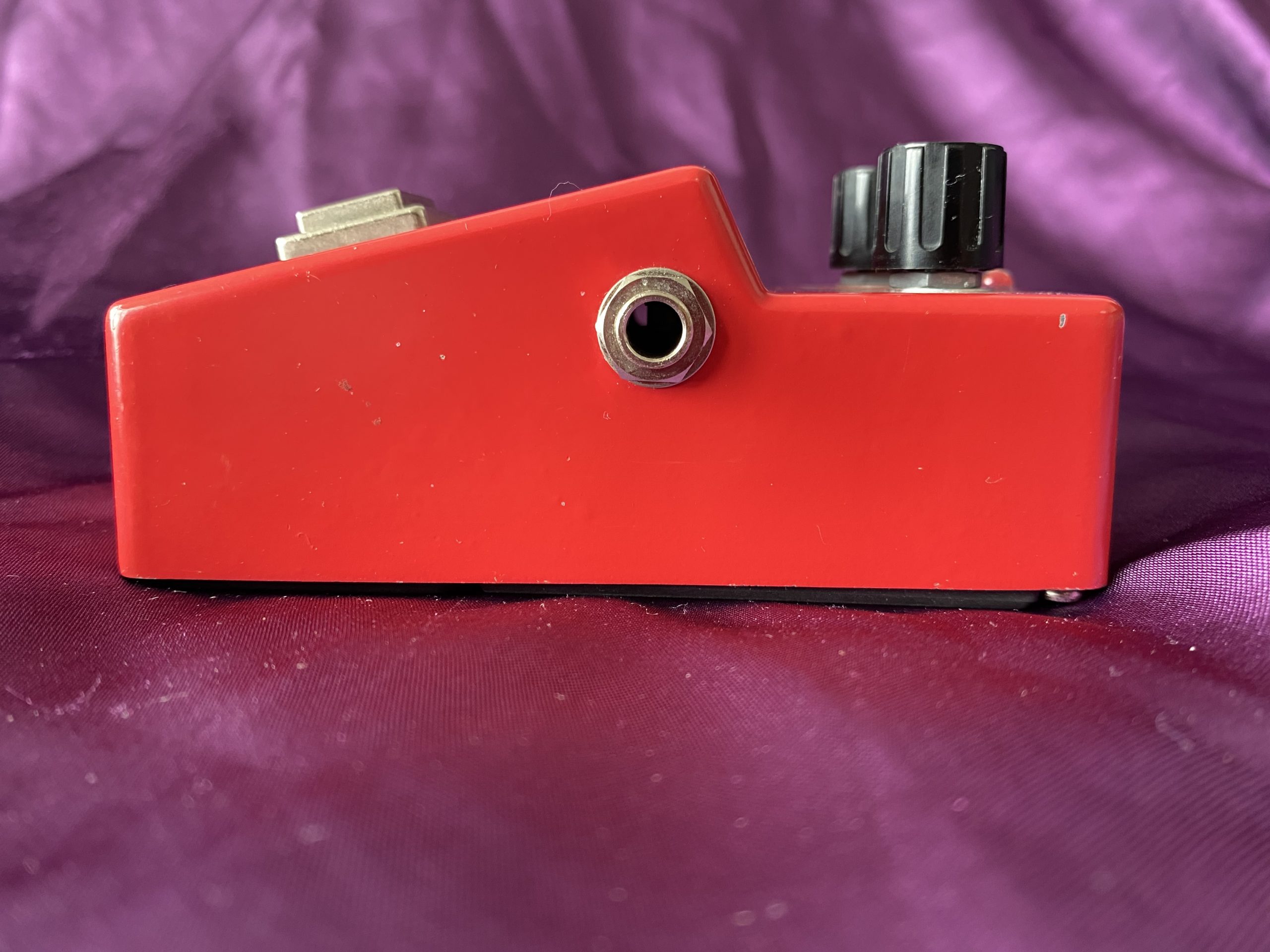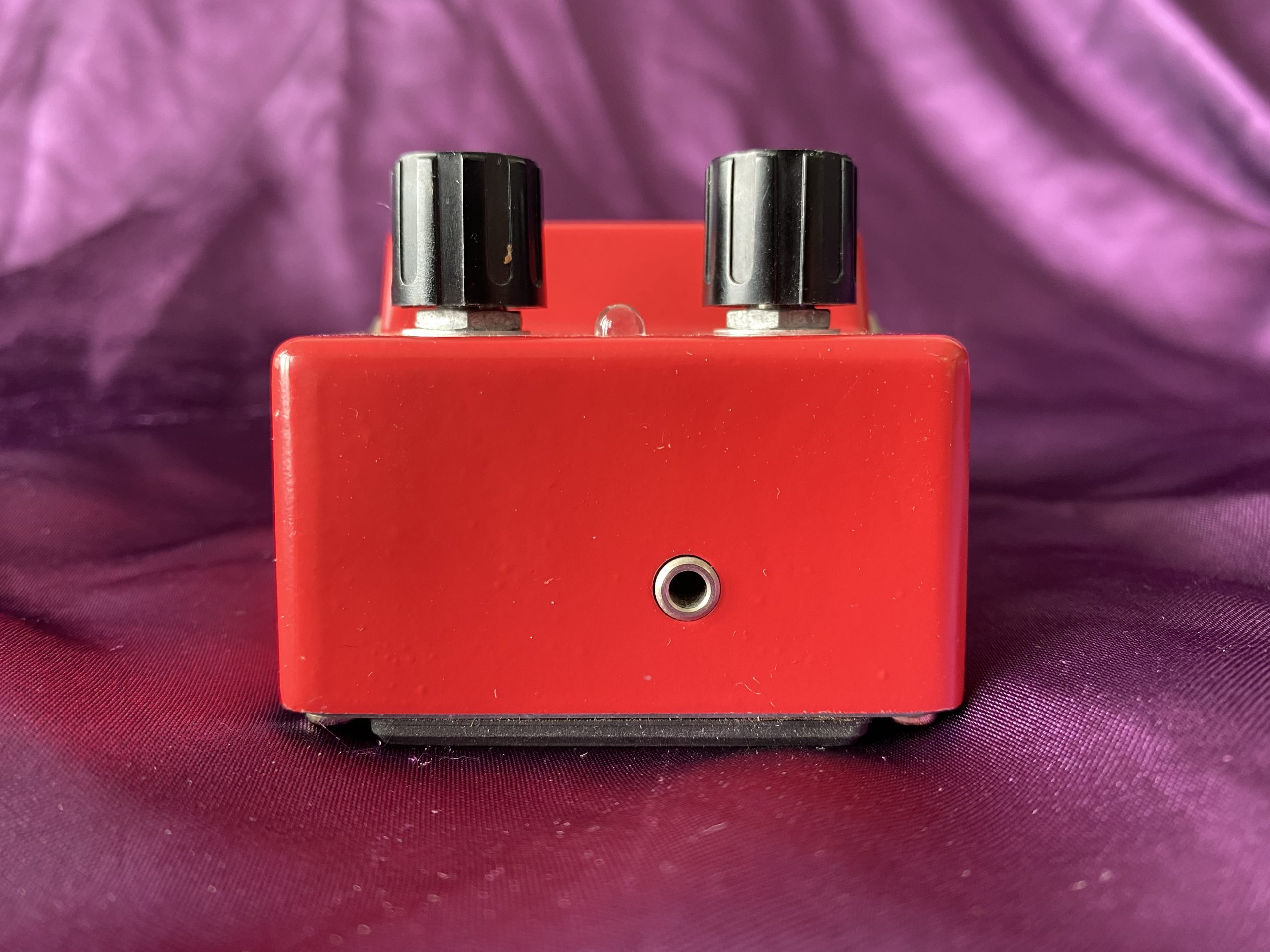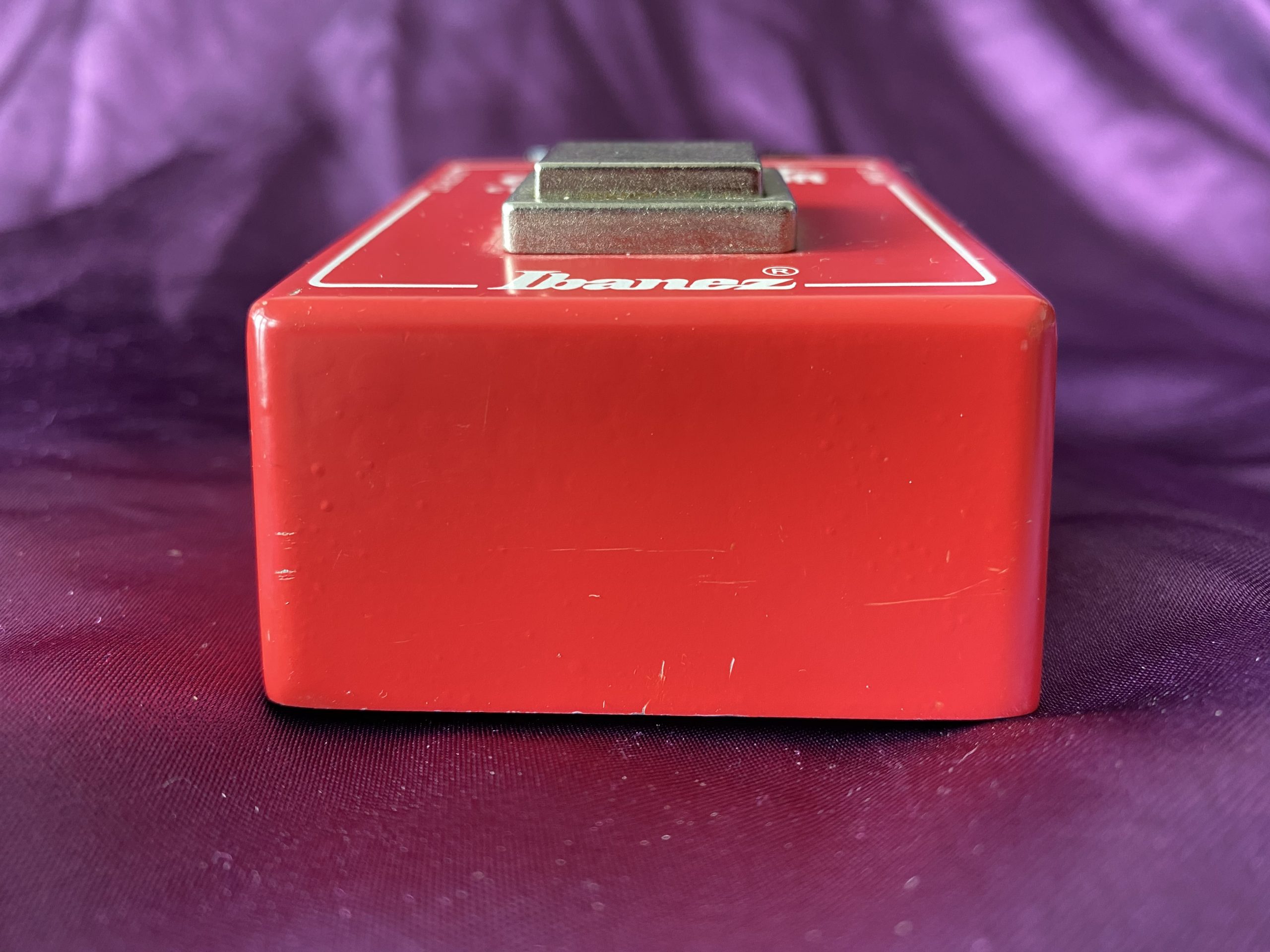 This all‑original bright red 1981 Ibanez CP ‑835 Compressor II is in excellent condition and looks almost new. The enclosure shows barely any signs of use. It also comes with its original box and instruction manual, which is always a bonus for these older pedals. In addition, this CP‑835 has the features that effect collectors look for, including the ® above the ‘z’ in its logo, the black ‘Made in Japan’ label on the baseplate and the original Maxon battery compartment cover. Ibanez continually changed its specifications at the time and this one is apparently the 3rd incarnation of the CP‑835, which has the standard width box, a plain DC input jack and white level markers around the knobs. The simpler approach used by the CP‑835 makes it a great deal easier to dial in an effective, musical sustain, even though it doesn’t have quite the flexibility of control that the CP9 possesses. Personally, I prefer the back‑to‑basics approach, as used by the MXR Dyna Comp. Set the level and choose the amount of sustain, which at higher levels gives a lovely, lush bloom to the tone without it being too oppressive. It also gives a lovely sounding attack to picked notes. The Compressor II is one of those pedals that adds some ‘spit and polish’ effect on a signal, rather than mangling it into something else altogether. Many users swear by compact stomp box compressors as an always‑on tone enhancer to smooth out playing dynamics, to refine the sound, to boost a clean signal and to give an impression of increased sustain. Compressors work particularly well for guitar slide playing, although they are equally effective for many other styles. A compressor’s impact really only becomes apparent when it is switched off after playing through one for some time. The Ibanez CP ‑835 Compressor II is not one for the compulsive knob‑twiddlers out there, just a simple solution to sweet sonic smoothness.