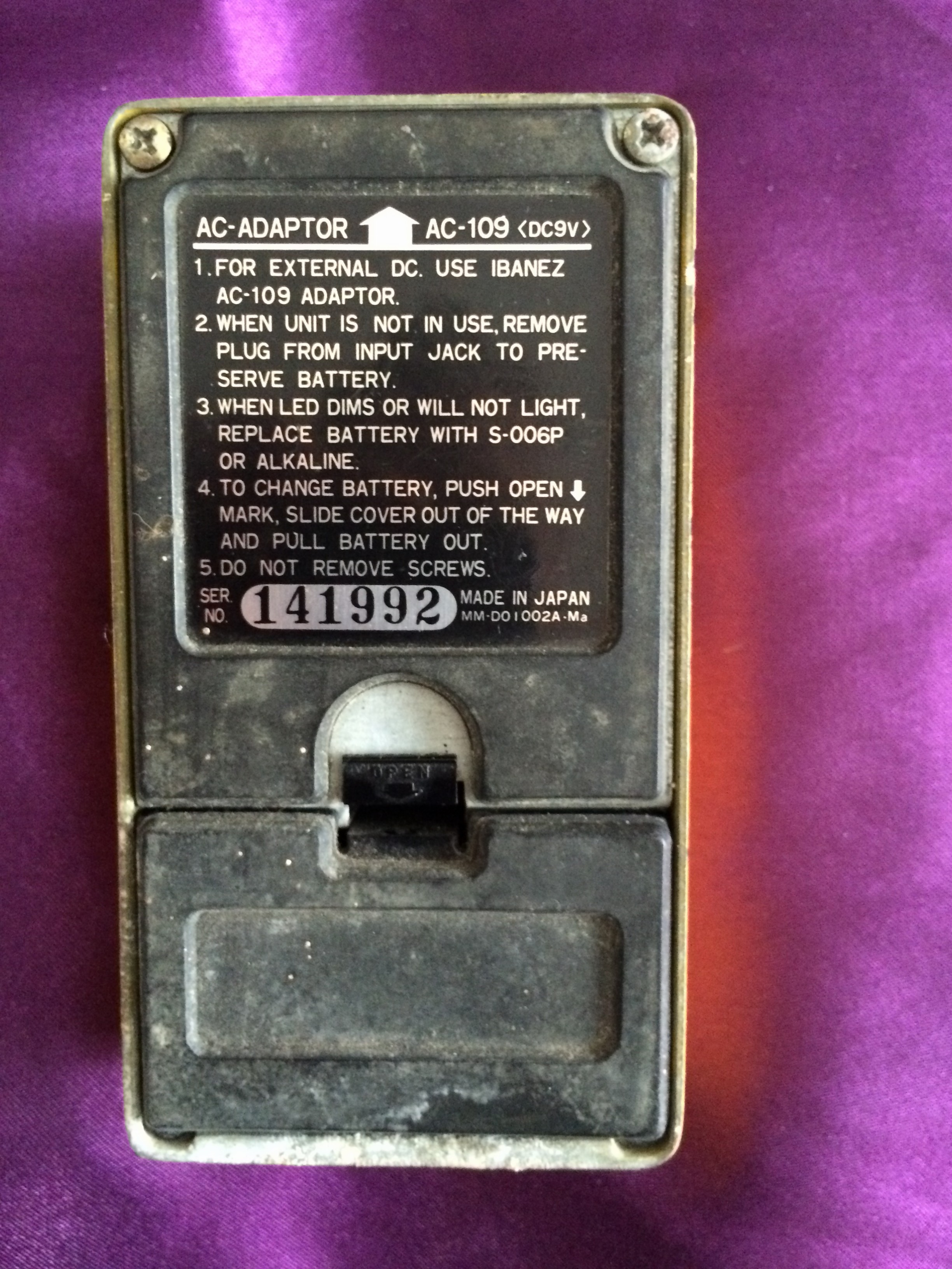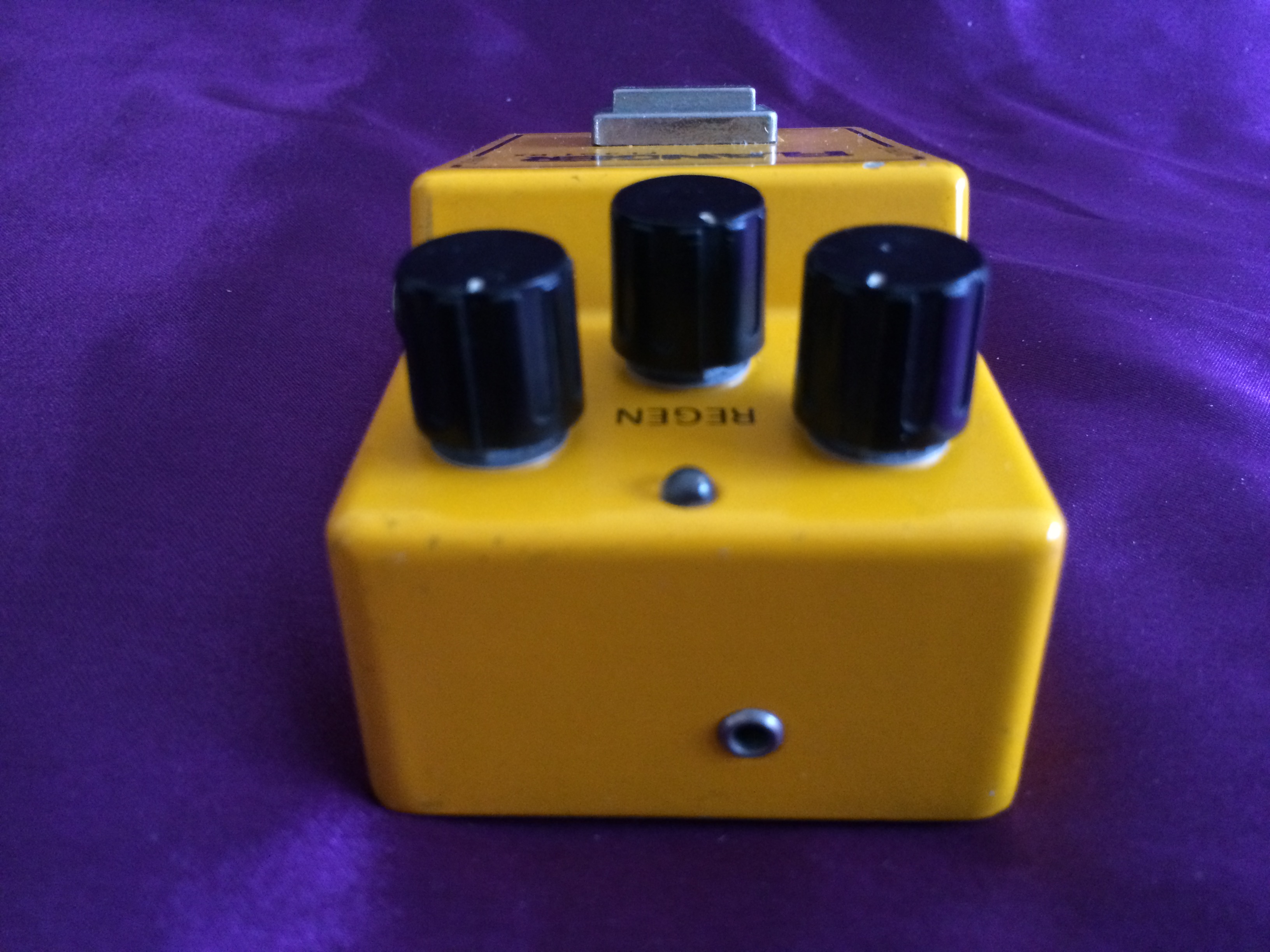 Here for your delectation is a bright wasp‑hued 1981 Ibanez FL301‑DX Flanger. It is difficult to date vintage Ibanez pedals from the serial number. As far as I can tell from the features, this pedal dates from approximately 1981. There were 2 versions of this pedal; version 1 without level markers and version 2 with level markers around the knobs – this pedal is one of the earlier models. Where it matters, the analogue comb filter’s spacious modulation effect is stunning, ranging from mild and subtle to the wild and whacky. The jangly, shimmering chorus tones are evident in abundance, the soaring ‘jet aircraft’ swoosh is there in spades, the atonal ring modulator-like edginess is a doddle to dial in, so too is the warbly manic mayhem of everything ramped. This is one impressively cool and fantastically usable effect. This durable pedal is in excellent condition, with just a few very minor scuffs to the paintwork. The battery connector is a necessary replacement – everything else is original. There is a beguiling warmth and charm to these vintage analogue pedals, which are now eagerly sought out as a welcome antidote to the clinical harshness of modern digital effects, something even today’s boutique pedals struggle to match.