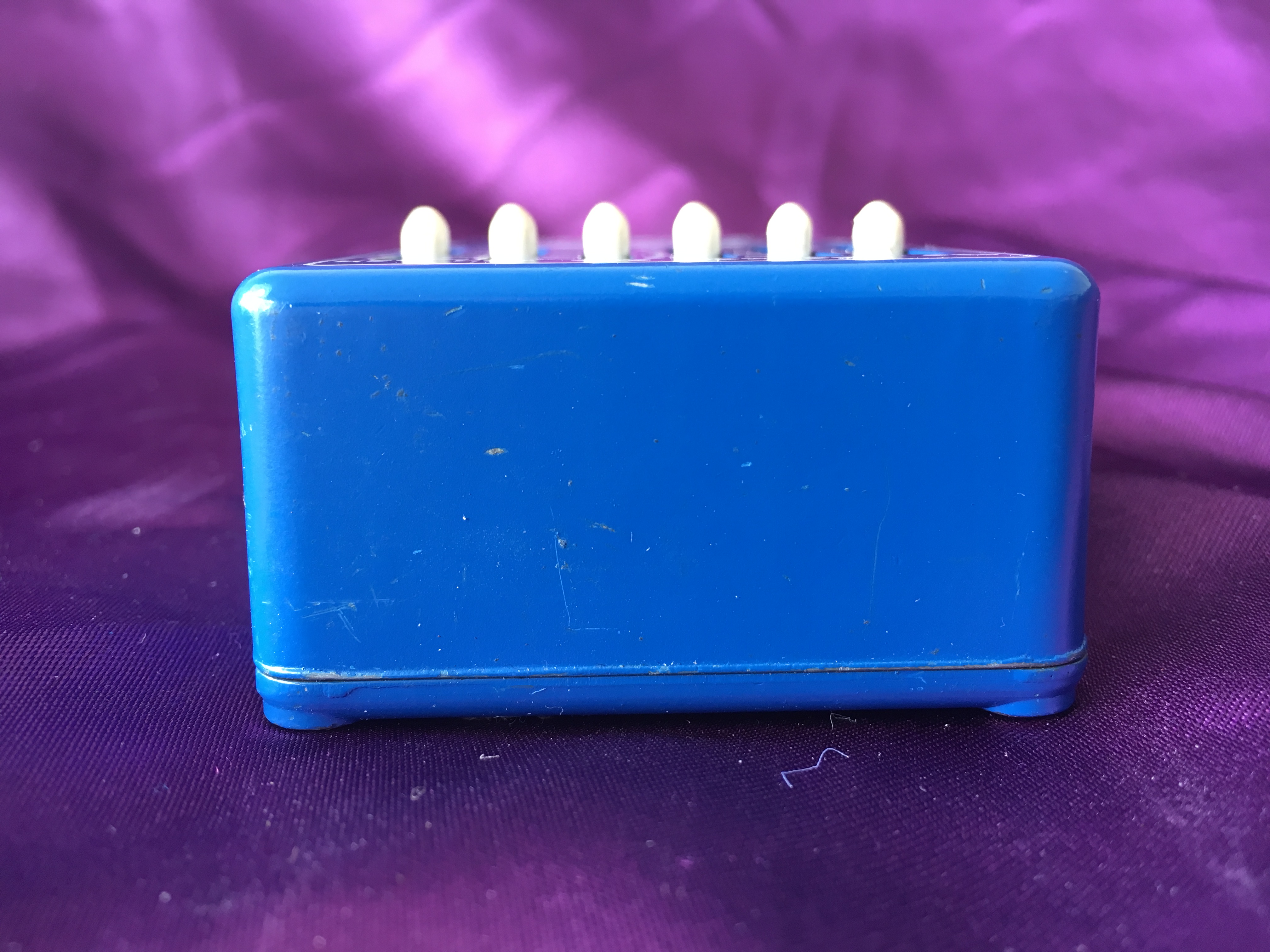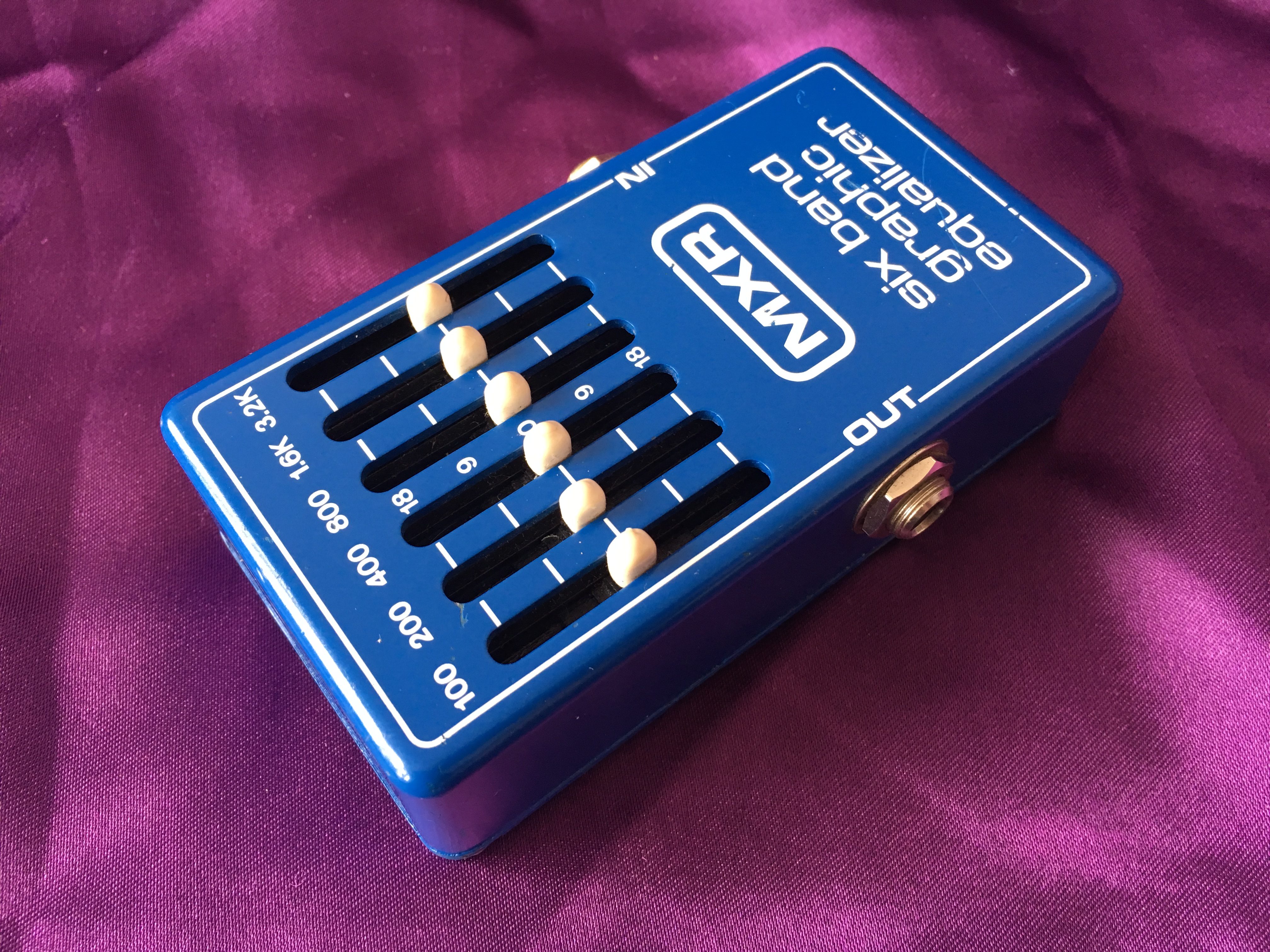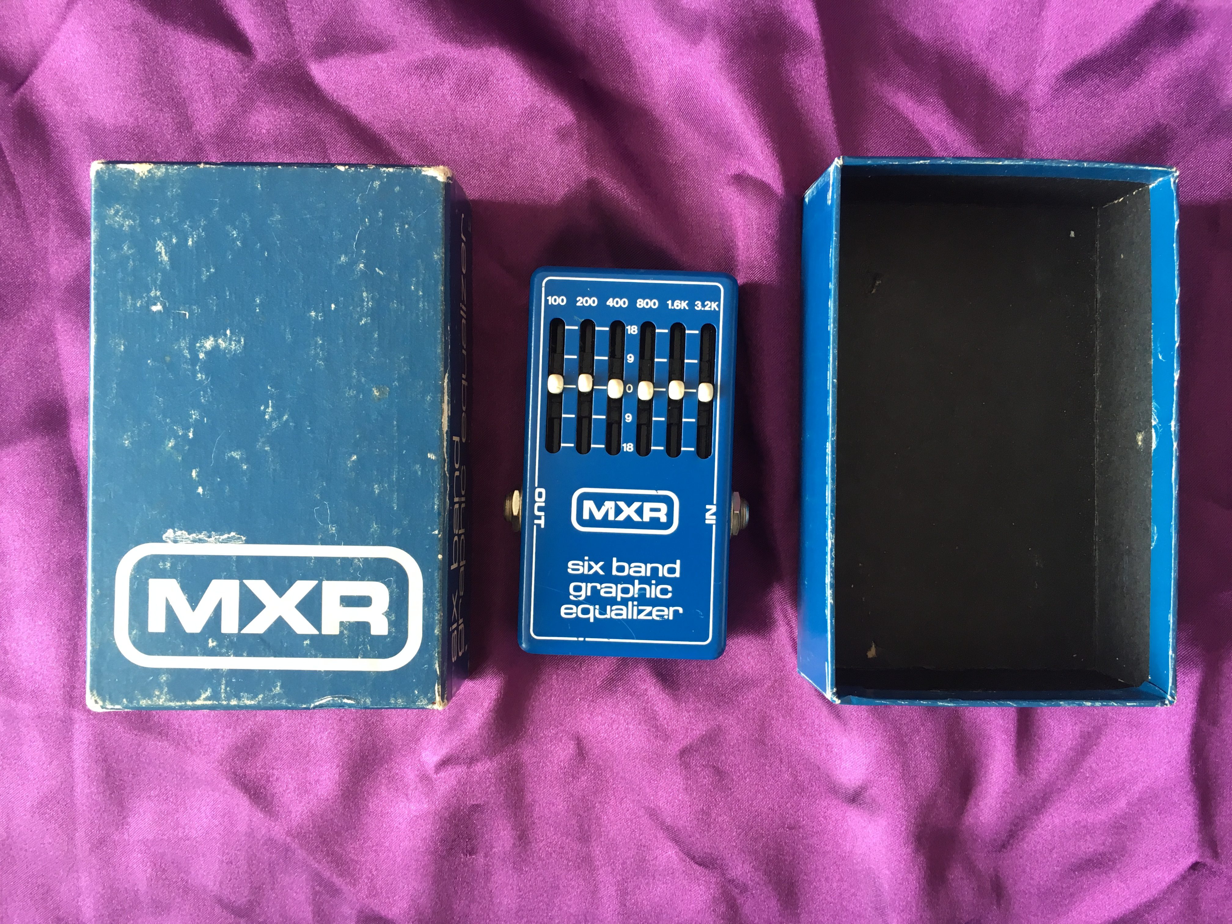 Here is something a bit leftfield and a welcome contrast to more familiar, ubiquitous effects. For your perusal is a neat 1981 MXR Six Band Graphic Equalizer (MX‑109) in classic blue and white. The date of manufacture is ascertained by the standardised coding on the CTS‑made slider array in the same way as for a normal pot, which is just as well, as MXR’s serial number system doesn’t help to determine its age. Early MXR pedals have their downsides including battery‑only operation and this one is no different. Without a footswitch, the ‘effect’ is ‘always on’ when in use. This means that, if you want a radical change of tone mid‑performance, the 6BGE really needs to be switched externally as part of an effect loop. The pedal’s impact on a guitar’s tone can be as minimal or as pronounced as you want, with massively versatile amounts of cut and boost at well‑chosen frequency intervals including the all‑important 800Hz band for guitar. Some users say that the analogue circuit can be noisy (no surprise if all faders are maxed out!), that there aren’t enough bands (in which case, go for the 10‑band EQ!) and that there is no master gain setting (erm… OK). What surprised me is that there are some really great sounds to be had from what is a simple and very effective piece of kit. You can either experiment to your heart’s content or set it to your meet your needs and forget it. The 6BGE is easy to use and it does just what you would expect it to, all with minimal fuss. This robust little stomp box is in superb all‑original condition and doesn’t show its age at all. To add to its authenticity, this one even comes in its original cardboard box with the matching serial number – bonus. While it’s probably not a mainstream or a ‘must have’ pedal, it is pretty darn cool, typically quirky and also relatively rare, especially in great condition. The 6BGE is fun to have and can be useful as part of your broader sonic arsenal.