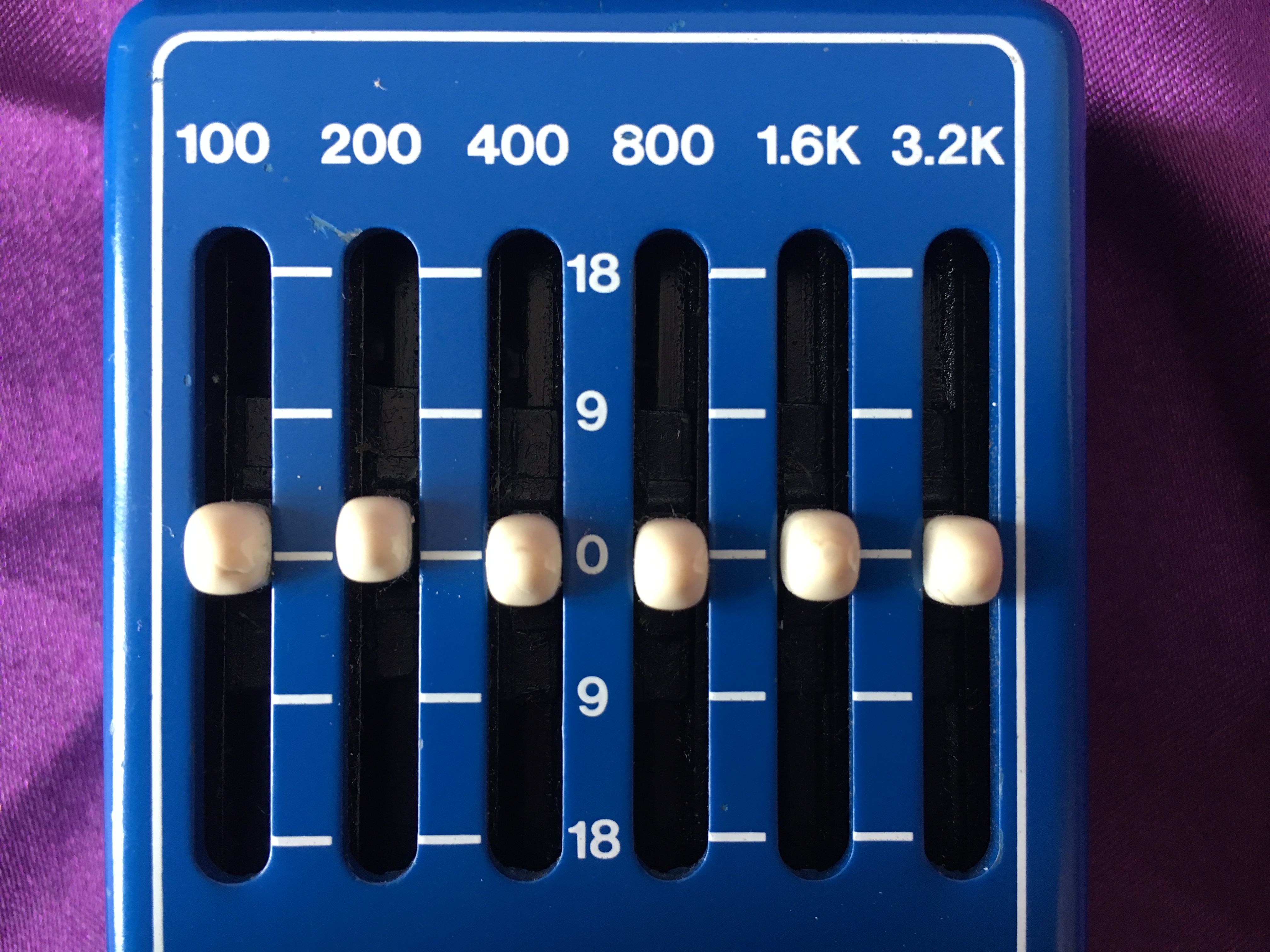 - Six slider controls used to boost or cut specific frequency bands (100Hz, 200Hz, 400Hz, 800Hz, 1.6KHz, 3.2KHz) by ±18Db
