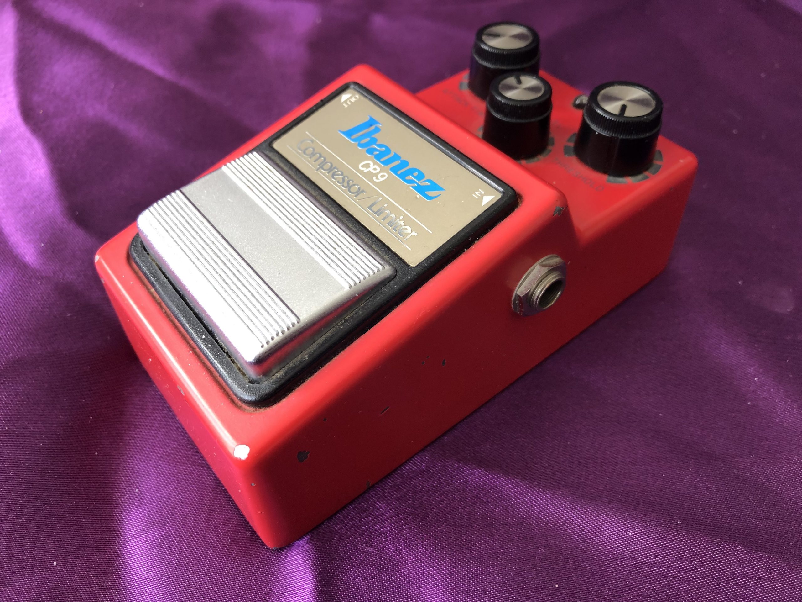 The Ibanez CP9 Compressor/Limiter is one of the ‘9’ series effects, manufactured in Japan by partner company Maxon between 1981 and 1984. The CP9 was introduced to replace the Ibanez CP‑835 Compressor II, which had the familiar square footswitch of the earlier ‘0’ series pedals. In the early 1980s, the CP9 was up against stiff competition from the likes of the MXR Dyna Comp and the BOSS CS‑1. The CP9, however, got a boost to its reputation because of its association with Pink Floyd guitarist David Gilmour. Compressors are often not the most obvious effect pedals to choose because they are relatively subtle and don’t have the more in‑your‑face impact of other effects. At its most basic, a compressor gives a more studio‑like ‘produced’ sound by cutting the peaks and boosting the troughs of a signal. The result seems to smooth out the dynamics of a signal and gives the impression of longer sustain. Quite often, it is one of those effects that is best left on, as the difference really becomes most apparent when the effect is switched off. Although the CP9 has not yet been reissued by Ibanez, original CP9s are relatively common but have become increasingly collectable and therefore pricier on the vintage effect market.
