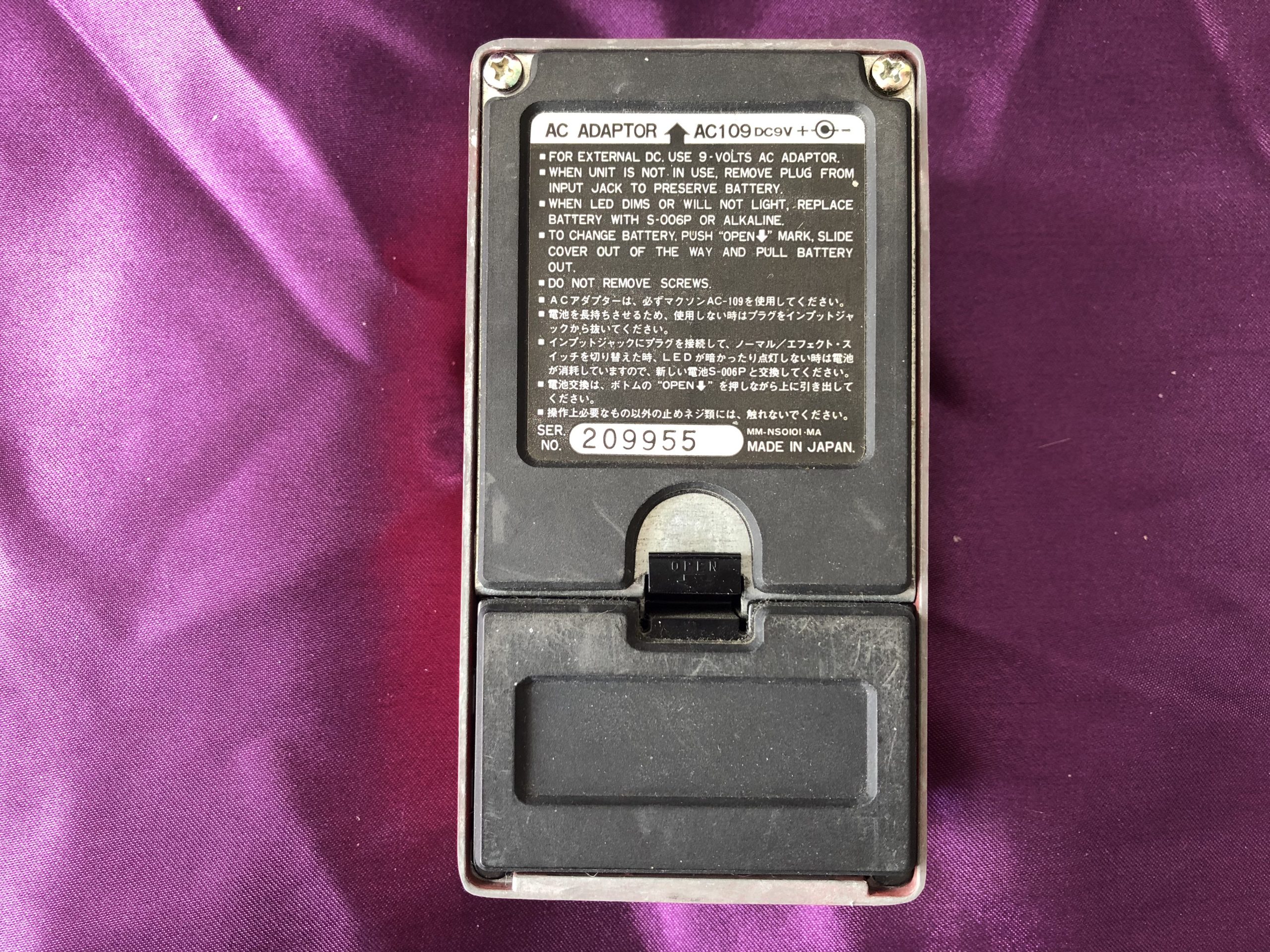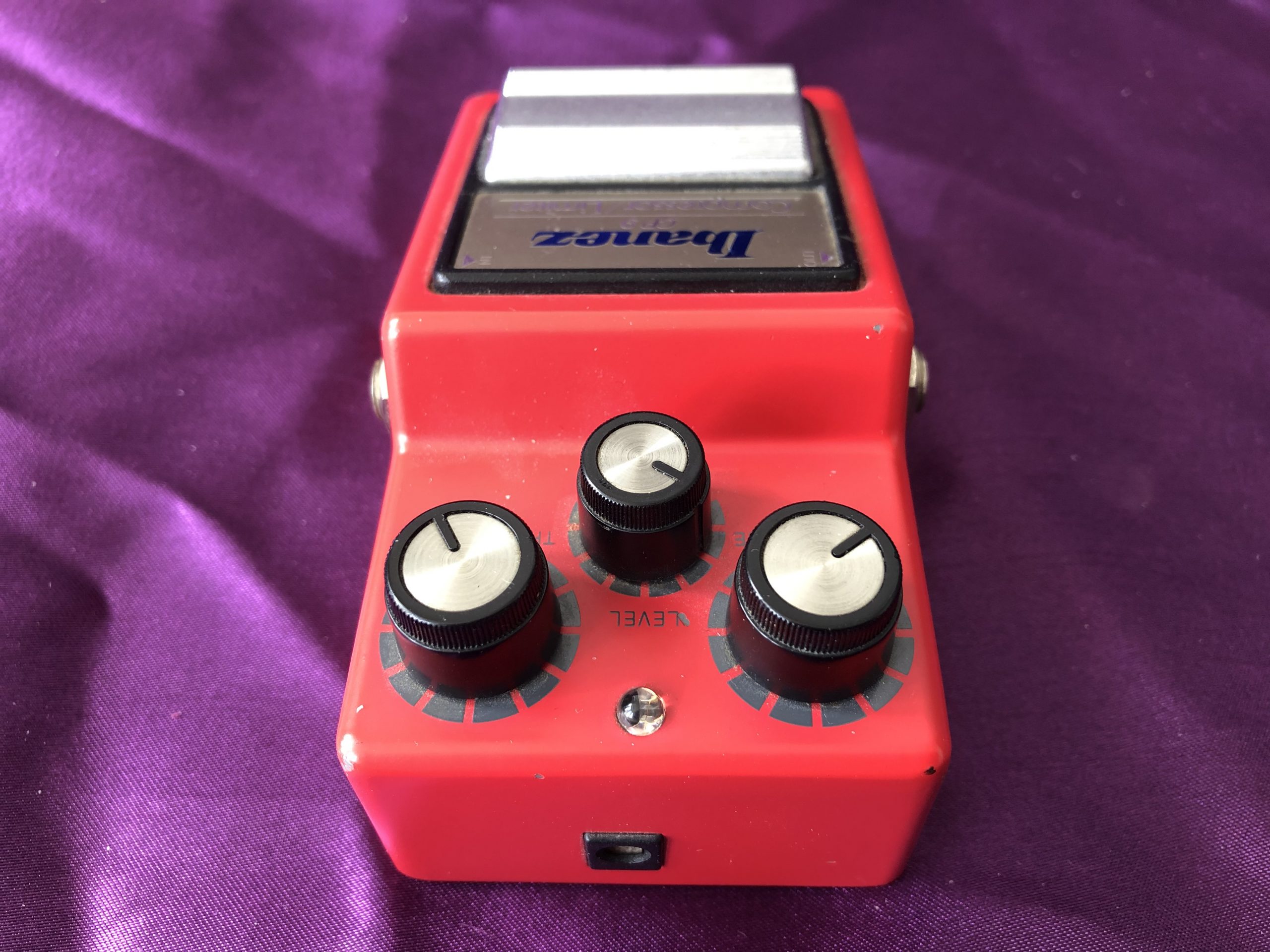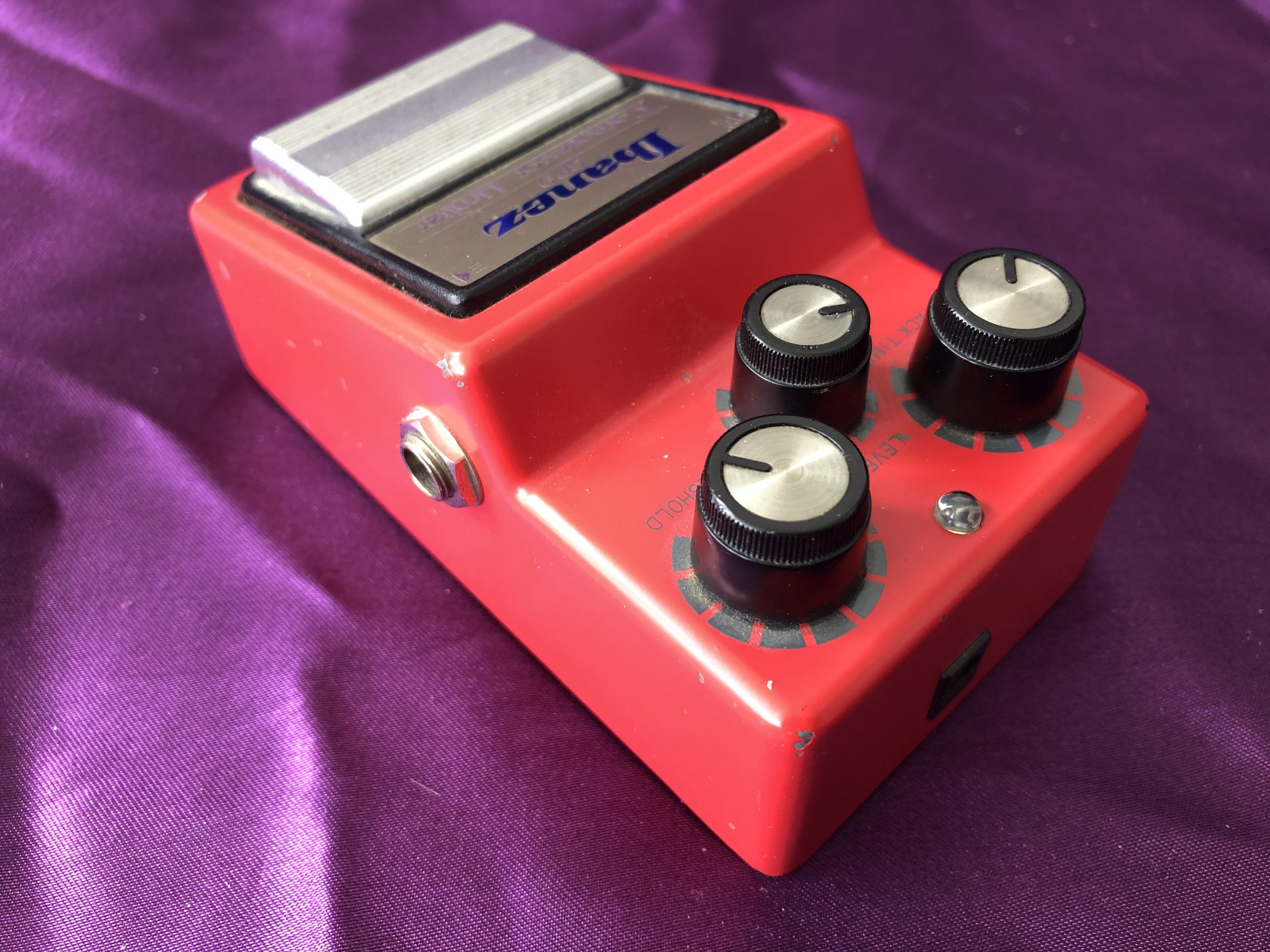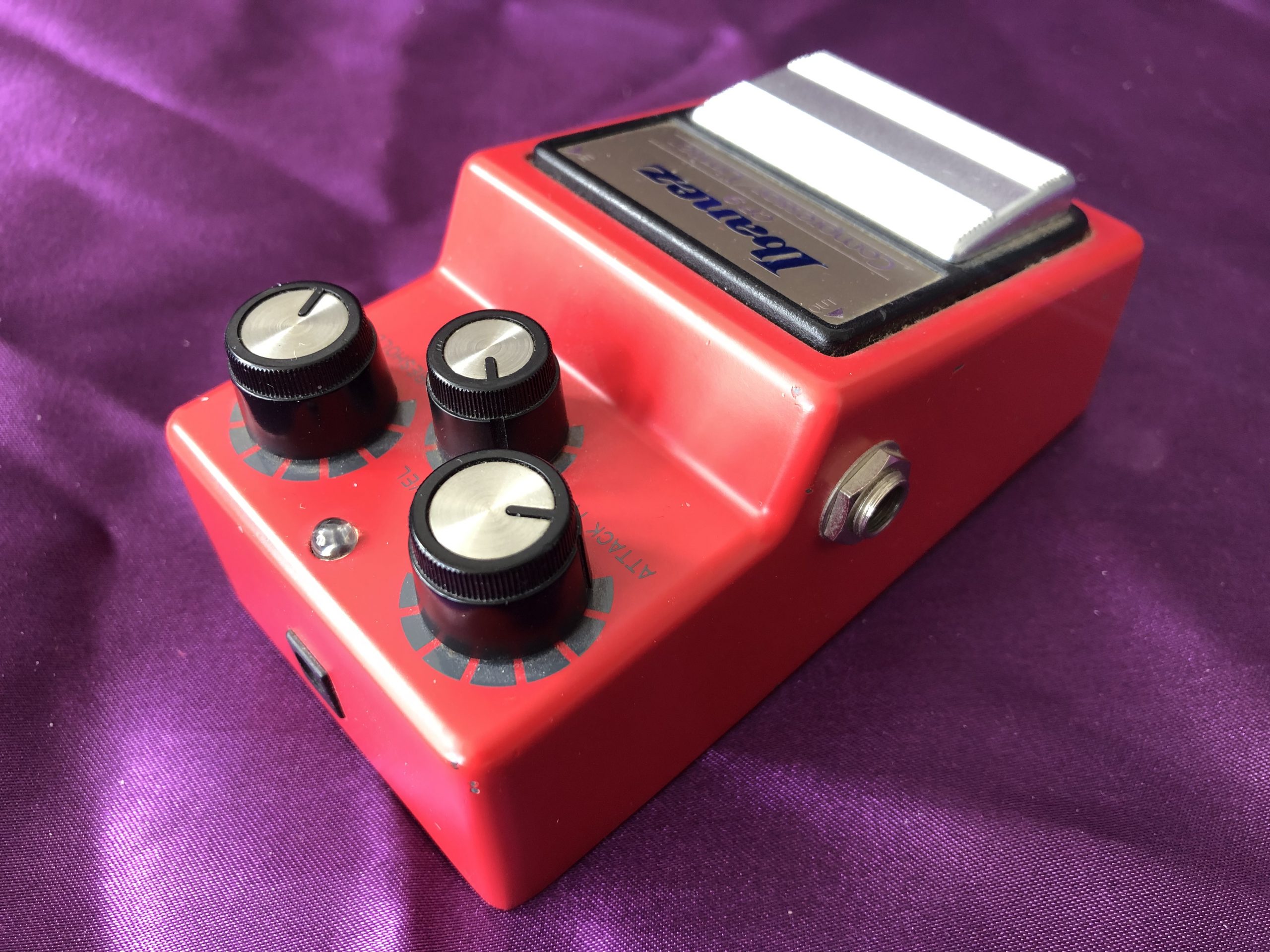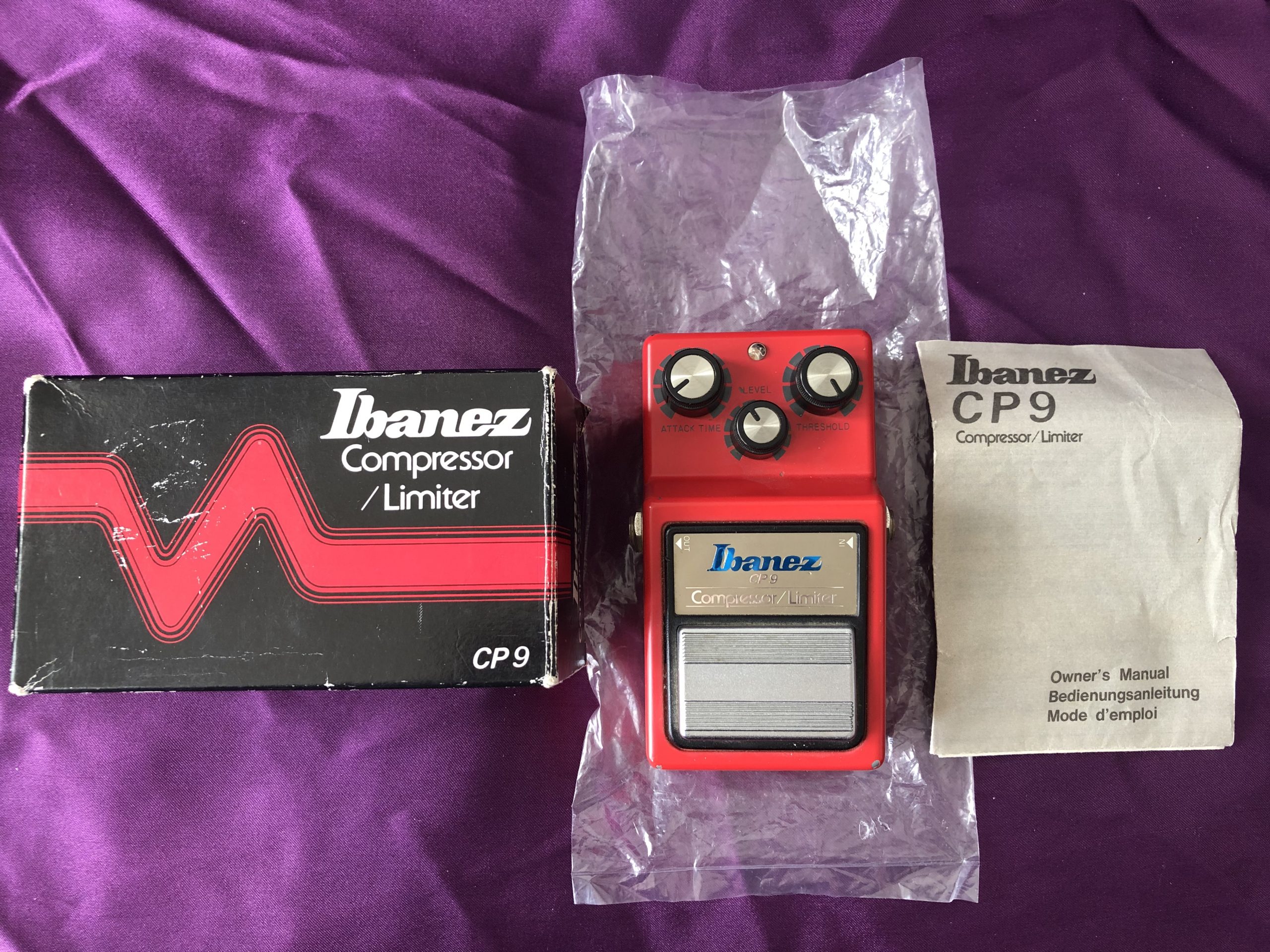 Here we have a near‑mint 1982 Ibanez CP9 Compressor/Limiter, complete with its original box and instruction manual. The latter make no difference to use or the sound but are nevertheless nice to have. This particular example is in amazingly good condition with only a few tiny surface marks to indicate that it isn’t actually brand new. All the features of the original pedal are intact, including the black ‘Made in Japan’ label on the baseplate and the Maxon‑branded battery cover. Even the often‑replaced battery clip is present and correct. In operation the all‑analogue CP9 is quieter and more refined than the benchmark MXR Dyna Comp. It is also more flexible with its separate controls for ‘Attack Time’ and ‘Threshold’, in addition to the common output ‘Level’ knob, which can also be used to boost a signal without affecting tone. Sound wise, this Ibanez is excellent with a lovely blooming clean sustain. It doesn’t necessarily clip the attack in the same way as some more extreme compressors do although it does have that smooth, studio‑like sound that makes a good stomp box compressor stand out from the crowd. The CP9, like its peers, is probably one of those pedals you set and forget – leave it on and just play. Its effect is both effective and subtle. It is easy to understand why David Gilmour had a preference for the CP9 to help achieve his signature sound. If you are after a prime vintage example of the breed, you can’t get much better than this. Shush, can you hear something?