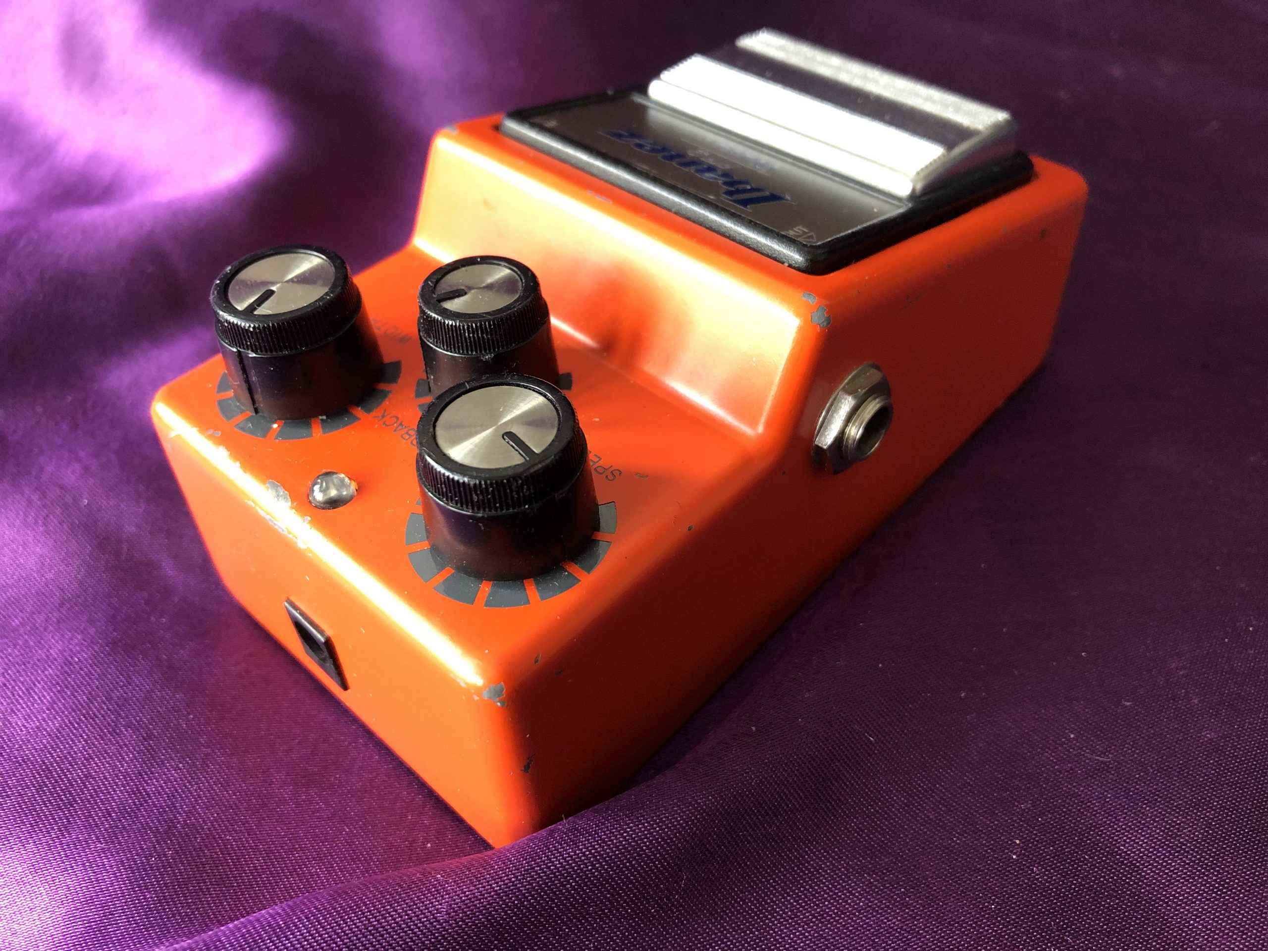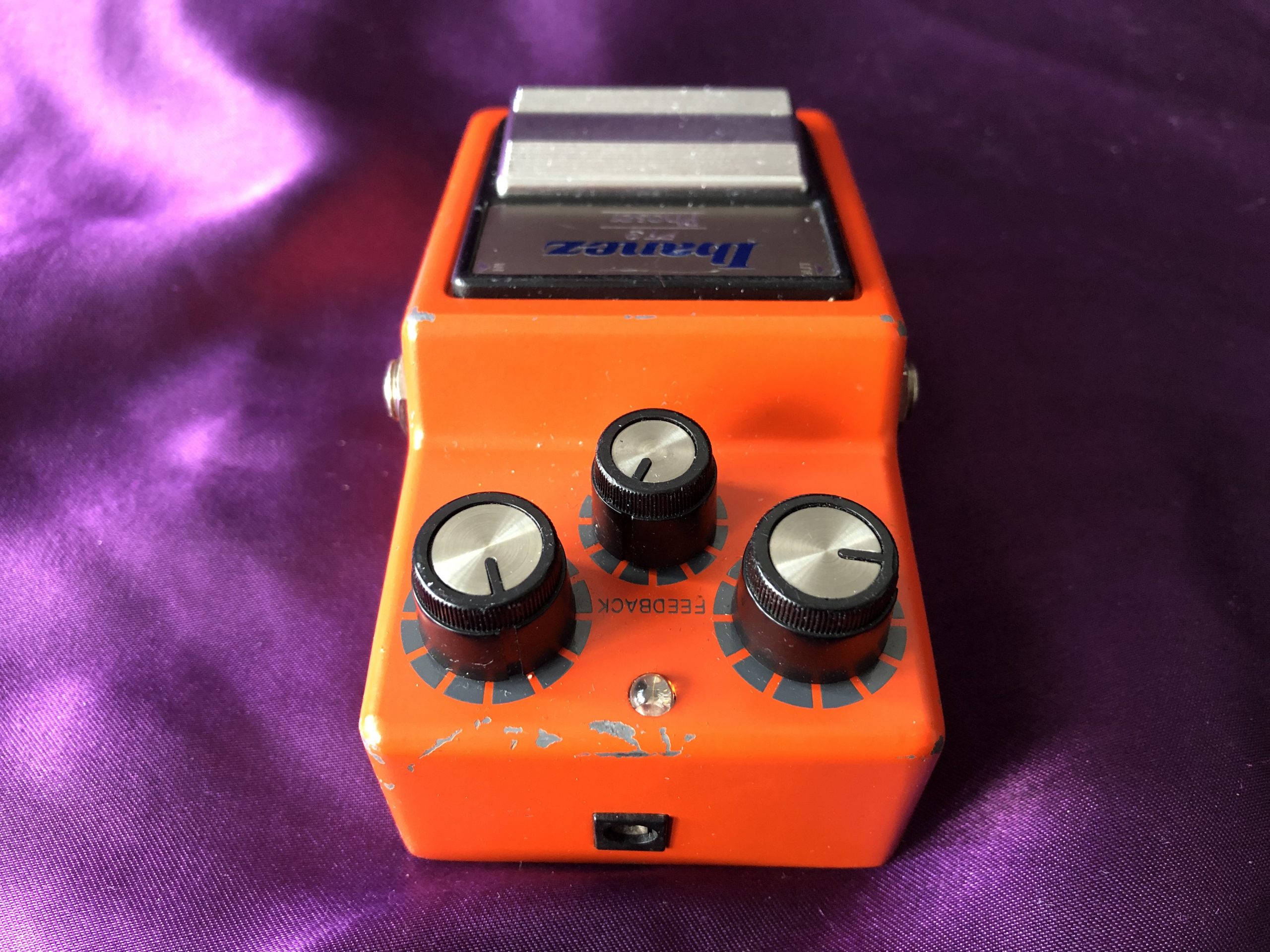 While the celebrated TS‑808 Tube Screamer was the king of the Ibanez crop, the PT9 was, to be honest, a competent but fairly average phaser of the time. Acquiring it was, to some extent, opportunistic and partly a gap‑filling exercise. Adding it to the ‘collection’ confirmed my suspicions that the PT9 wasn’t a premium class leader that had somehow slipped under the radar. The pluses include a lovely chiming sound to treble strings, while the lower strings can become a bit thick and muddy if pushed too hard. Used in the right circumstances, however, and its pulsing swooshes make for a very nice analogue vintage timbre. The smooth, warm tones are devoid of the typical sibilance common to newer digital phasers. Sounds are easy to dial in and are predictably lush. This example is in very good overall condition for its several decades of use, with just a few superficial scuff marks here and there but nothing of any concern. The black ‘Made In Japan’ base label is intact and identifies it to 1982. The advantage of moving away from the PT9’s main competitors is that it might just sound different enough to be unfamiliar. While the PT9 may not get you overly‑excited about its sonic signature, it is certainly a very capable and represents a genuine classic effect that modern phase pedals just can’t seem to emulate. The original 1980s pedals were clearly a good phase for Ibanez.