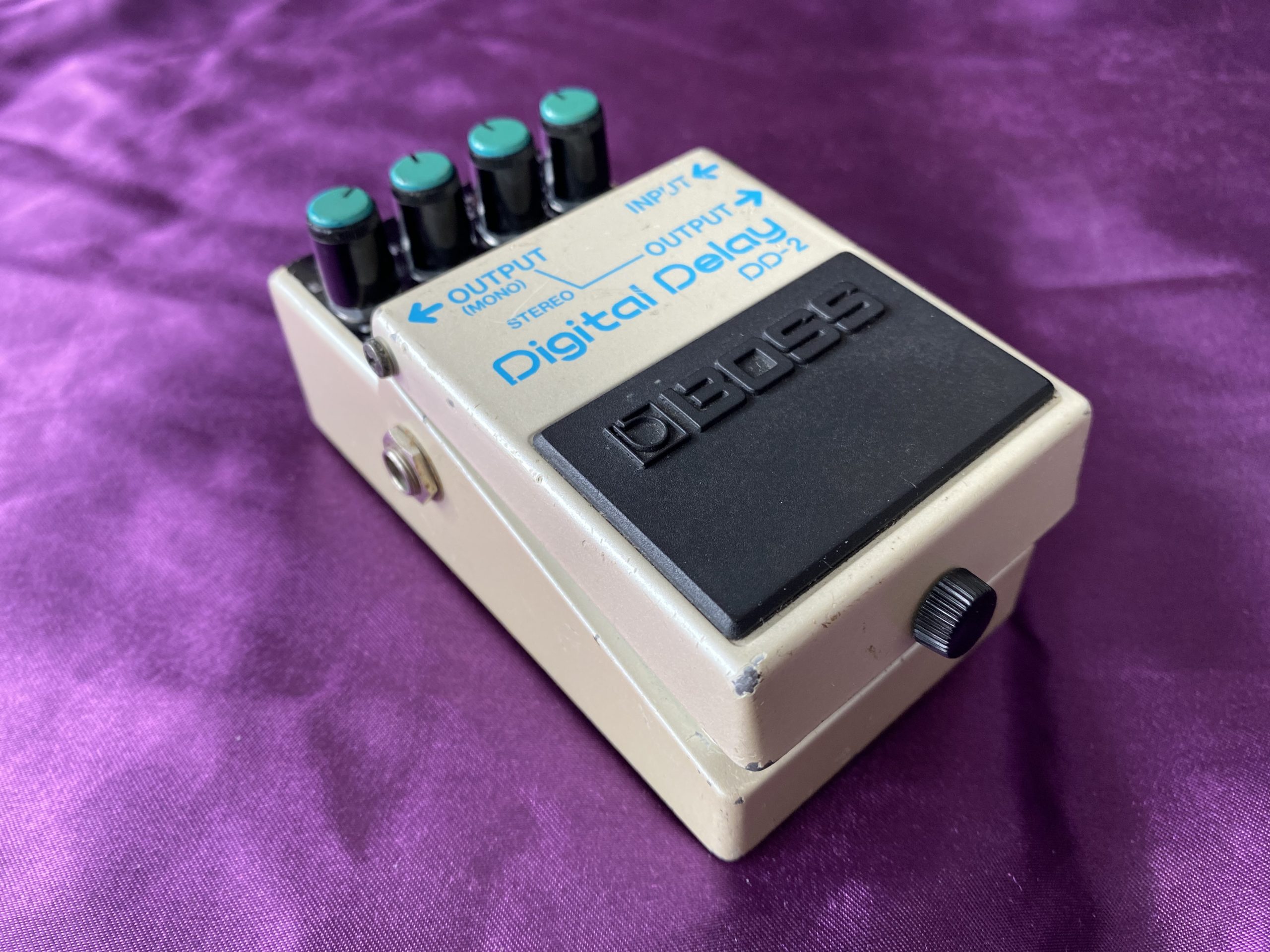 The Japanese BOSS DD‑2 Digital Delay was the world’s first commercial compact digital delay pedal, introduced in December 1983 by Roland. In case you are wondering, there wasn’t a DD‑1. The custom integrated circuit (IC) at its heart derived from the flagship Roland SDE‑3000 studio rack delay unit. For tech‑heads, the IC uses 12‑bit digital converters, resulting in a flat frequency response from 40Hz to 7kHz. It was a tight fit but BOSS designers found that they could just about accommodate the IC and associated electronic components into the standard BOSS enclosure. The delay range was far greater than the analogue circuits could achieve and the fidelity of the repeats was significantly clearer as well. The trick that BOSS pulled off was to retain a guitar‑friendly tone that wasn’t overly tainted by digital artefacts. The warm tone is widely attributed to what is called the circuit’s 64‑pin ‘long chip’ (as opposed to later ‘square chip’ – nothing to do with delay time), which processes the delayed signal to mimic the natural decay of the echoes. As a result of its approach, the DD‑2 rapidly set the industry standard for delay effects that, to a great extent, signalled the demise of analogue delays for some time, including BOSS’ own classic DM‑2 and DM‑3. The DD‑2 was usurped by an updated but very similar model, the DD‑3 in August 1986. Many commentators say that they sound different, rather than one being better than the other. Visually, mainly to do with the four mini‑knobs, the DD‑2 shares more with modern BOSS pedals than its early forebears. The rest, as they say is history and BOSS has continued to develop their Digital Delay technology over numerous generations of the DD line up to the present day. Supplies of the original DD‑2 are still fairly plentiful and relatively affordable. I predict that, although some may see the DD‑2 as tainted by its digital processing, it will become recognised as a milestone effect and increasingly collectable as time passes.