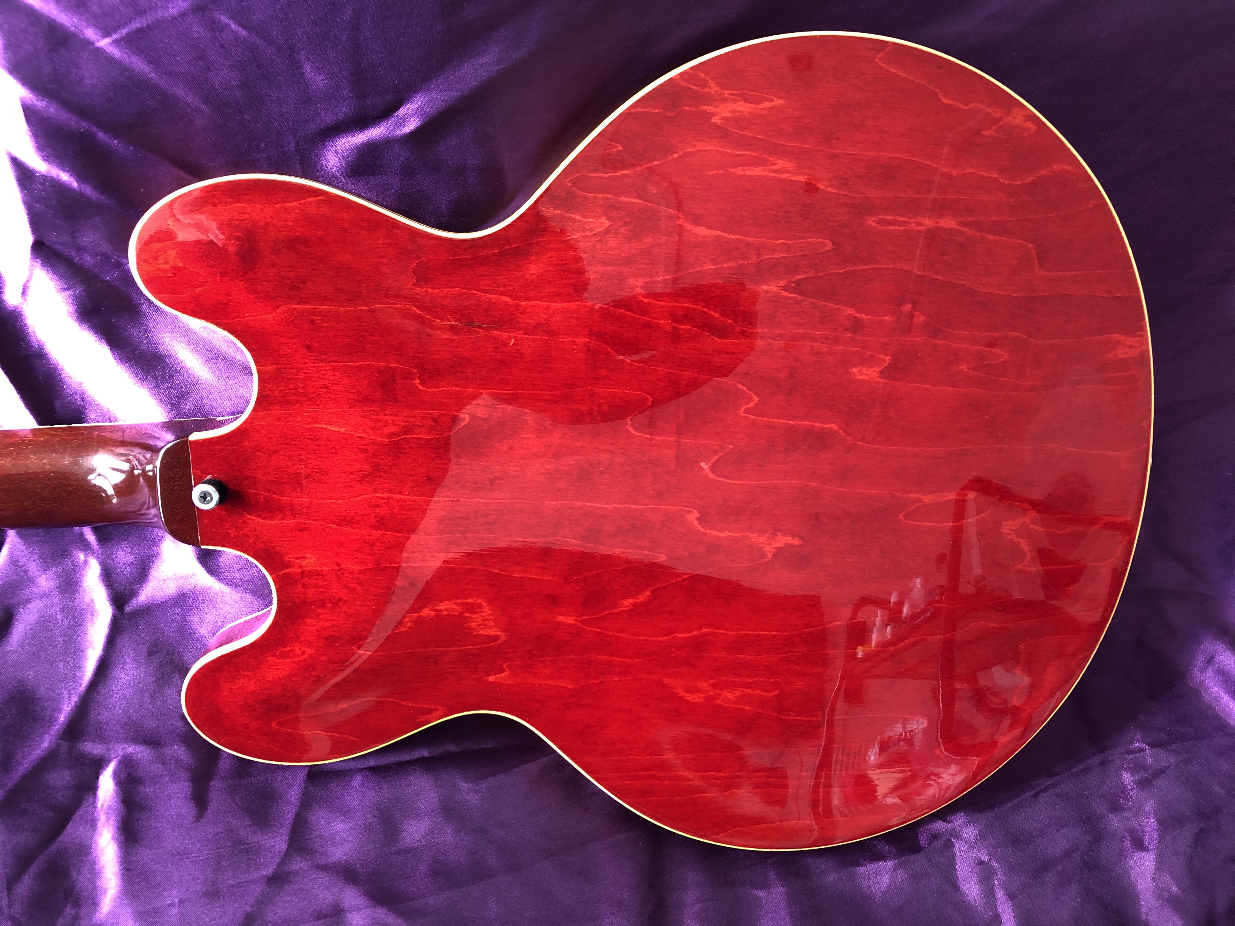 - Fully hollow bound maple laminate body with unbound twin f-holes