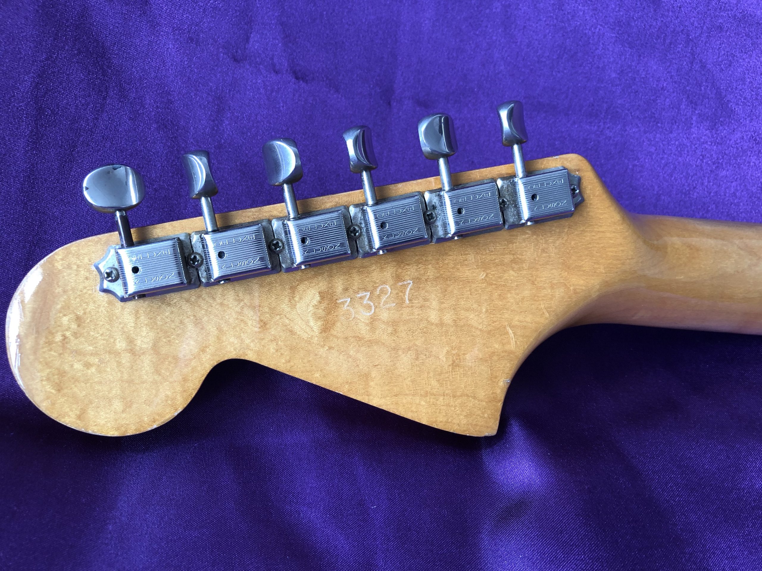 - Original Fender bridge, vibrato tailpiece and vibrato arm – Fender’s ‘infamous’ bridge mute is intact including the foam (now hardened) – not fitted and comes with the guitar