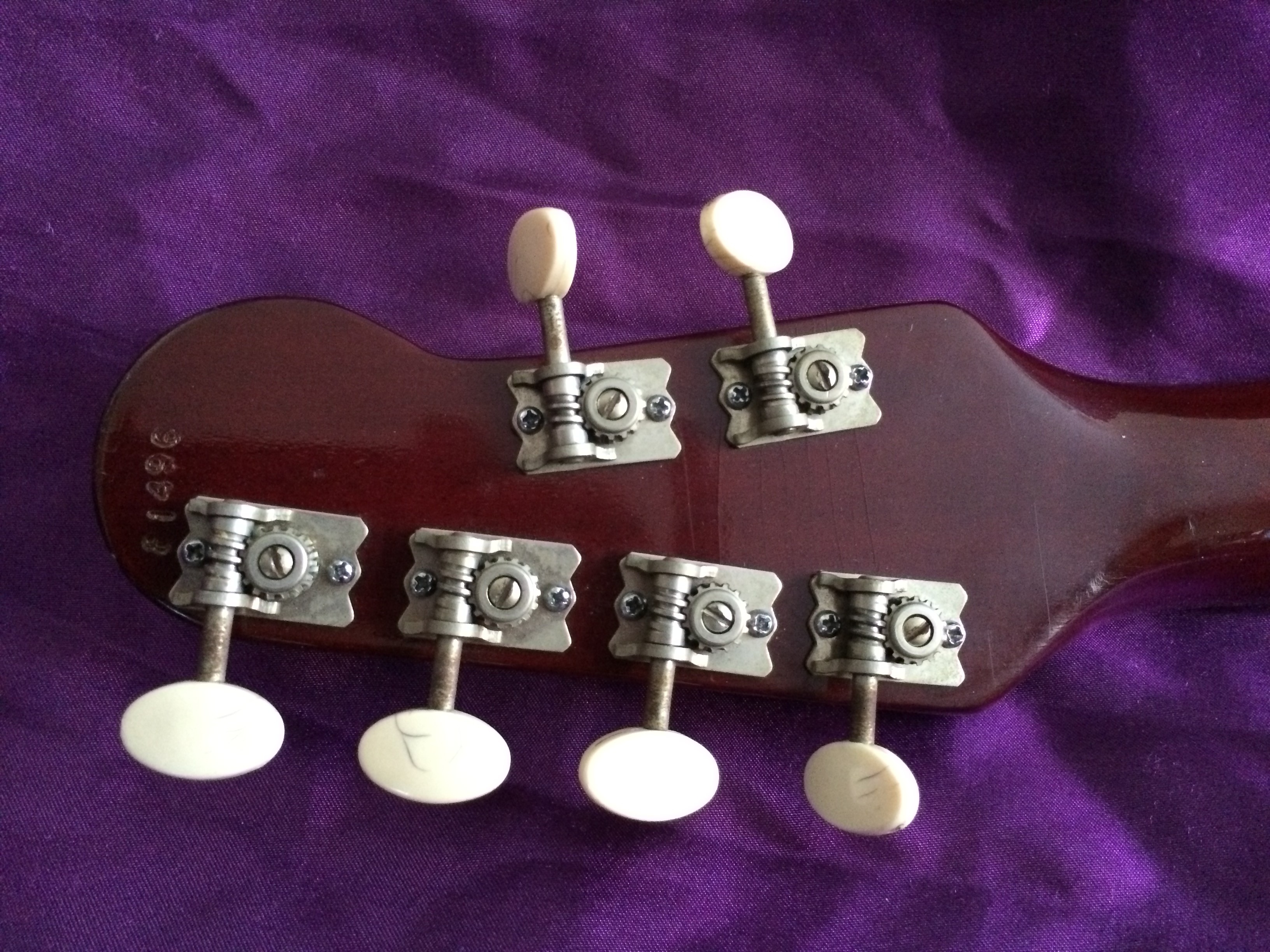 - Original nickel plated open tuners in 2+4 configuration with white oval buttons