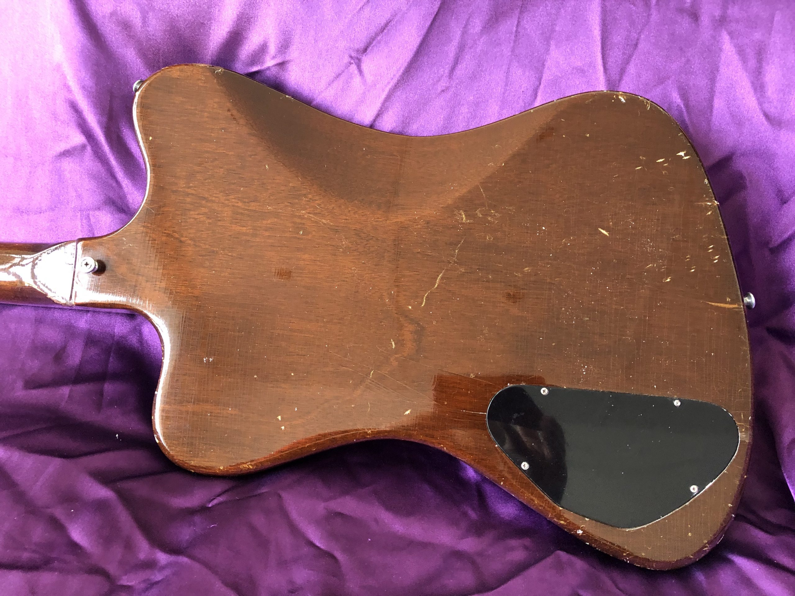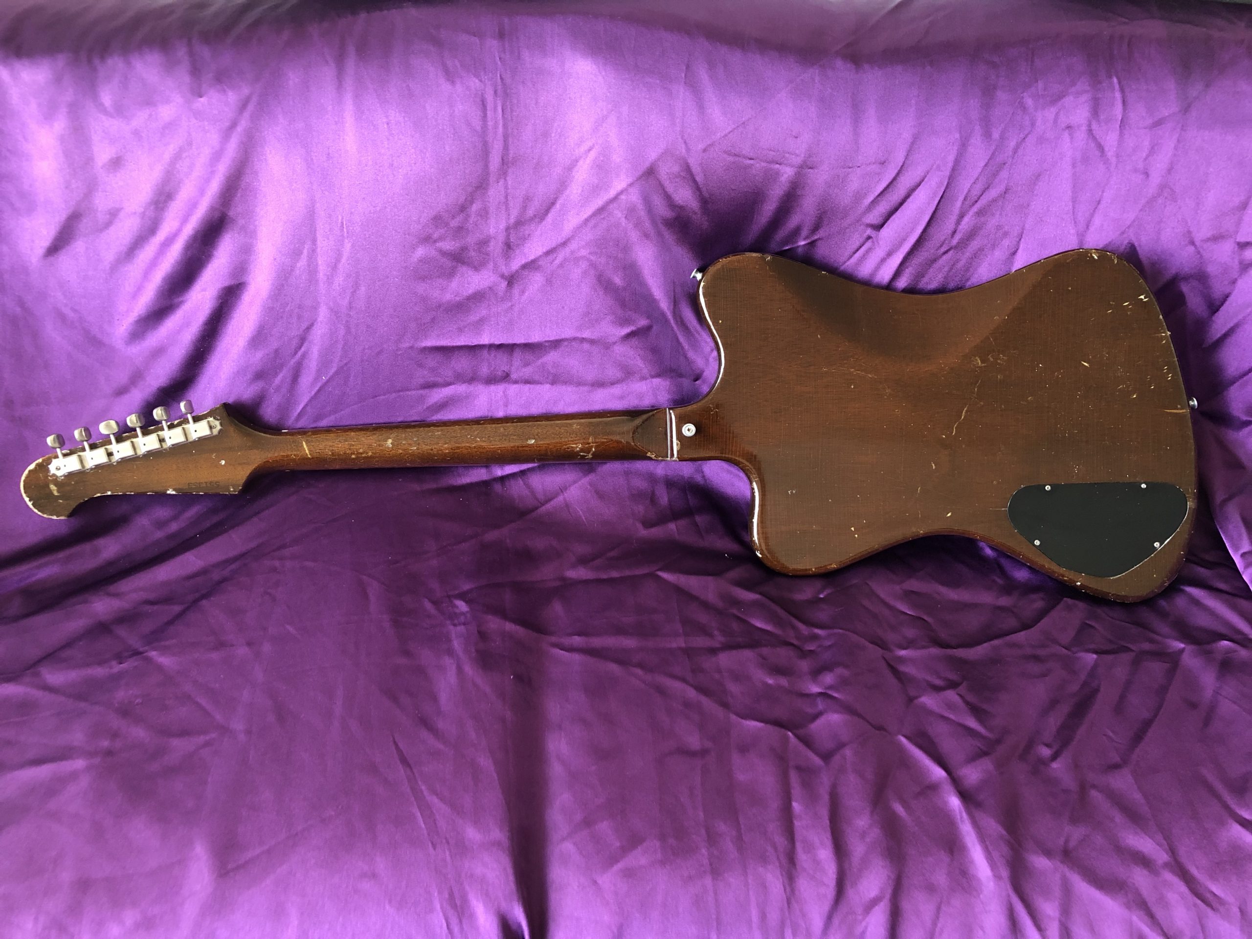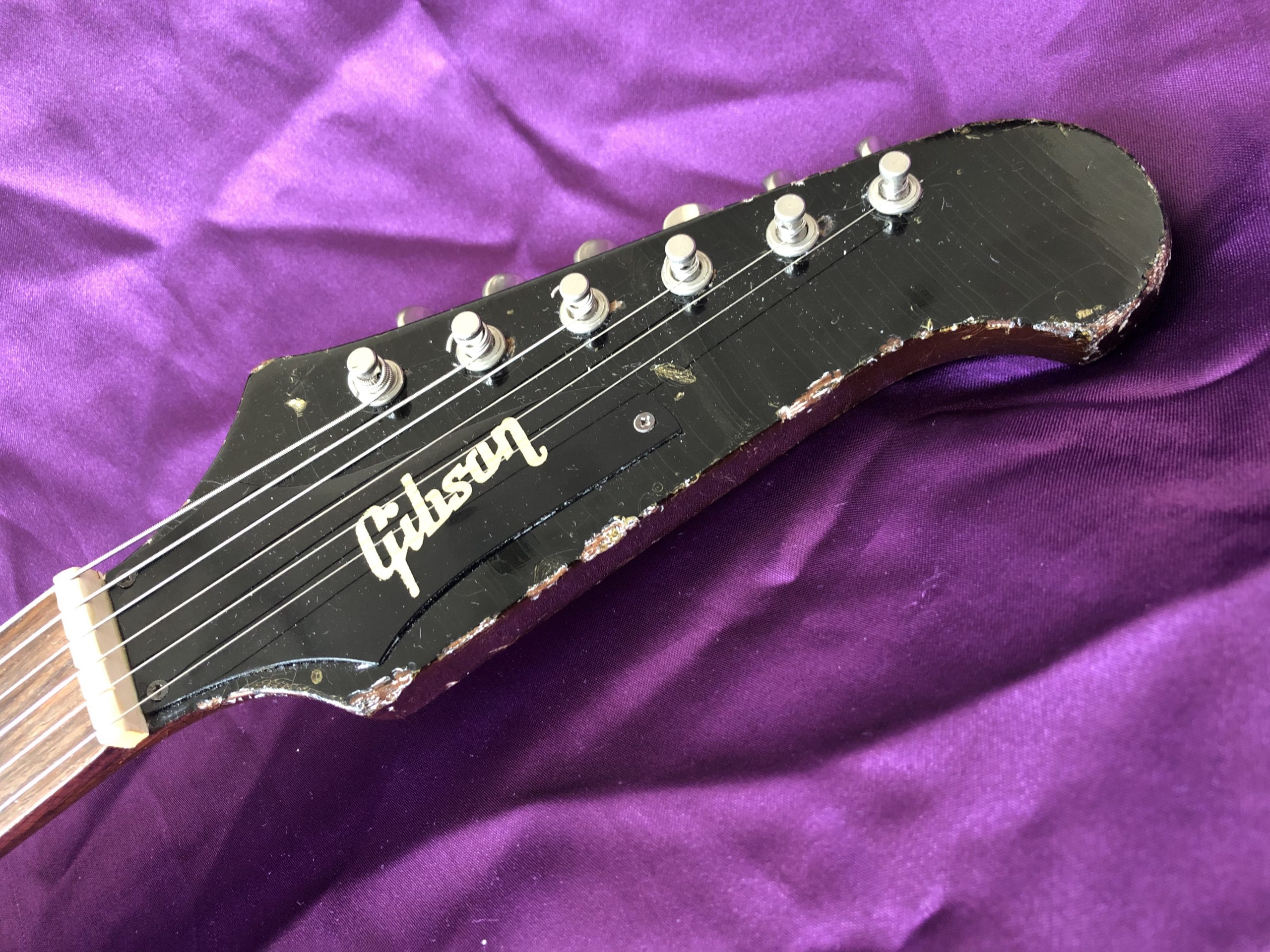 Gibson had a few hits and misses during their so‑called ‘golden era’. While the ES‑series proved successful, the modernistic Explorer and Flying V from 1958 had failed commercially. Even though hugely popular now, the single cutaway Les Paul had been discontinued in 1961, also due to poor sales and its replacement, the SG, didn’t catch on immediately. In 1962, Gibson President Ted McCarty persuaded legendary Chrysler automotive designer Ray Dietrich to come out of retirement and use his experience to develop a ground‑breaking new guitar, the ‘reverse’ Gibson Firebird, introduced in mid‑1963. Initial sales weren’t high and Fender complained about design infringements. In addition, the Firebird was a difficult and expensive guitar to manufacture and in 1965, Gibson replaced the original design with a more traditional ‘non‑reverse’ body. The new slab body was a single piece of mahogany and had a normal set neck rather than the through‑body neck with body ‘wings’ of the ‘reverse’ model. The new neck had a standard headstock and normal tuners rather than the earlier inverted headstock and ‘banjo‑style’ tuners. The V and VII models retained mini‑humbucking pickups while the I and III models now featured regular P90 single coil pickups (2 or 3 respectively). There was even a 12‑string Firebird released in 1966, along with custom colour finishes as factory options. Sales did not improve significantly and the ‘non‑reverse’ Firebird was discontinued in 1969. Both Gibson and its subsidiary Epiphone have re‑issued the Firebird since the 1990s and the line‑up has included both ‘reverse’ and ‘non‑reverse’ models. Vintage Gibson Firebirds, particularly the early ‘reverse’ body shape have become highly collectable and expensive. Of the ‘non‑reverse’ models, the mini‑humbucker‑equipped guitars in custom colours are the most highly sought after.