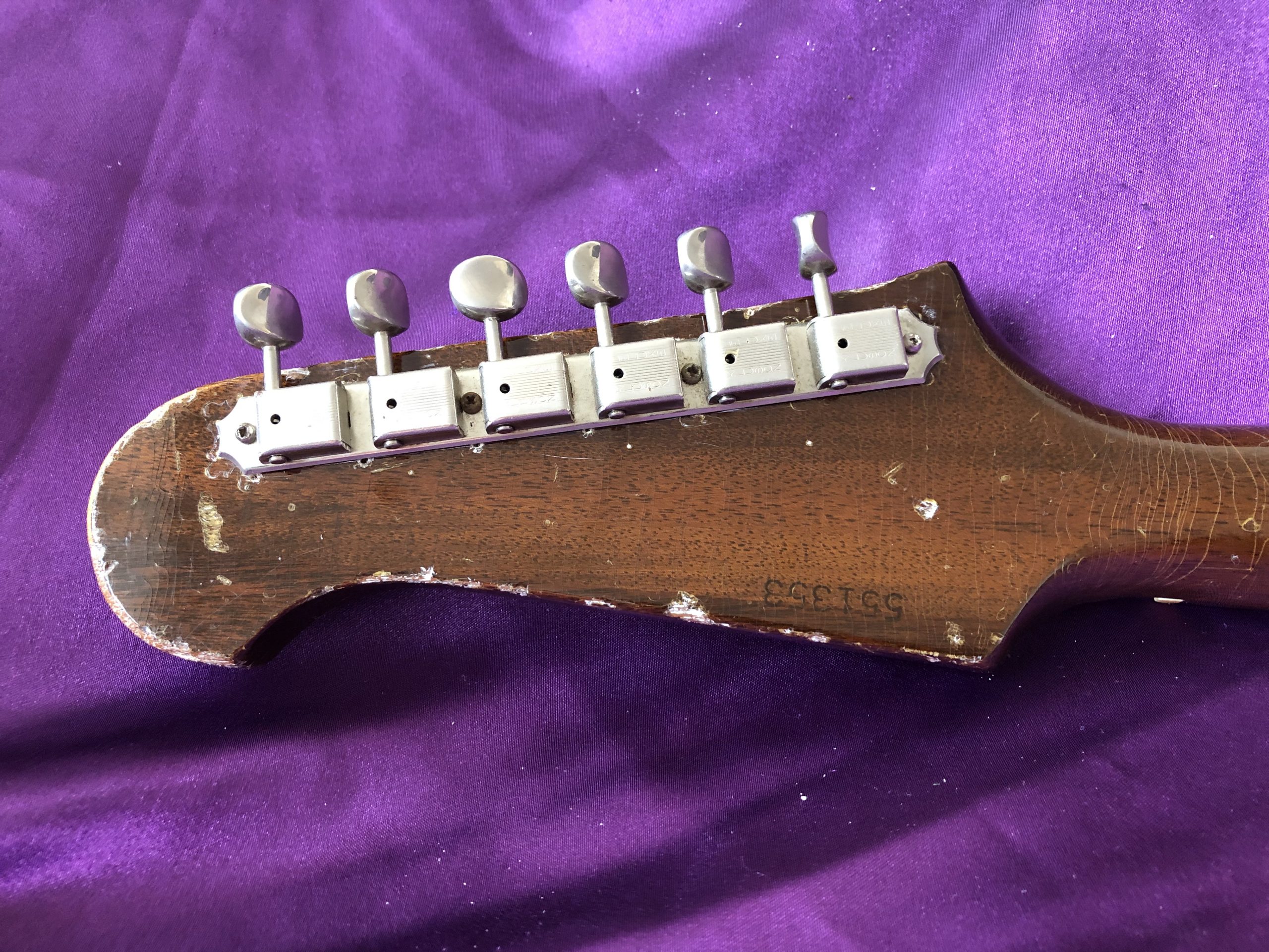 - Original slide switch, pots and knobs, strap buttons, and jack socket