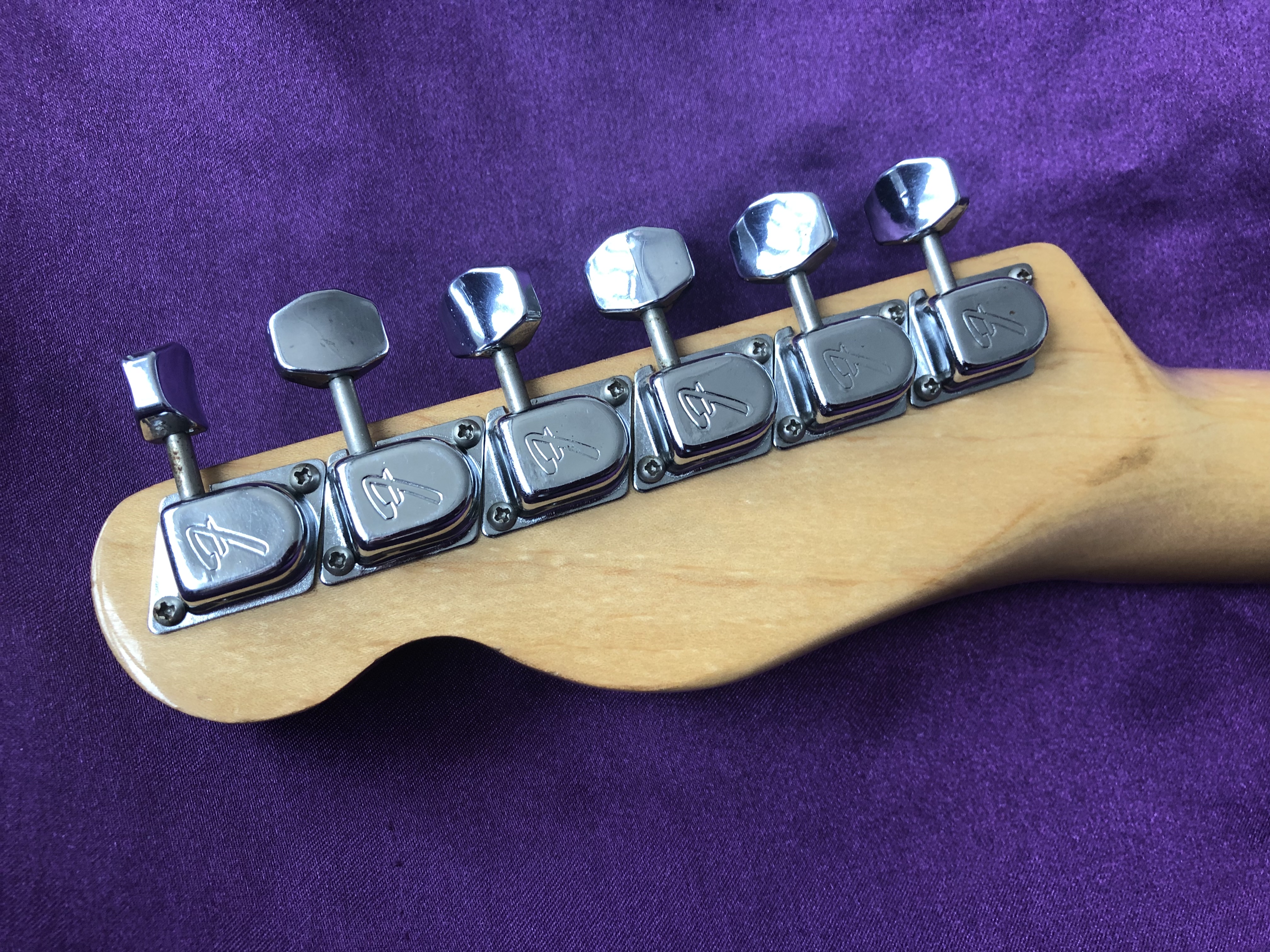 - Maple bolt-on neck (3-bolt ‘microtilt’ ‘F’ neck plate with serial number) and mahogany skunk stripe