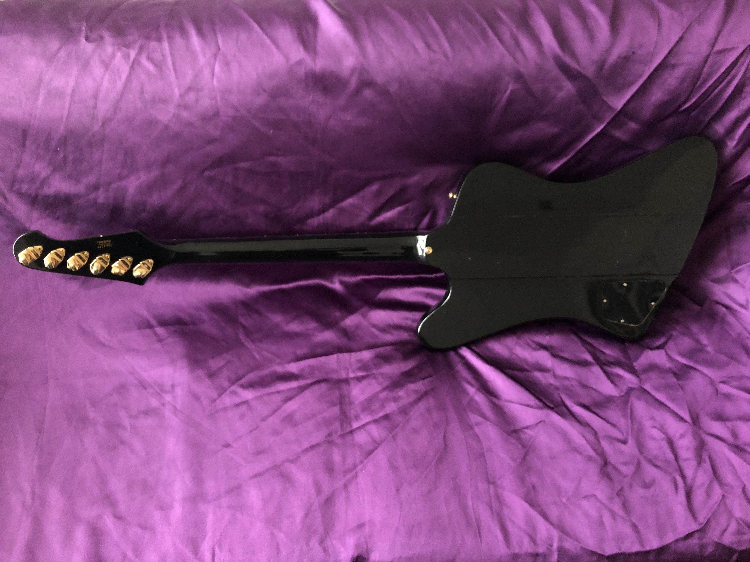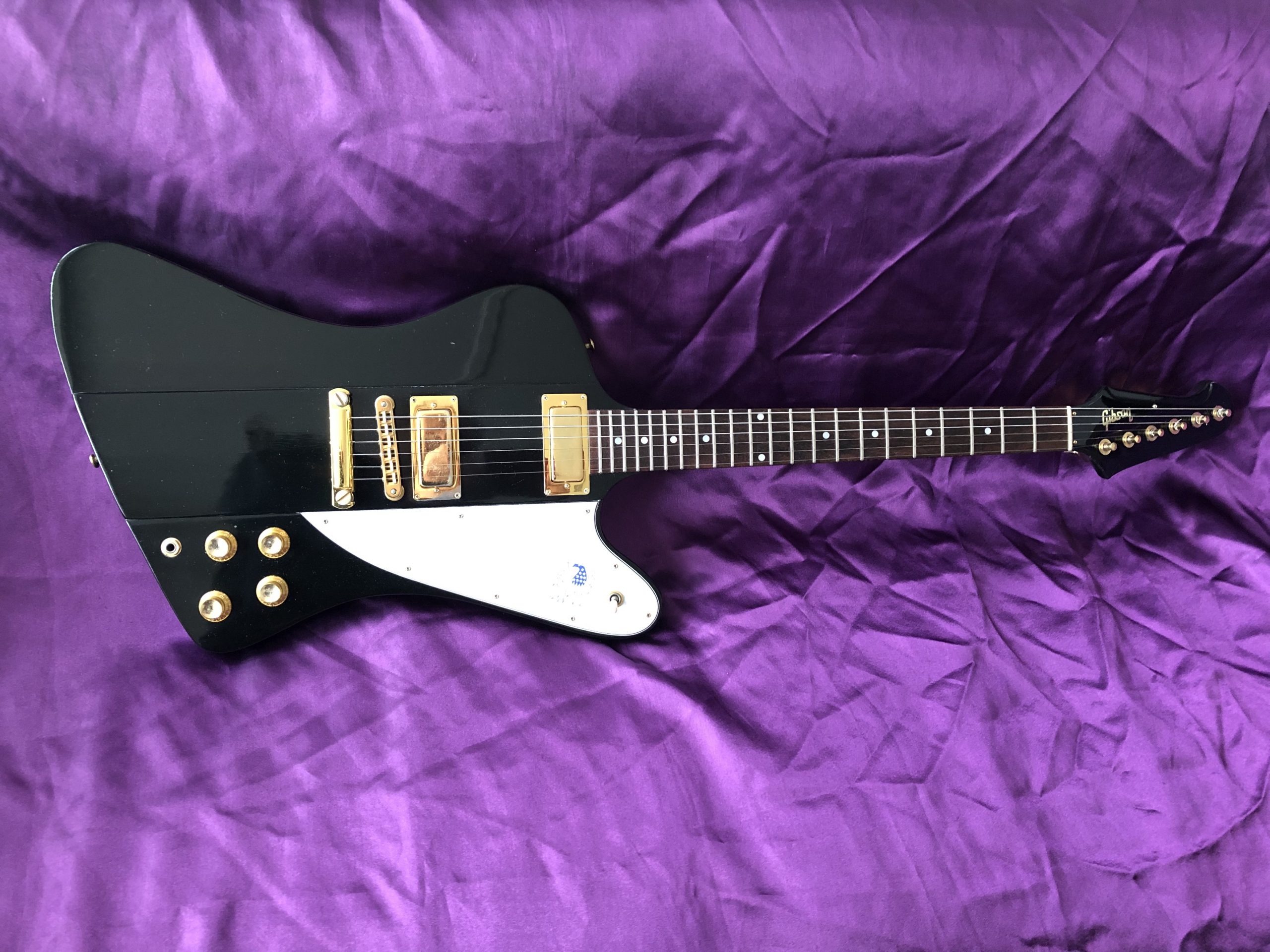 There were 2,847 Gibson Firebird Bicentennials made between 1976 and 1979. 1,277 were finished in ebony black, 1,254 in natural, 199 in tobacco sunburst and 117 in white. Of the ebony models, only 222 were made in 1976.