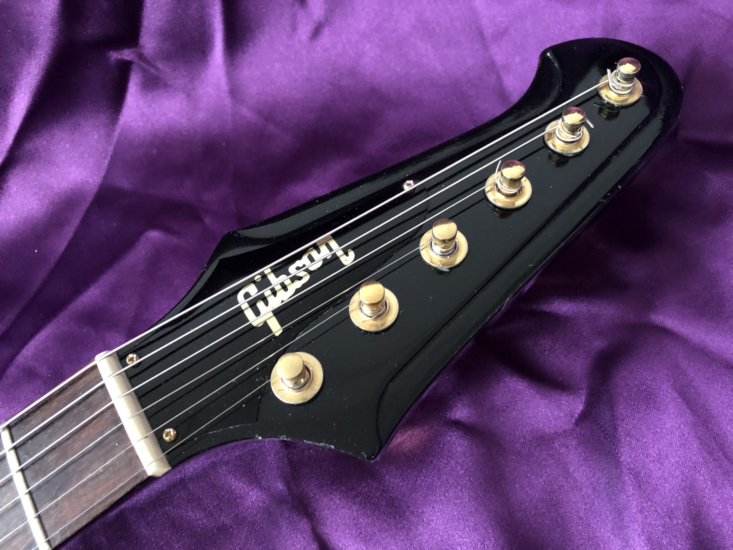 For your appreciation is an oh‑so‑cool, rare and relatively unusual black and gold ‘reverse’‑bodied 1976 Gibson Firebird Bicentennial. The reissue of the original 1964 Firebird design was released by Gibson to celebrate 200 years of American independence from the UK in 1776. This fine guitar is all‑original except for the switch tip, which is newer. The Bicentennial model is distinguished from other Firebirds by the unique blue and red phoenix logo on the white scratchplate complete with ‘76’ graphic and stars incorporated into the design. The ’00’ serial number and pot codes date this example to 1976 (NB. Bicentennials were made from 1976 until about 1978), so this is the most collectable of the breed. Other distinctive features include the neck‑through body construction, banjo tuners and the Firebird’s unique mini humbucking pickups, just like the originals. This Firebird is nice and light at 8lbs and in fantastic condition. It shows very little playwear – just a few very minor nicks, dings and scratches to add character without going too far. There are no breaks or structural issues of any sort and it hasn’t been tampered with. In fact it has been remarkably well looked after for its age. Once you get used to the fairly chunky neck, which feels further away than on some other guitars, it’s a great instrument to play. Despite relatively low DC resistance (c.6kohms), those unique Firebird pickups impart powerful, gritty biting tones, great for heavy metal, rock and blues. The perennial Firebird’s vintage reputation can only fly sky high.