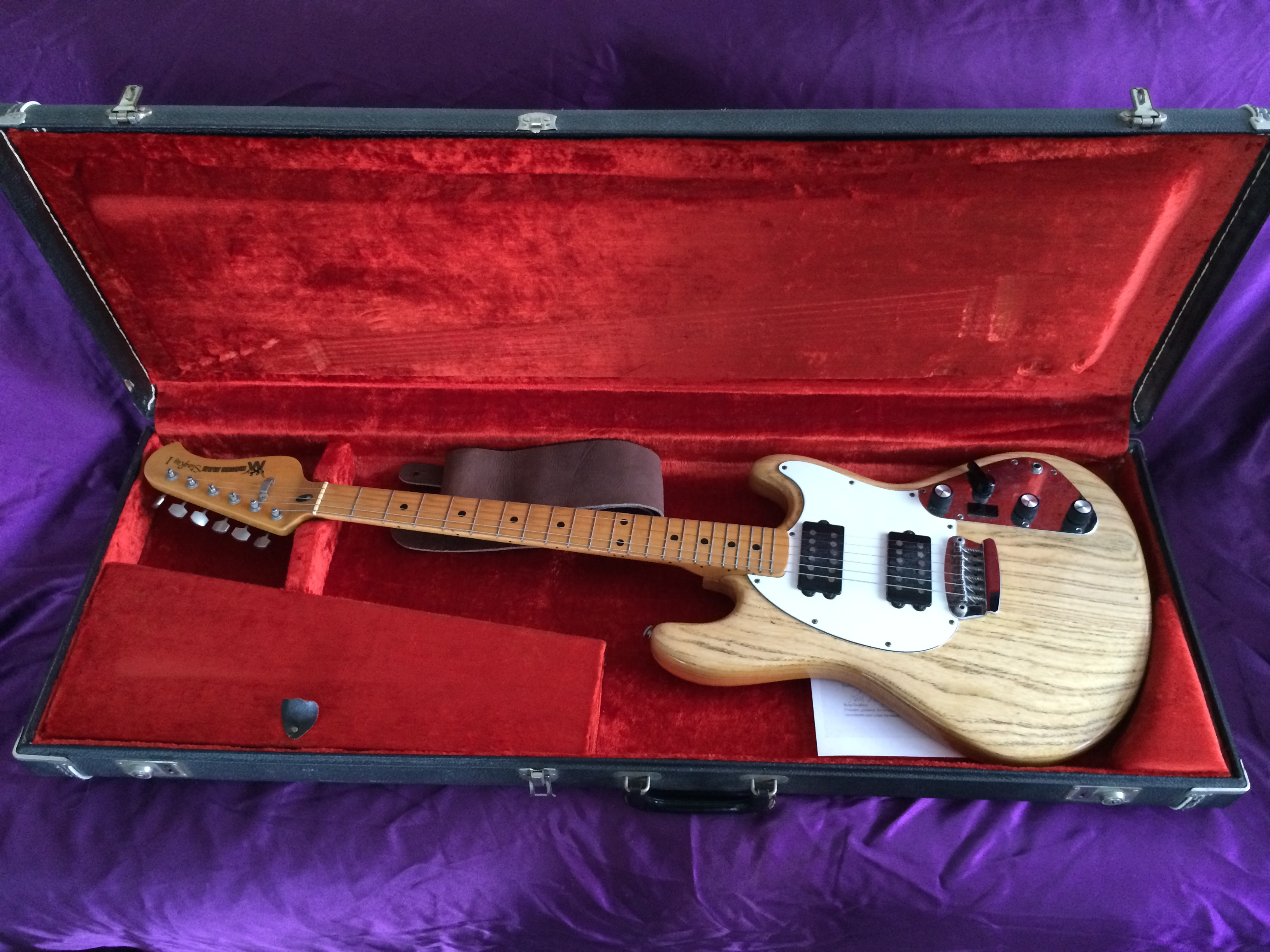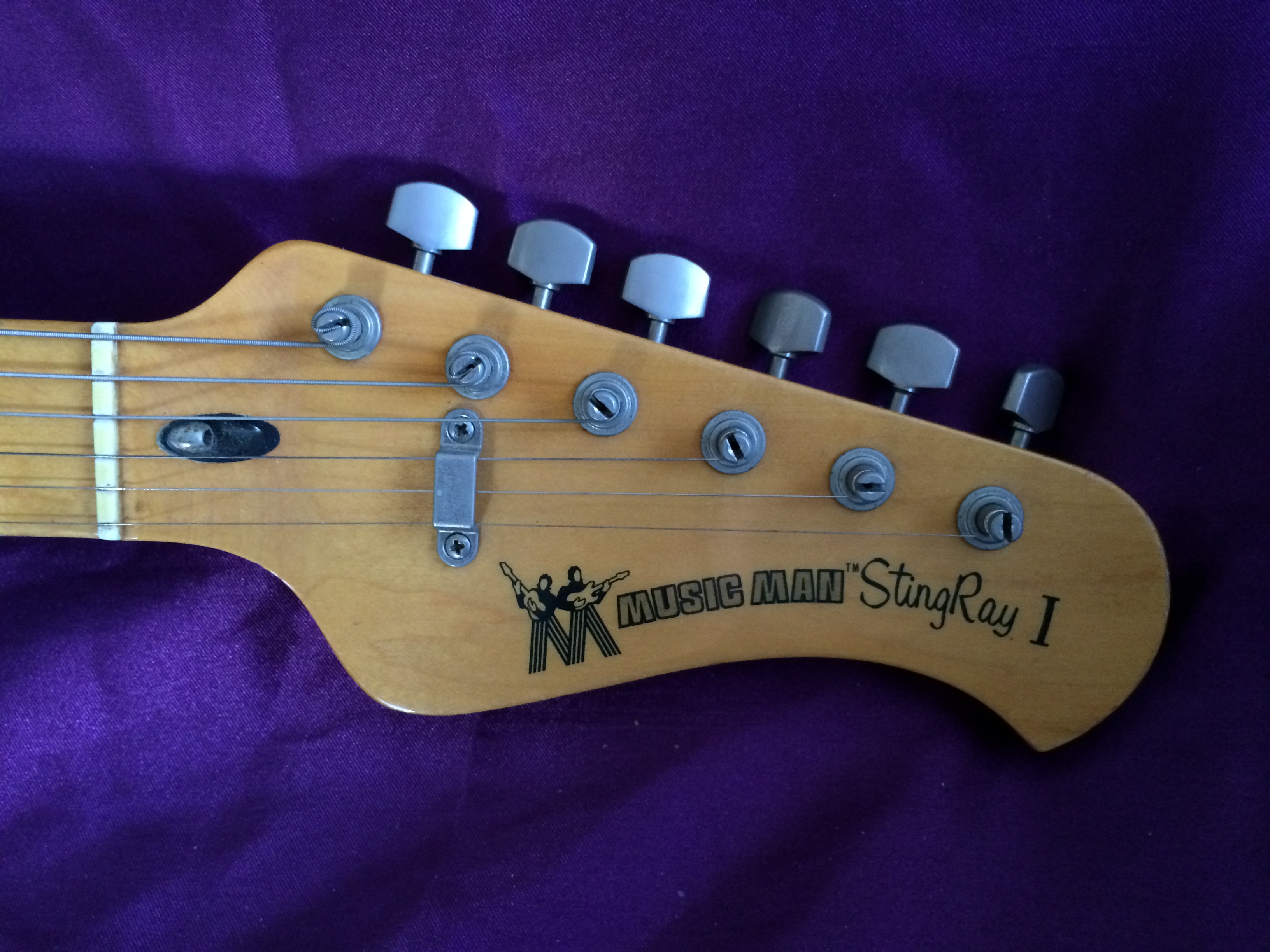 For your consideration, a rare, completely original Music Man Stingray I, a wonderful example from the early days of the company when the Music Man brand was very cool. This particular Stingray I is one of the first 500 made in 1976 with the white scratchplate and the retro control knobs. The lovely ash wood grain on this guitar is quite something. The dual humbucking pickups and active electronics provide for a very flexible and adaptable instrument with a wide range of sounds available, as long as you remember that this isn’t a normal passive guitar. Playability and ergonomics are fine and well up with anything that Fender was producing at the time, although the rotary switch takes a little getting used to. The ‘I’ in the model’s name simply refers to the fingerboard radius – the ‘I’ has a modern flatter profile and the ‘II’ had a more vintage‑style curved shape. Call me weird if you want but I personally really like the visual style, as well as the sound. For those in the know, though, this is a really great axe and a hugely underrated hidden gem of a guitar. I bought the Stingray from Ross Godfrey, guitarist with and co-founder of English trip hop band Morcheeba who bought it from the original owner in Albuquerque, New Mexico, and brought it back to the UK. NB. This guitar comes with signed provenance, courtesy of Mr Godfrey.