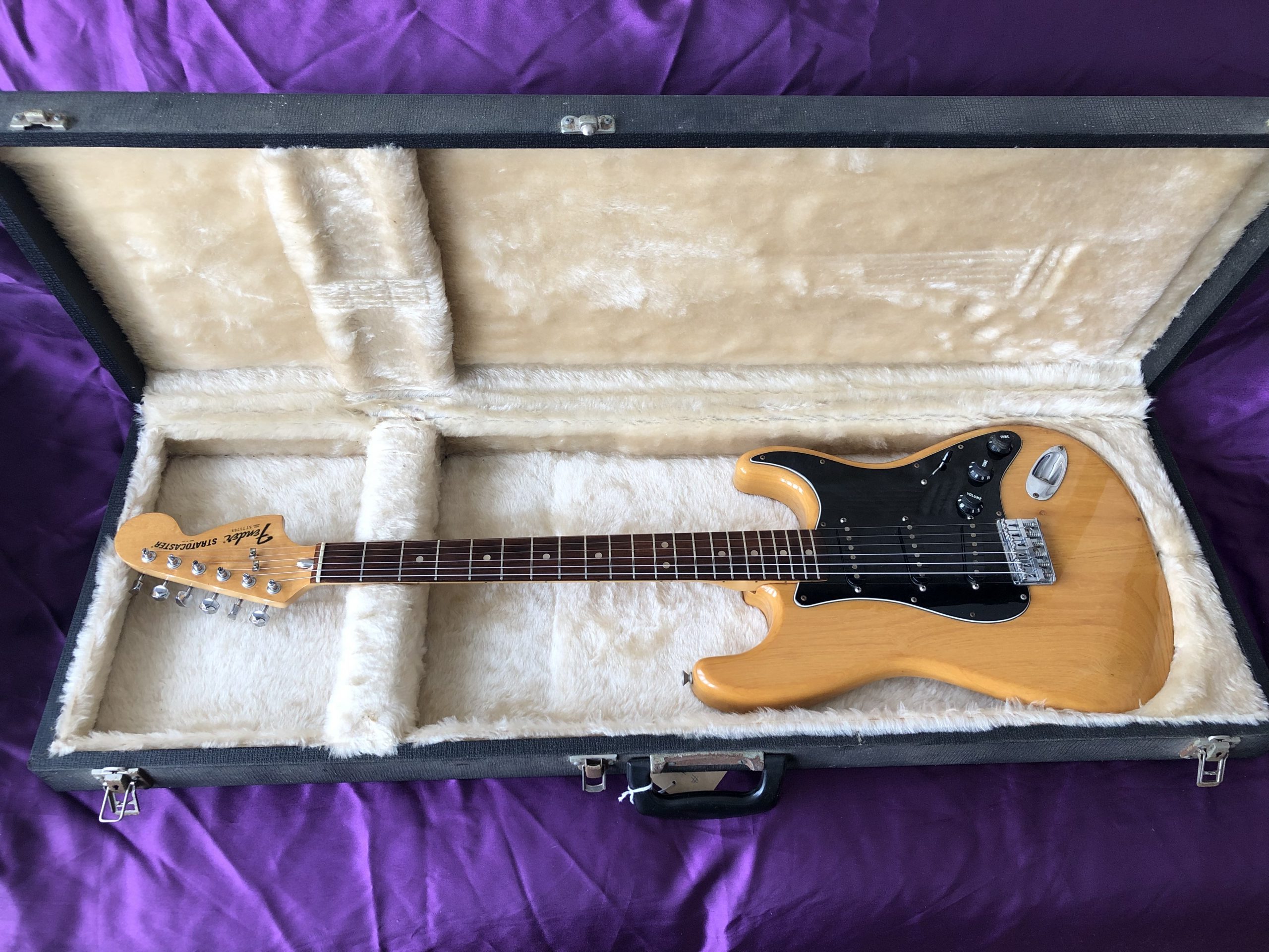 Here we have a 1977 Fender Stratocaster hardtail in very 1970s natural finish. I bought this guitar second hand in about 1978 and have owned it ever since. There are plenty of detractors who vilify CBS‑era instruments out of hand, citing the general state of affairs at Fender at the time. The fact that this Stratocaster has been a personal favourite of mine for over 40 years means that it can’t be all that bad. It certainly isn’t overly heavy at 6½ pounds, which is one of the well‑trailed criticisms. The neck joint is secure, with no sign of the supposedly notorious looseness. I think that the original grey‑bottom pickups have a lovely twang to them and balancing the 3‑way pickup selector switch between poles gives it that unmistakable ‘in between’ sound that became standard with the 5‑way switch after 1977. The aesthetics are typically evocative of the era in which it left the Fender factory. Very much ‘of its time’, this Stratocaster is in classic 1970s natural polyester finish with the big headstock, ‘bullet’ truss rod, 3-bolt ‘microtilt’ neck joint, through body stringing, 3‑ply black scratchplate, original black plastic and rosewood fingerboard. This Stratocaster is in very good original condition for its age. It arrived with a couple of minor dinks and changed tuners. I refitted the original ‘F’ tuners and have looked after her ever since. Personally, I favour a hardtail Stratocaster and they have plenty of advantages, including better sustain and tuning stability. I grew up with the large headstock and natural finish, so I have a soft spot for the overall retro appearance. I also have a personal preference for rosewood fingerboards rather than maple. If you want a standard colour Strat with vibrato and maple fingerboard, then look elsewhere. However, if you want a solid original and playable Strat of its period, then this is a very cool example. Do I care about the gratuitous flack that people liberally throw at this guitar? No. However, I am sad that people aren’t prepared to give it the respect it deserves. OK, maybe it is undesirable by the purist collectors but I have a great affection for it.