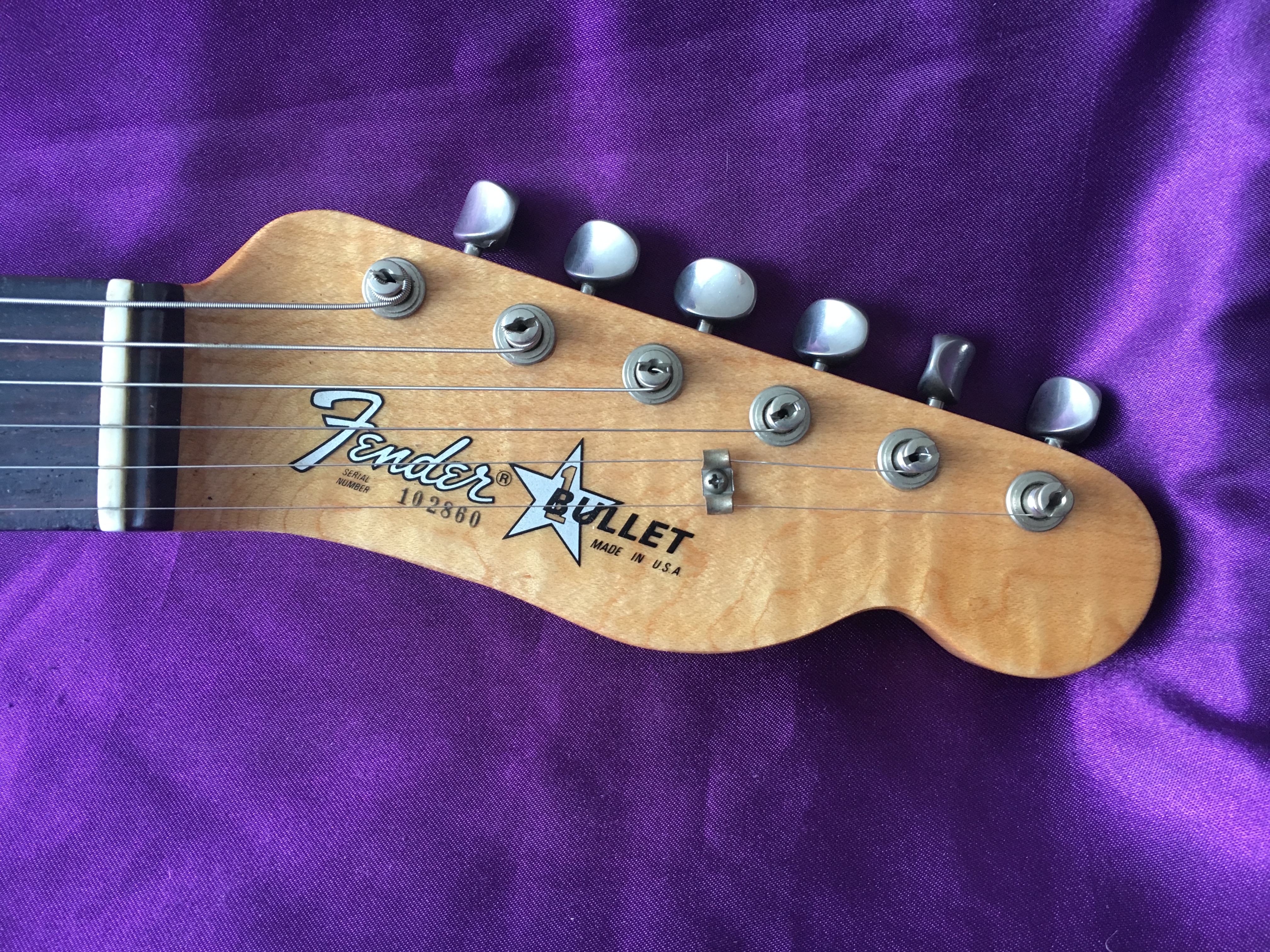 Luthier John Page explains the silver star surrounding the number ‘1’ on the Fender Bullet headstock decal: “When I designed the Bullet I was still giggin’ a lot and still reading the trades… like Billboard. The Billboard charts always had a silver star around the number of singles/albums that were shooting up the charts quickly. They were usually the ‘hits’ So I thought that the phrase ‘Number one with a bullet’ which was a classic DJ/industry phrase, would be a great advertising campaign for it. Fender marketing chose not to go with it… so the decal never made any sense.”