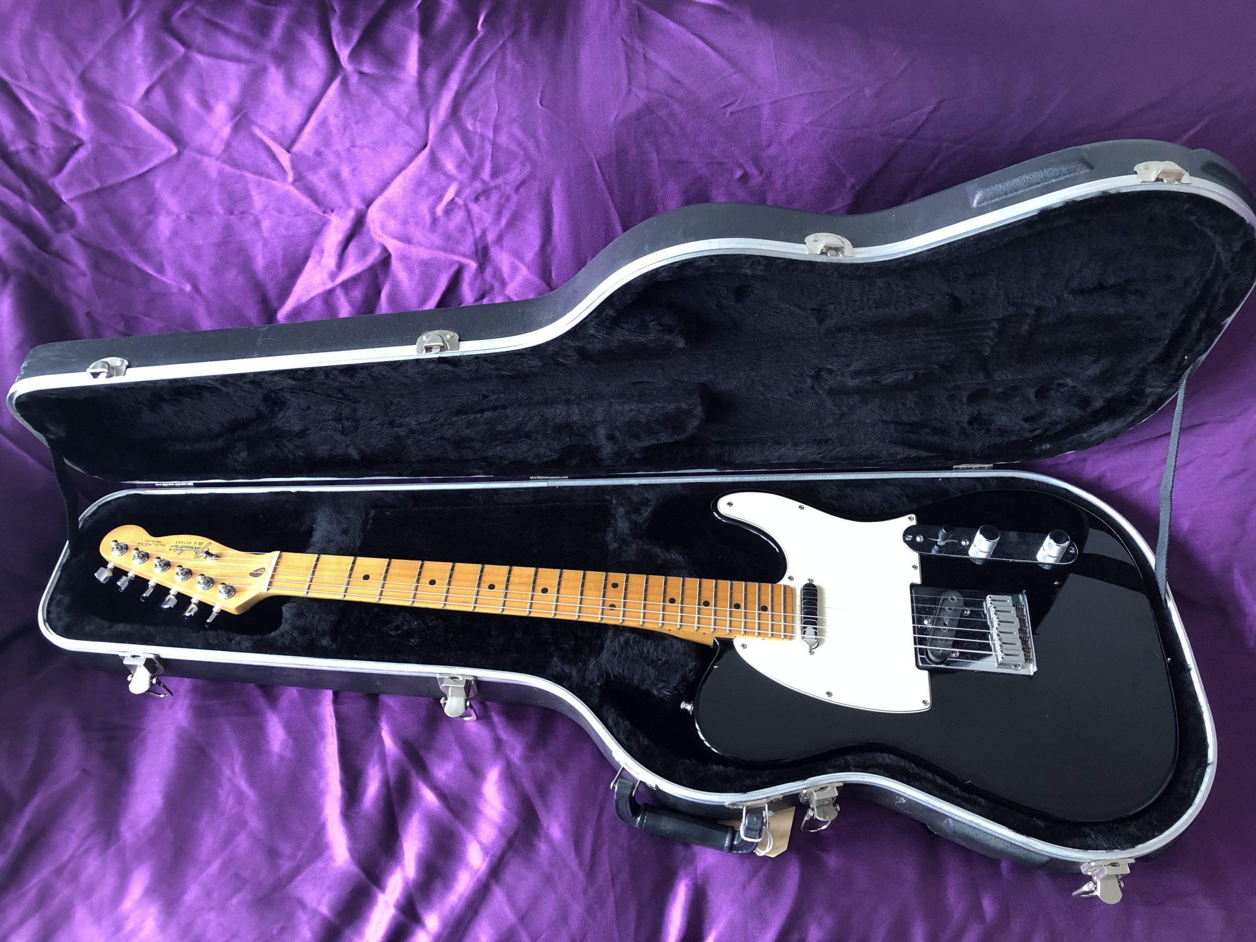 If ever there was a guitar that ‘does what it says on the tin’, then perhaps the American Standard Telecaster is it. There is something so ‘right’ about the standard Telecaster template that there isn’t an awful lot to say that hasn’t been said many times elsewhere. They are just so good at what they do, which is just about everything. Here we have a more modern(‑ish) vintage 1988 Fender Telecaster American Standard with a classic traditional Fender Tele look in black, white and maple – understated and classically cool. You can track its lineage directly back to its early 1950s ancestors, as the fundamental ingredients have hardly altered. There are some ergonomic improvements, such as the low friction string tee, ‘flat’ bridge with 6 individual adjustable bridge saddles to improve intonation and an early version of the dual‑ganged tone pots that are the Fender TBX (‘Treble Bass eXpander’) circuit. Personally, I prefer a rosewood fingerboard for looks and playability but that is just a matter of taste. Generally speaking, little else had really changed by the time this one left the Fender factory 38 years after the very first ones. I have owned this Telecaster since about 1997 and it was the guitar that reignited my interest in guitars and indirectly led to the formation of CRAVE Guitars. She is in overall very good condition with just the odd nick and scuff to hint at her previous life. This is a workhorse vintage Tele built to modern quality standards – aging disgracefully. If it ain’t broke, don’t fix it. When it comes down to it, what more could you ask for?
